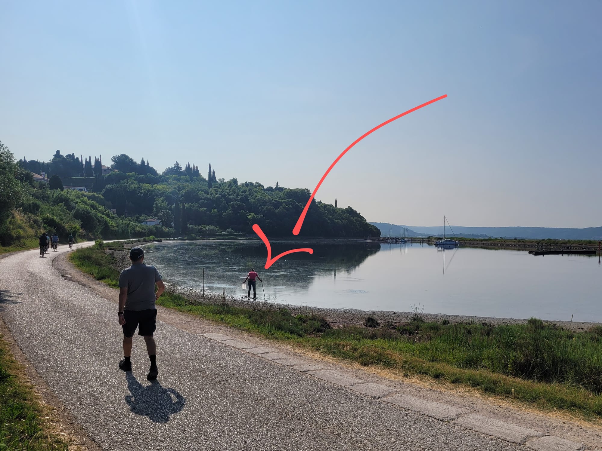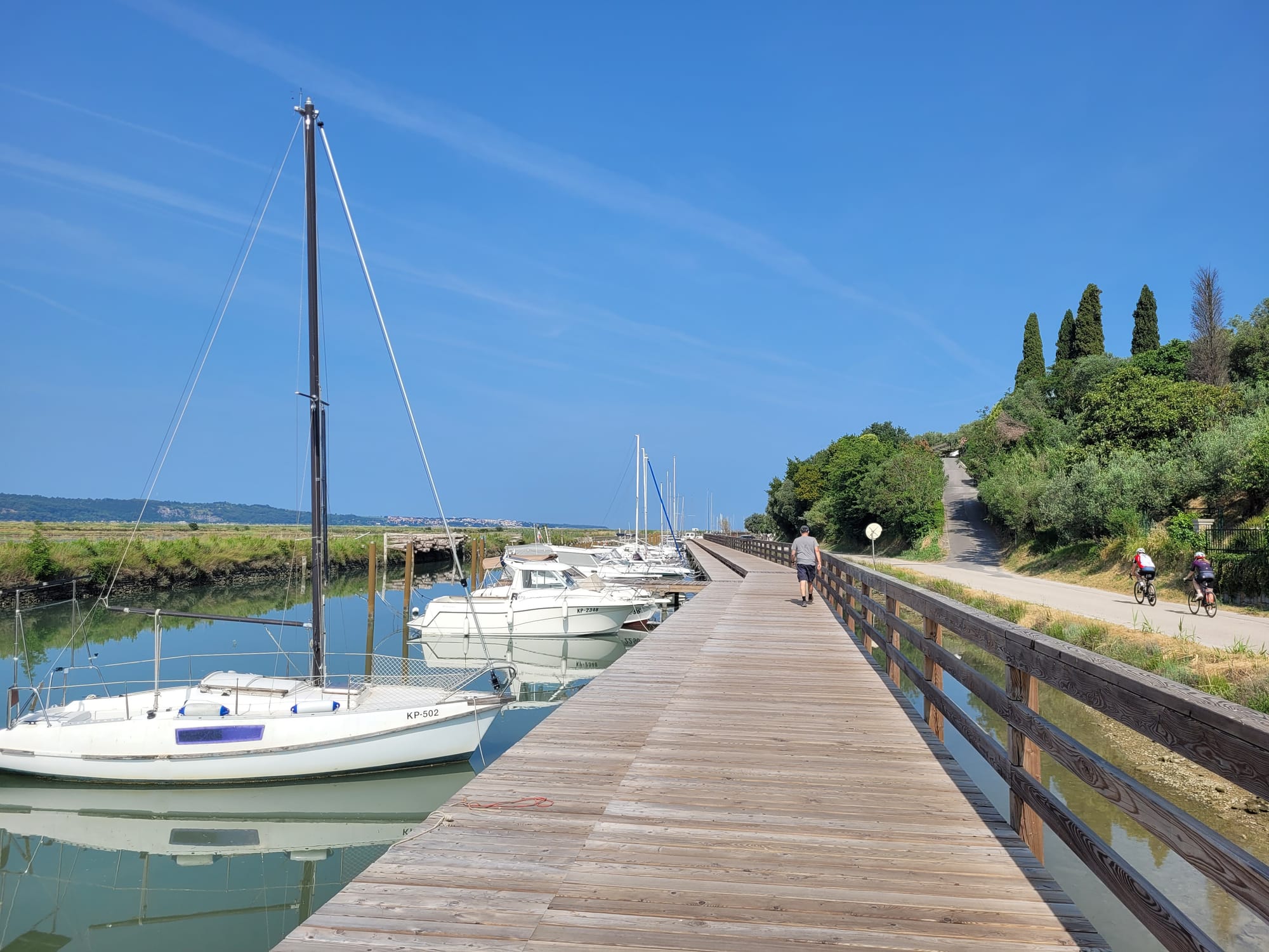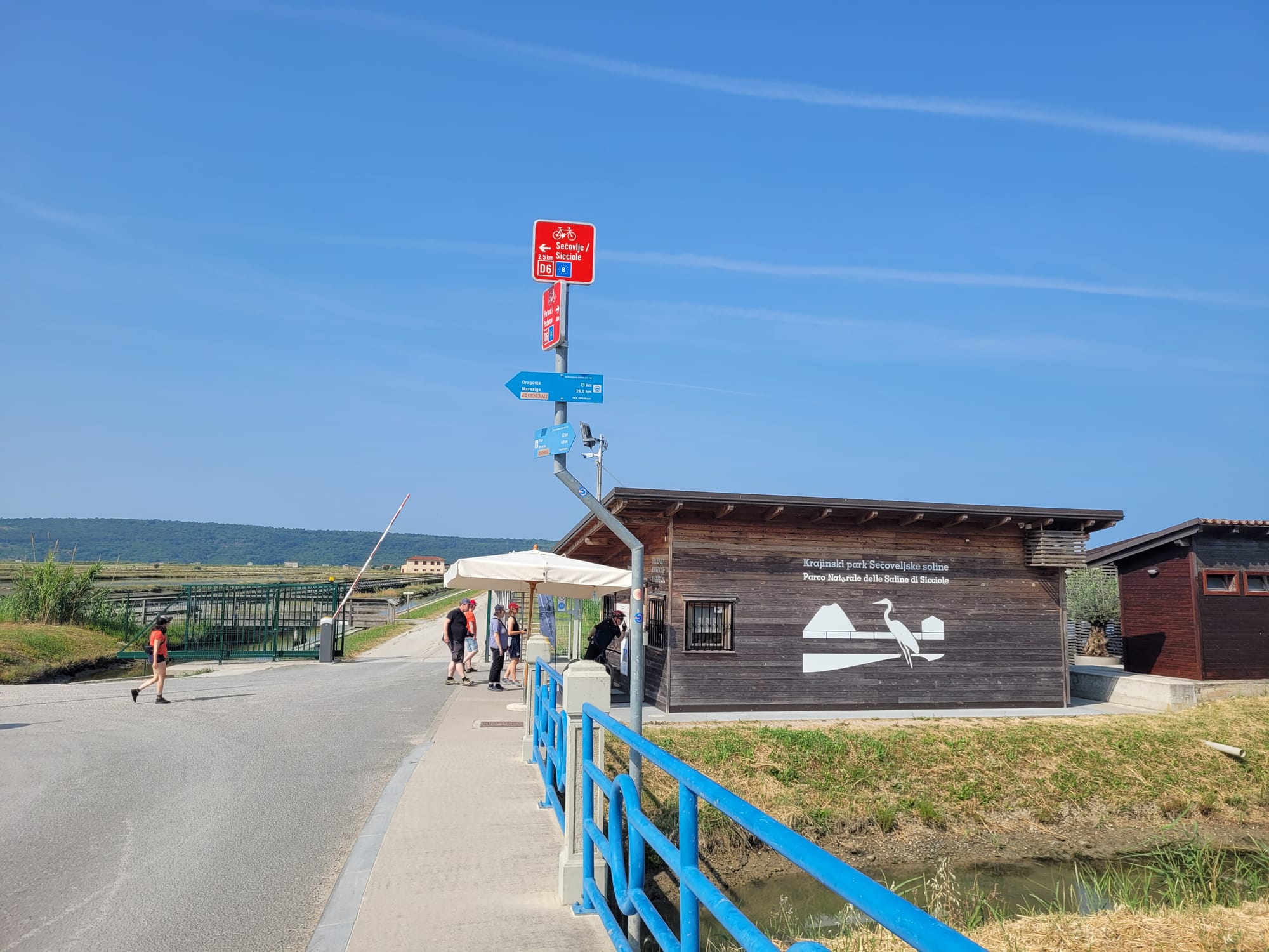 Nach 30 Minuten sind wir beim Eingang zu den Salinen von Sečovlje. Das ist unser Umkehrpunkt. Aber irgendwann möchte ich mir die auch einmal anschauen.