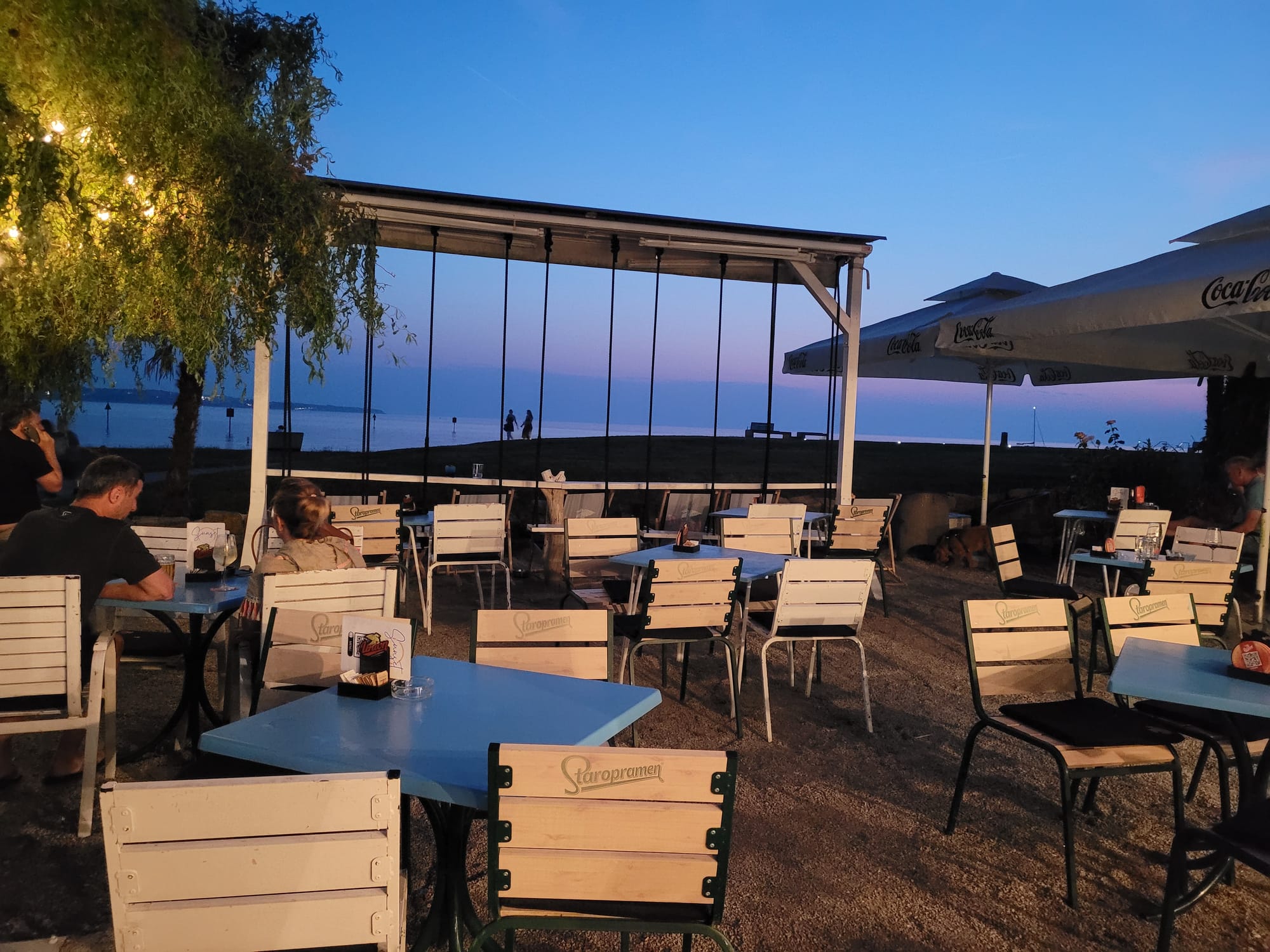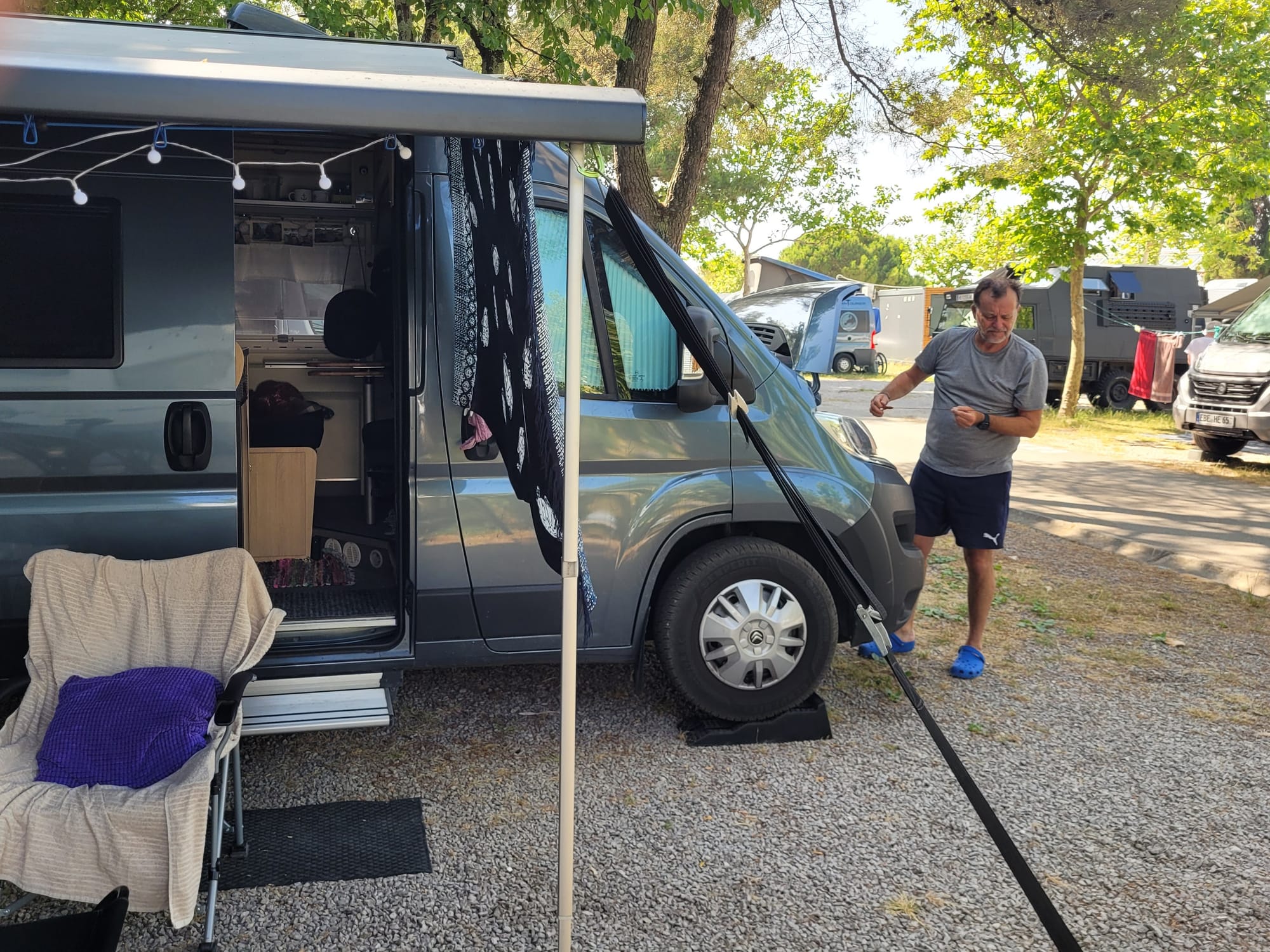 Heute ist Freitag. Der Campingplatz hat sich gefüllt, ich würde sagen es gibt keinen freien Platz mehr. Und das Lokal in Portorož unterhält uns heute besonders laut mit seinem rhythmischen Bass.