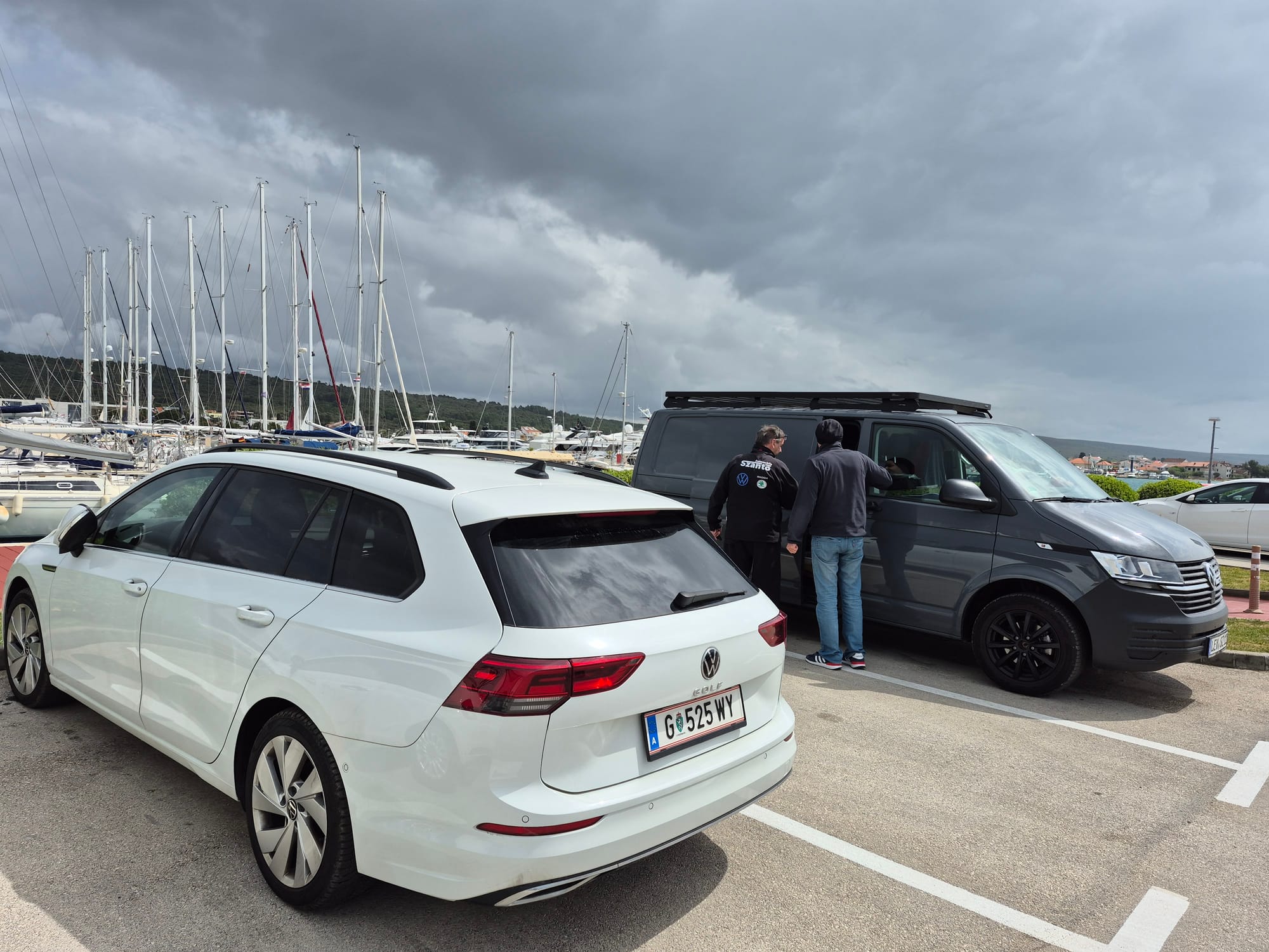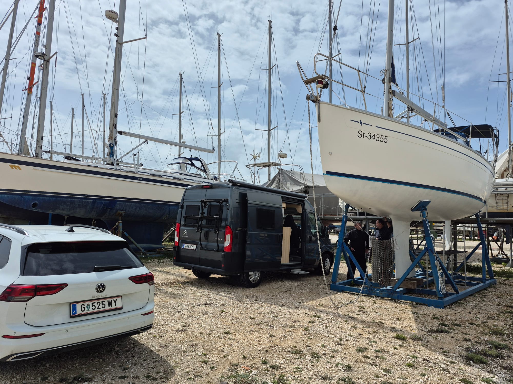 Auf dem Weg zur Life schauen wir bei der Topsy vorbei. Karl und Anneli haben uns gesagt, dass Sandra und Stephan in Sukošan angekommen sind.