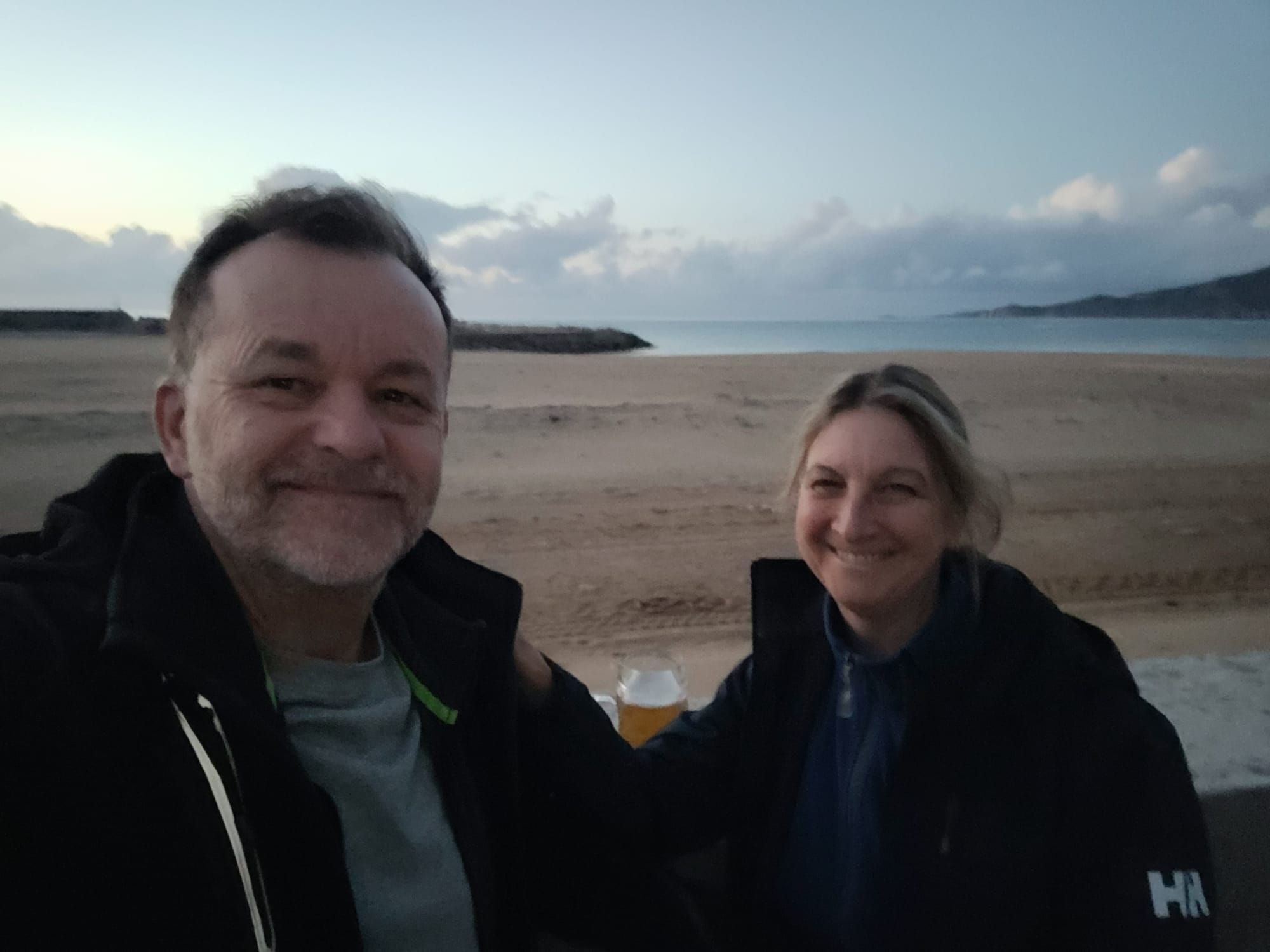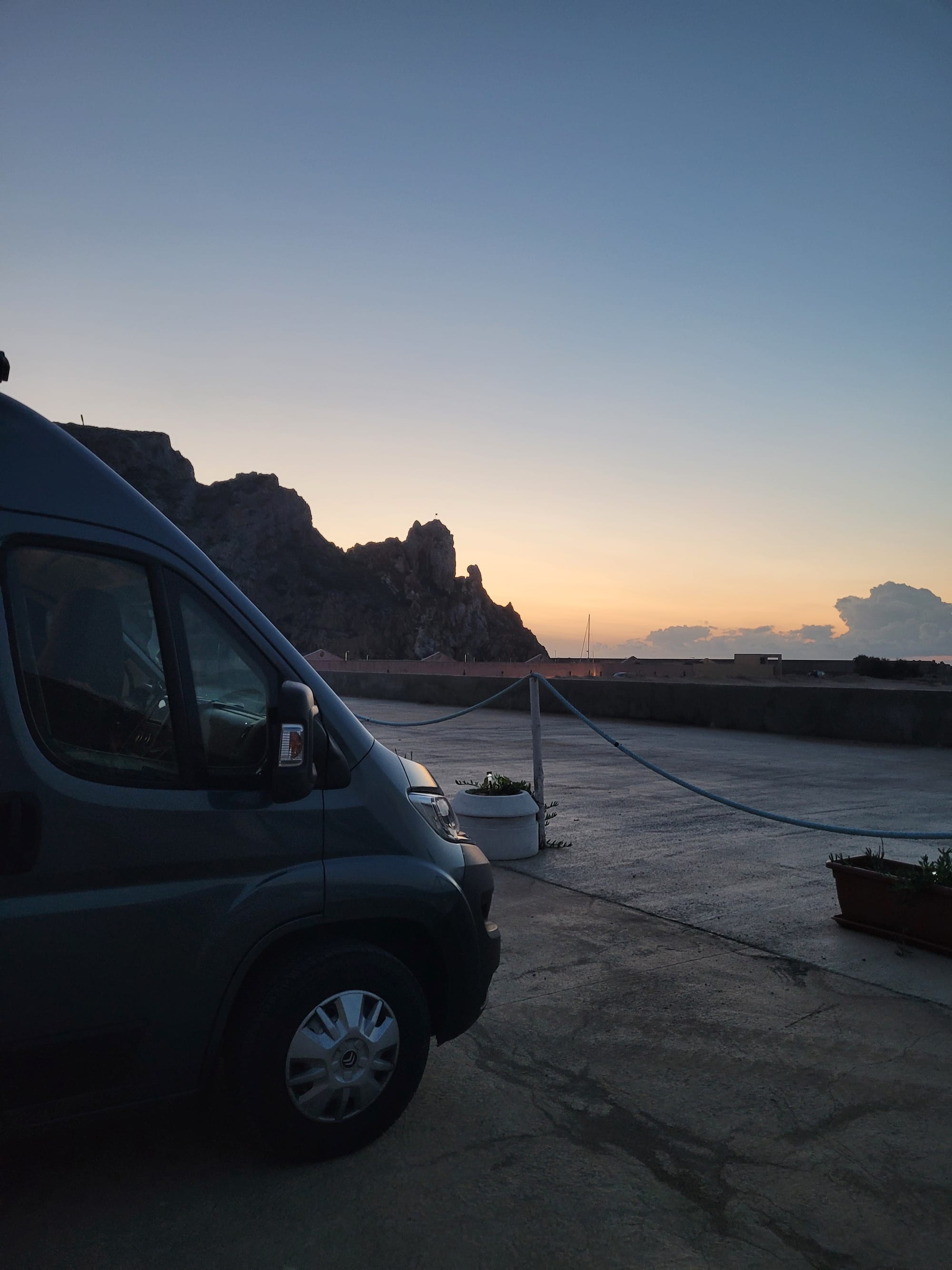 ...und nach der langen Fahrt eilen wir gleich zum Wellenbrecher um den Sonnenuntergang im Freien zu genießen.