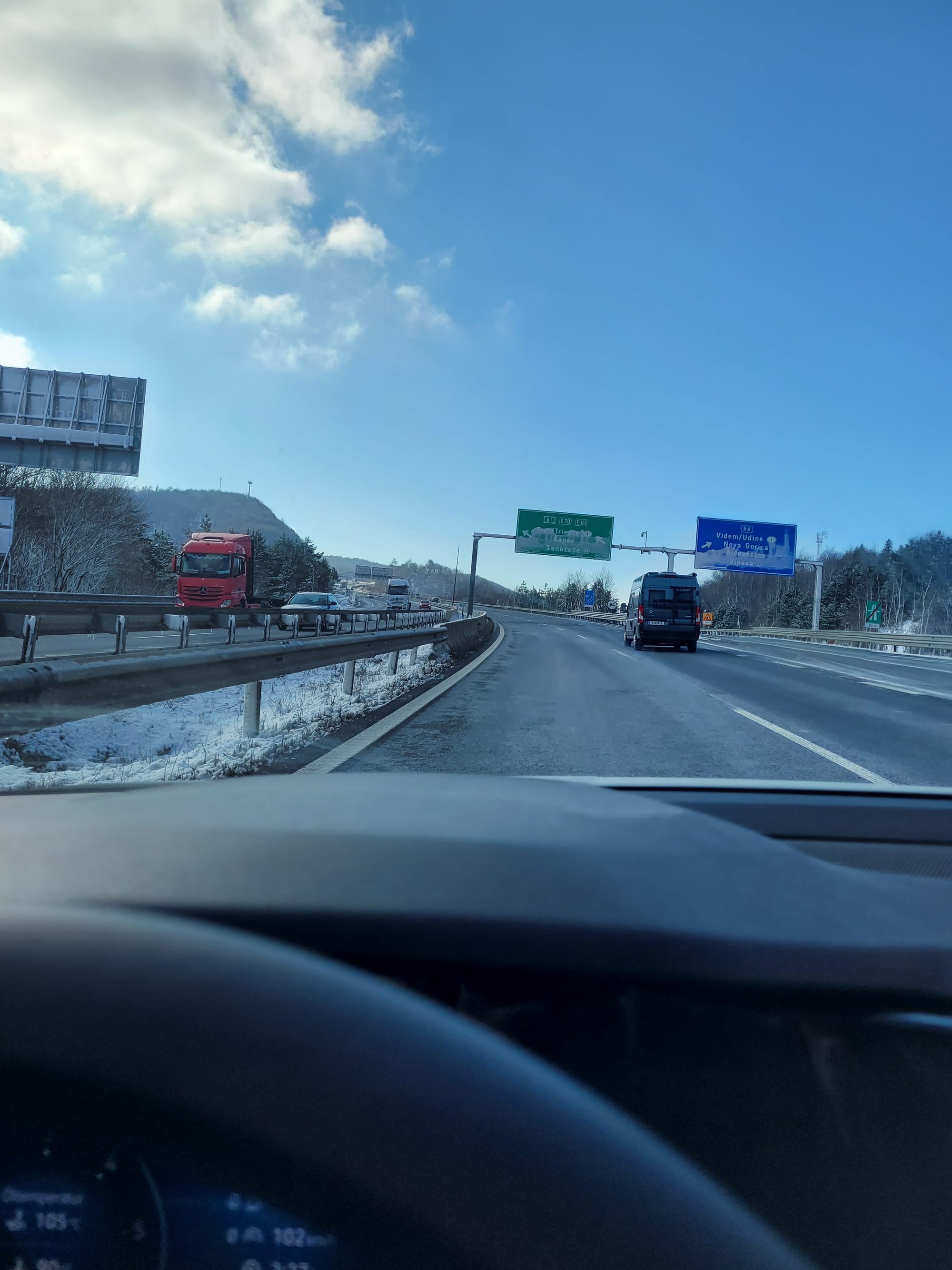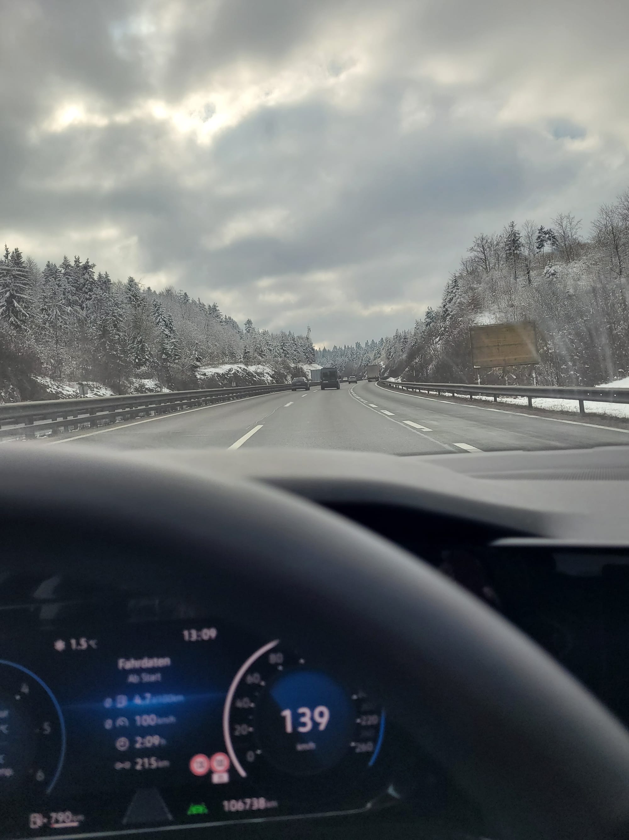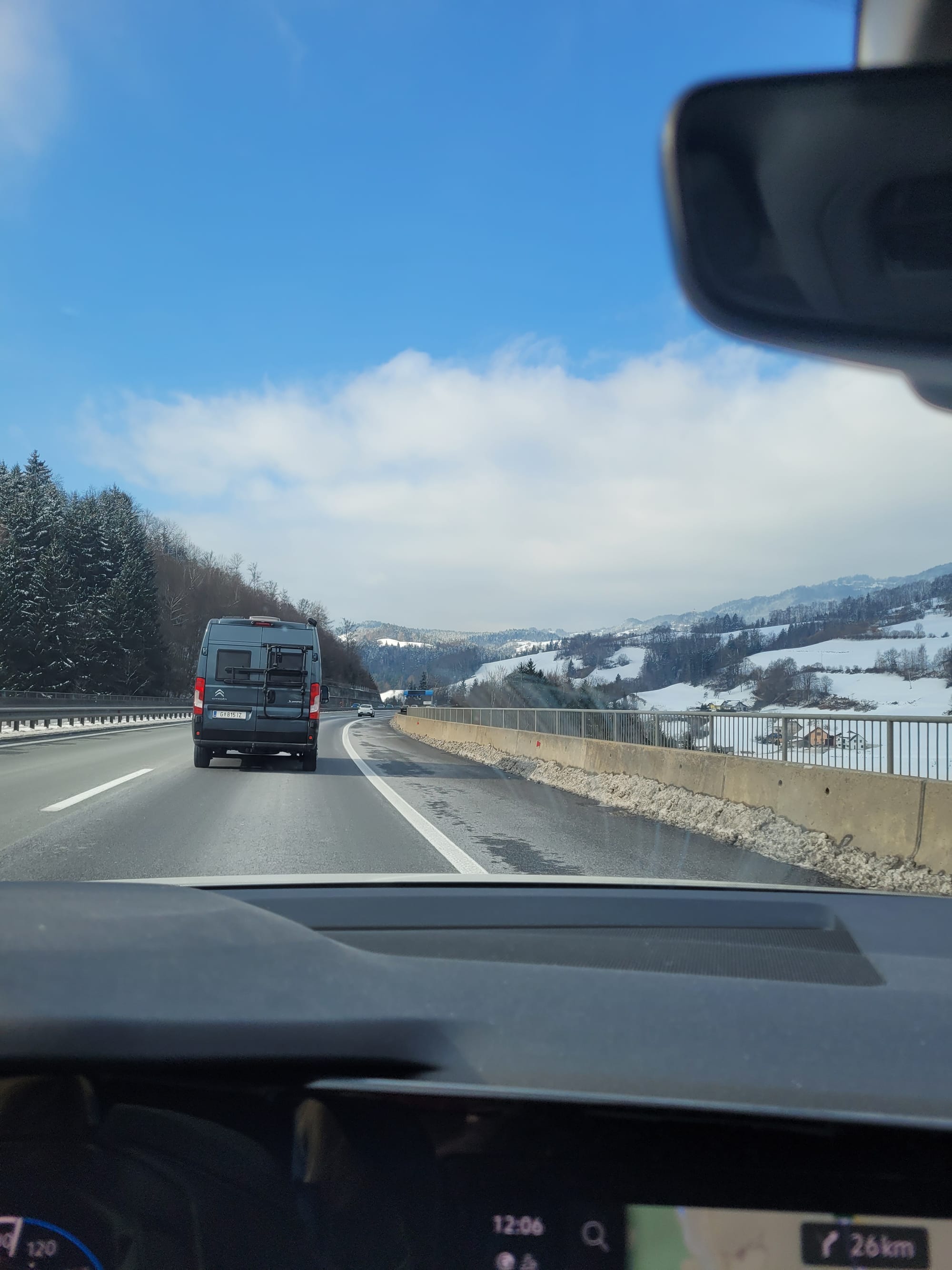 ...bei Ljubljana wird es wieder grau und bewölkt und außerdem fahren wir die ganze Zeit durch eine Schneelandschaft...