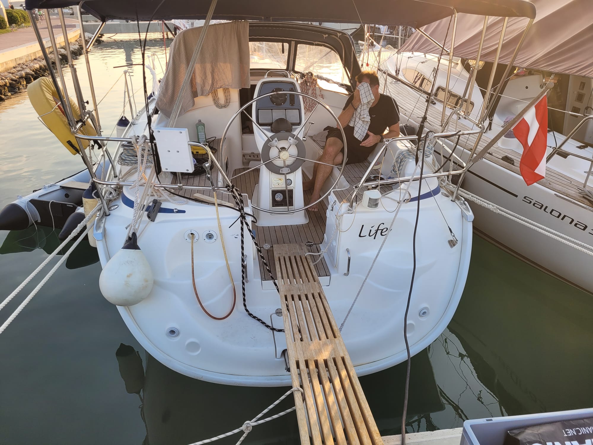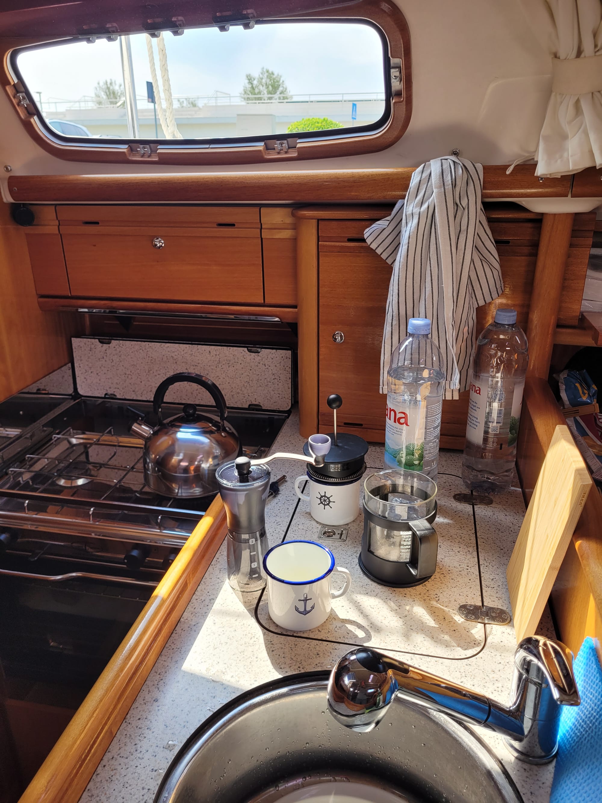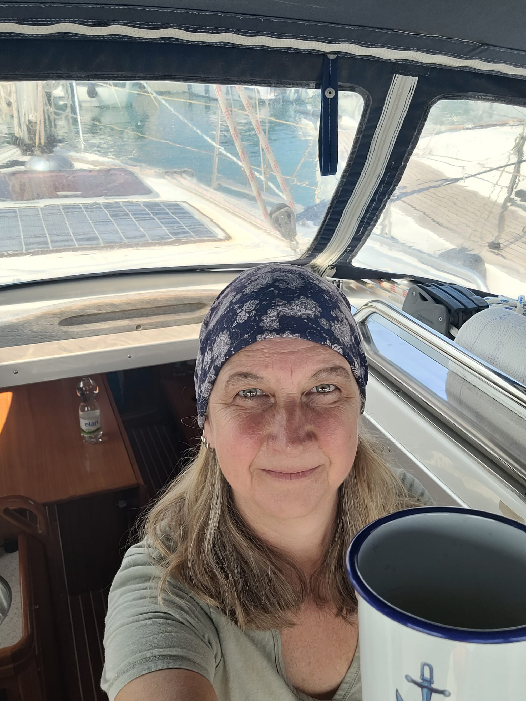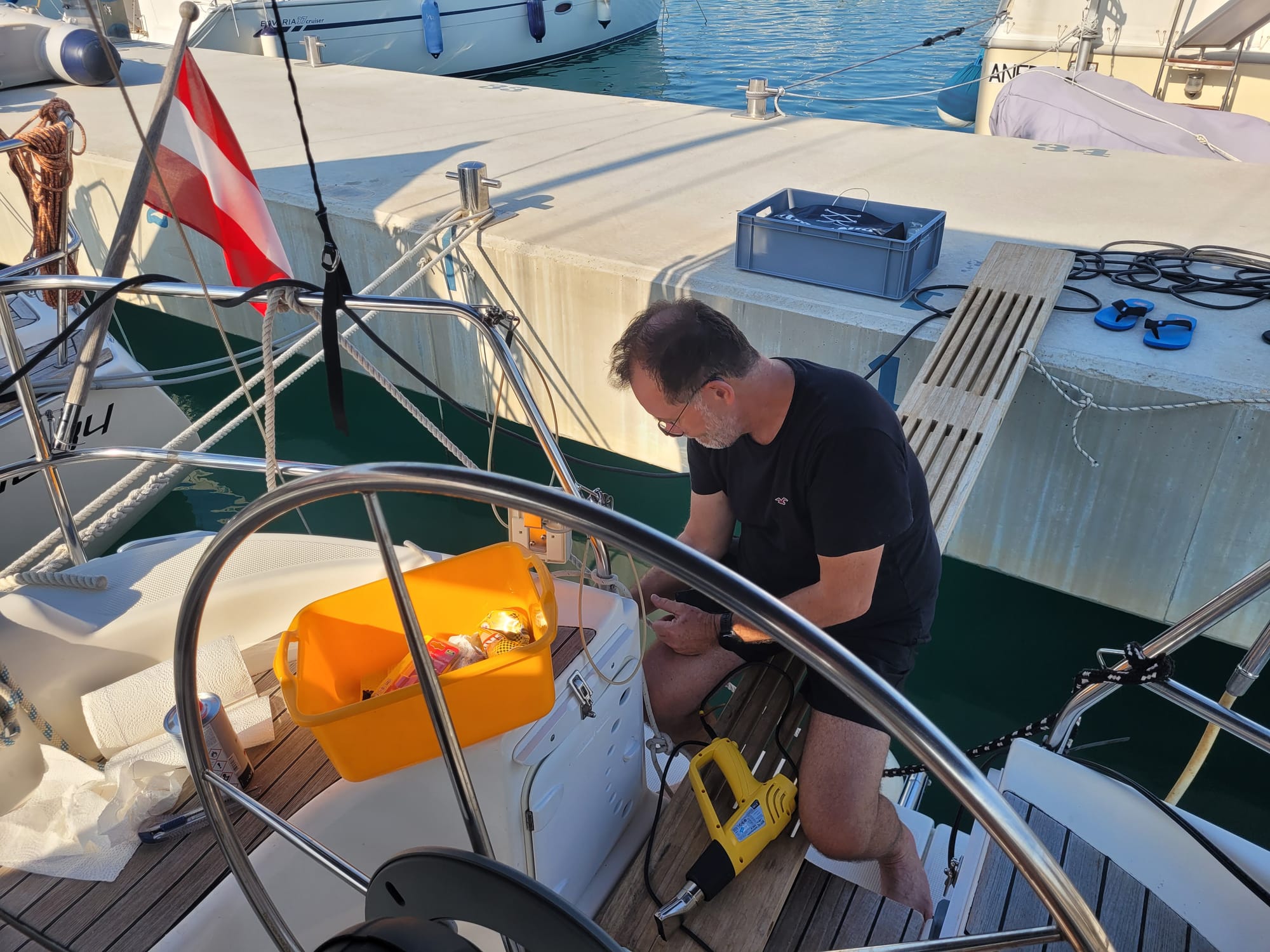 Wir haben sehr gut geschlafen. Das liegt einmal daran, dass wir am Schiff immer austariert liegen, im Gegensatz zum Luigi. Zum anderen waren wir so erschöpft vom Arbeiten, dass wir total schnell ein- und total fest ge-schlafen haben. Die Heckkabine ist außerdem wirklich sehr geräumig.