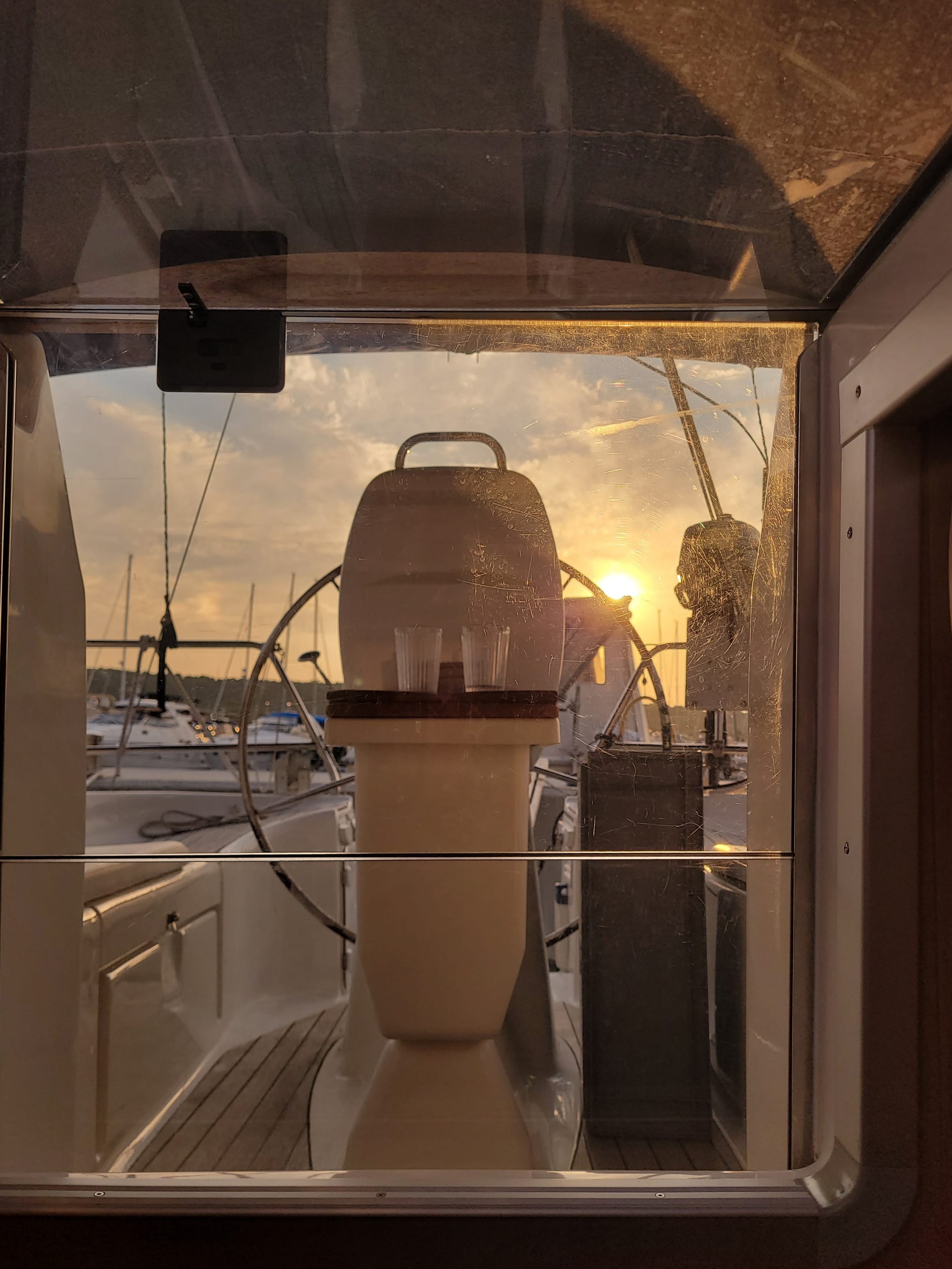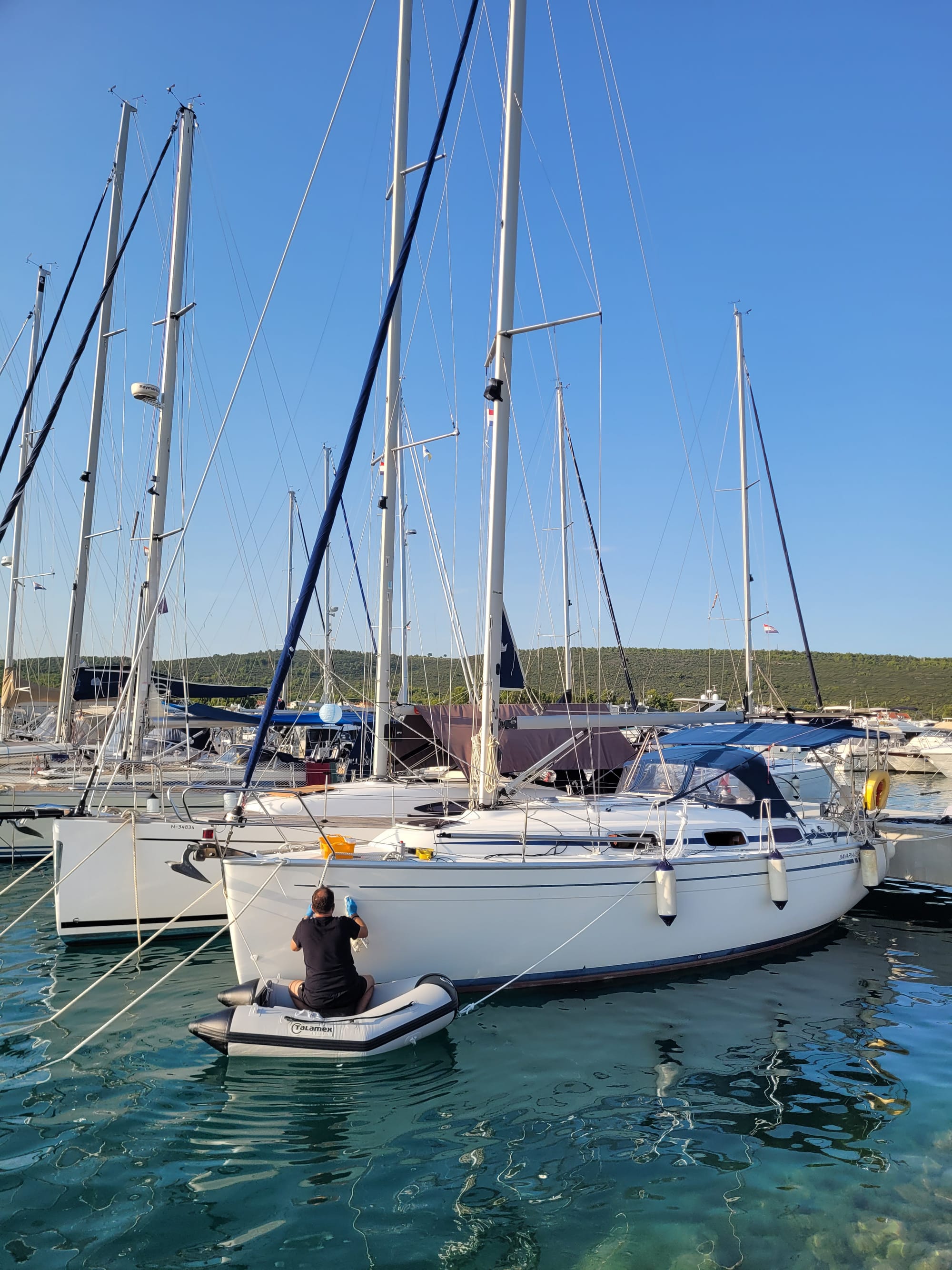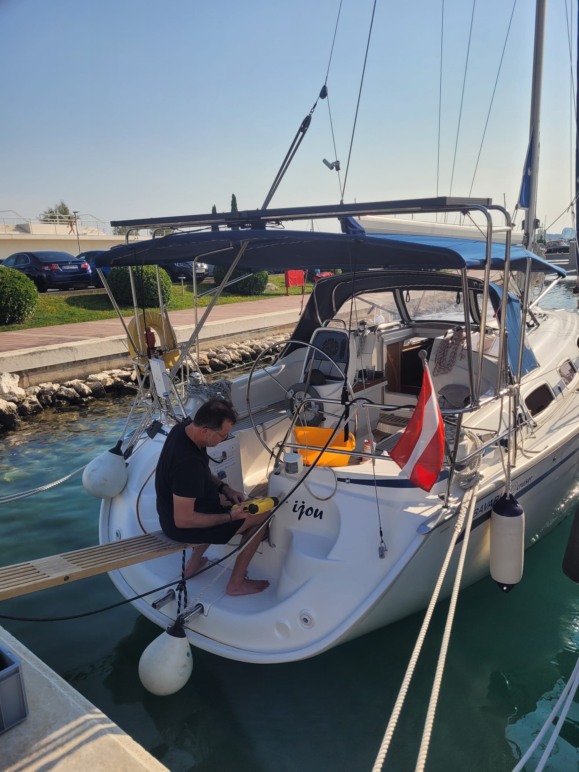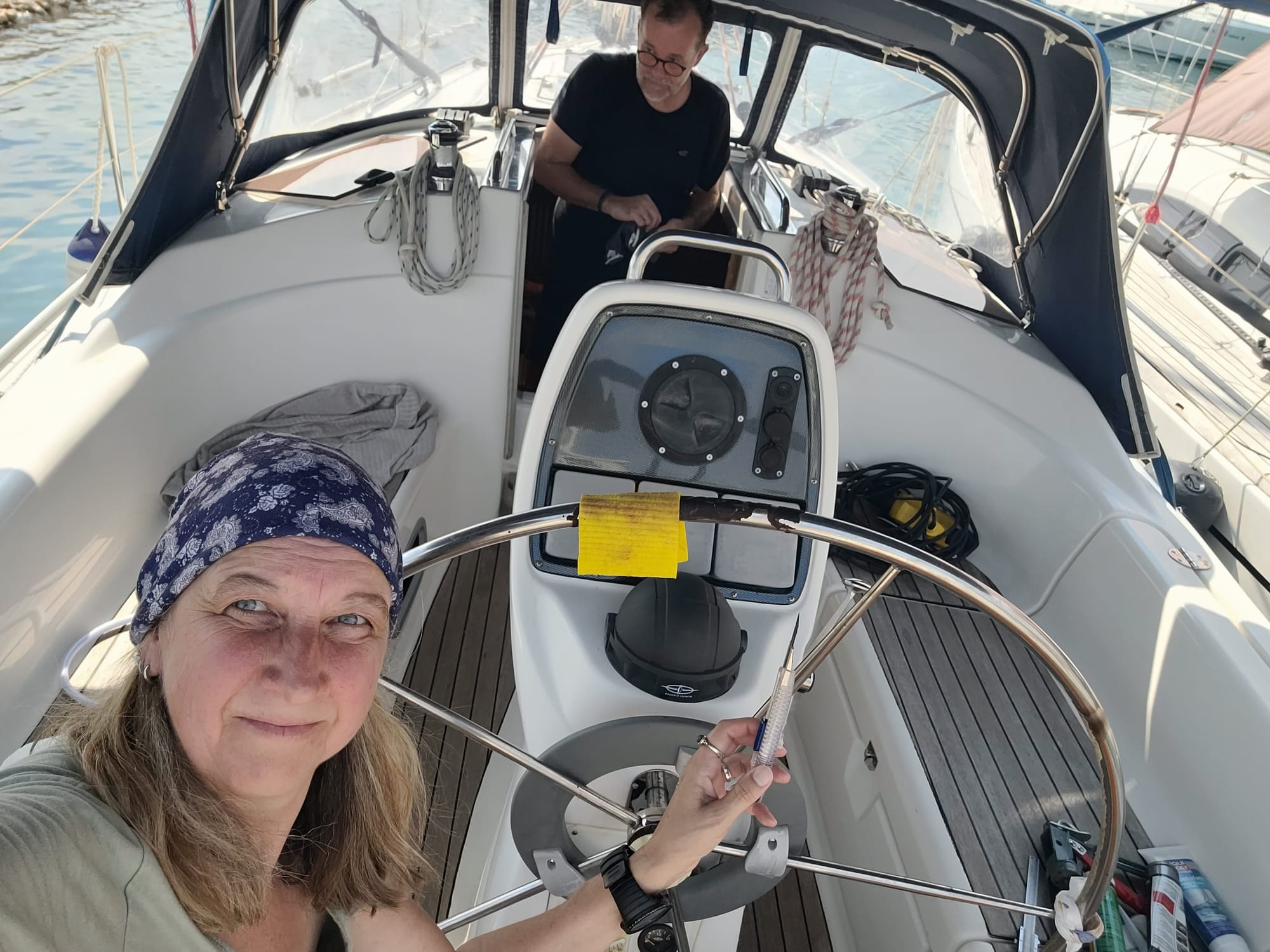 Wir haben sehr gut geschlafen. Das liegt einmal daran, dass wir am Schiff immer austariert liegen, im Gegensatz zum Luigi. Zum anderen waren wir so erschöpft vom Arbeiten, dass wir total schnell ein- und total fest ge-schlafen haben. Die Heckkabine ist außerdem wirklich sehr geräumig.