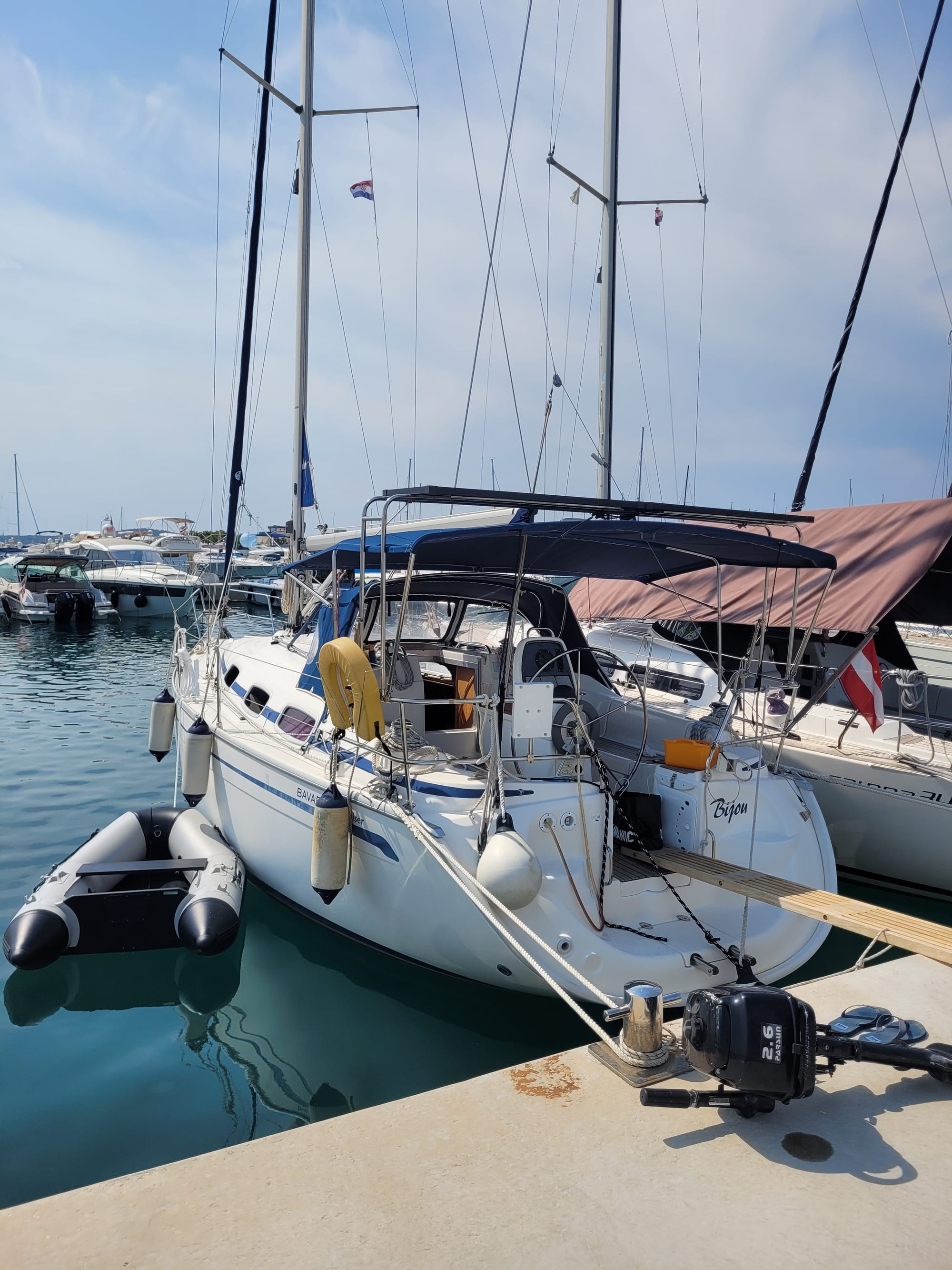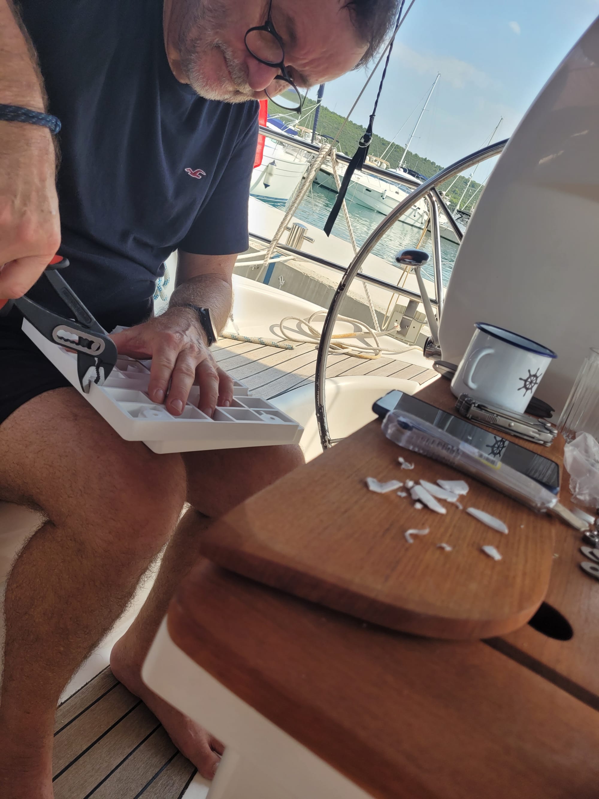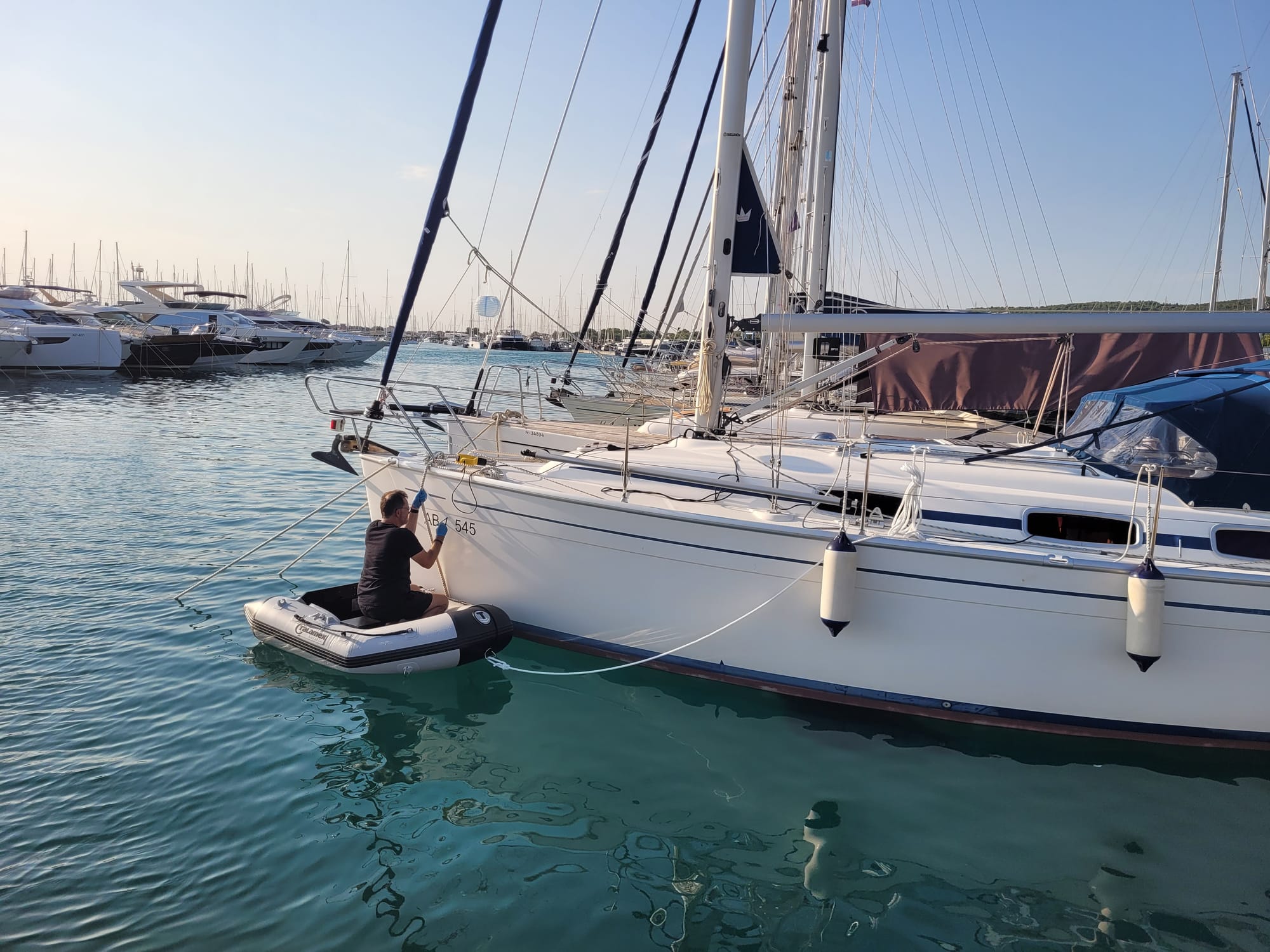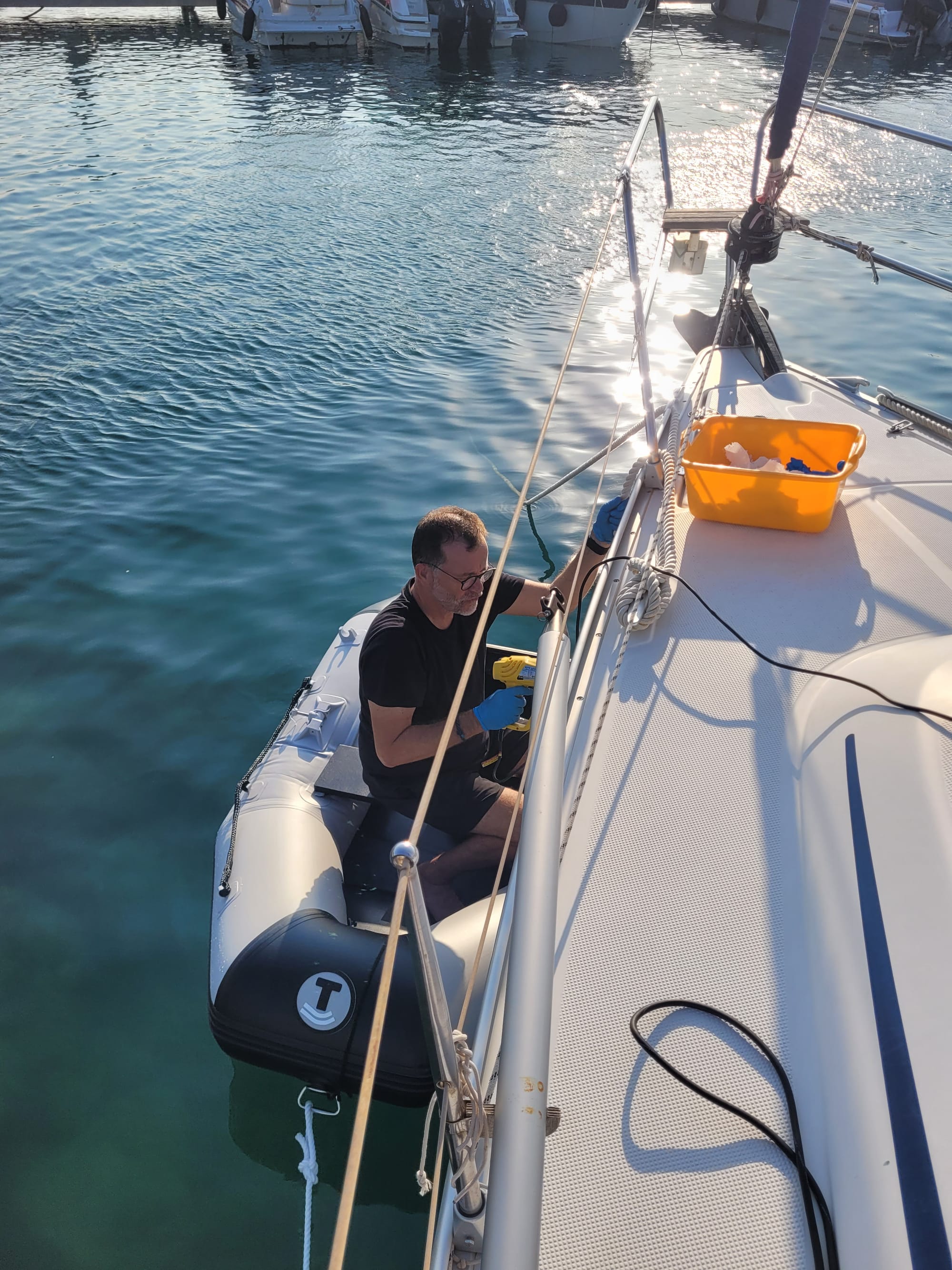 Wir haben sehr gut geschlafen. Das liegt einmal daran, dass wir am Schiff immer austariert liegen, im Gegensatz zum Luigi. Zum anderen waren wir so erschöpft vom Arbeiten, dass wir total schnell ein- und total fest ge-schlafen haben. Die Heckkabine ist außerdem wirklich sehr geräumig.