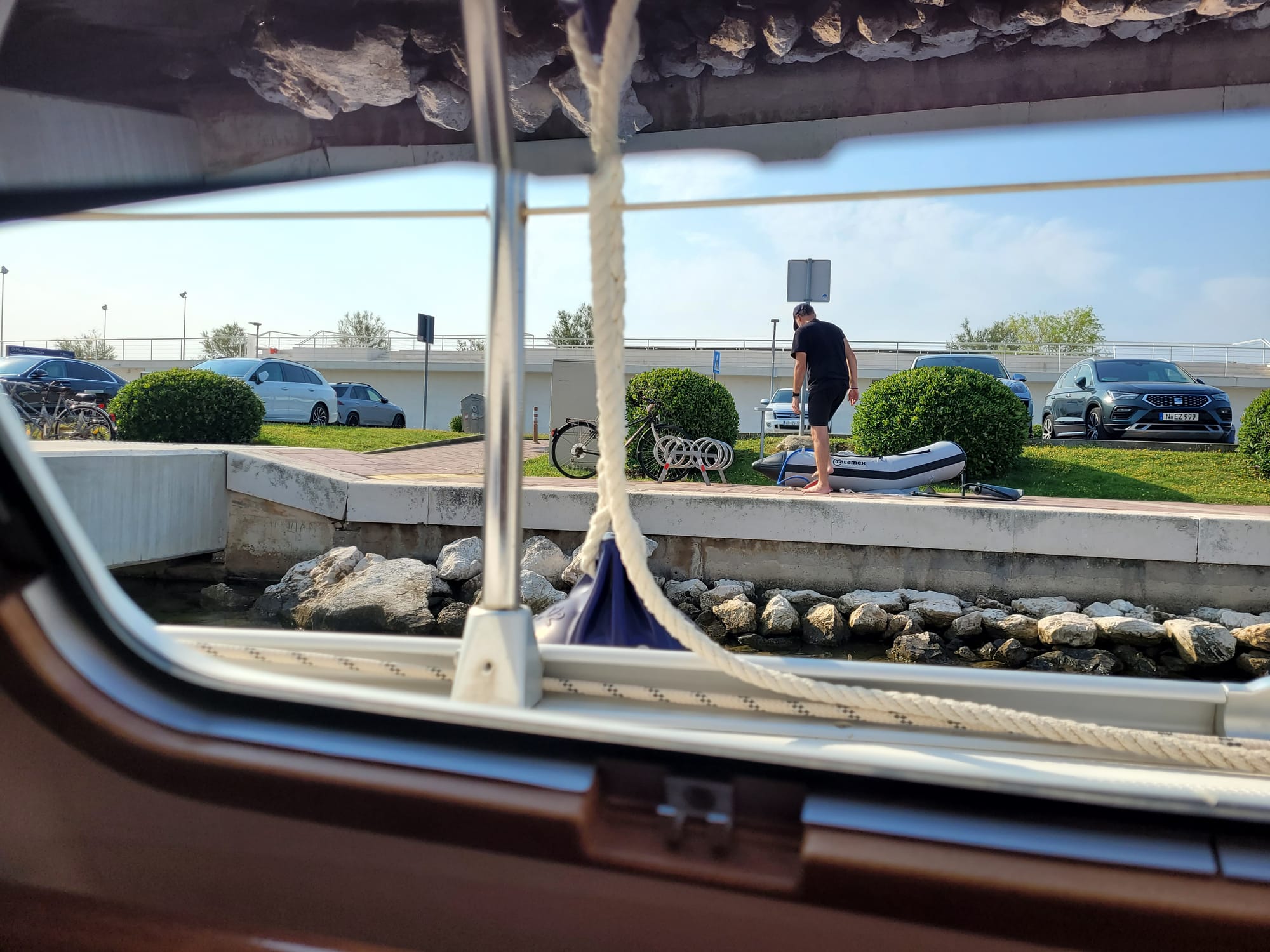 Nächstes Projekt: das Schlauchboot, liebevoll Grey genannt, wird aufgepumpt.