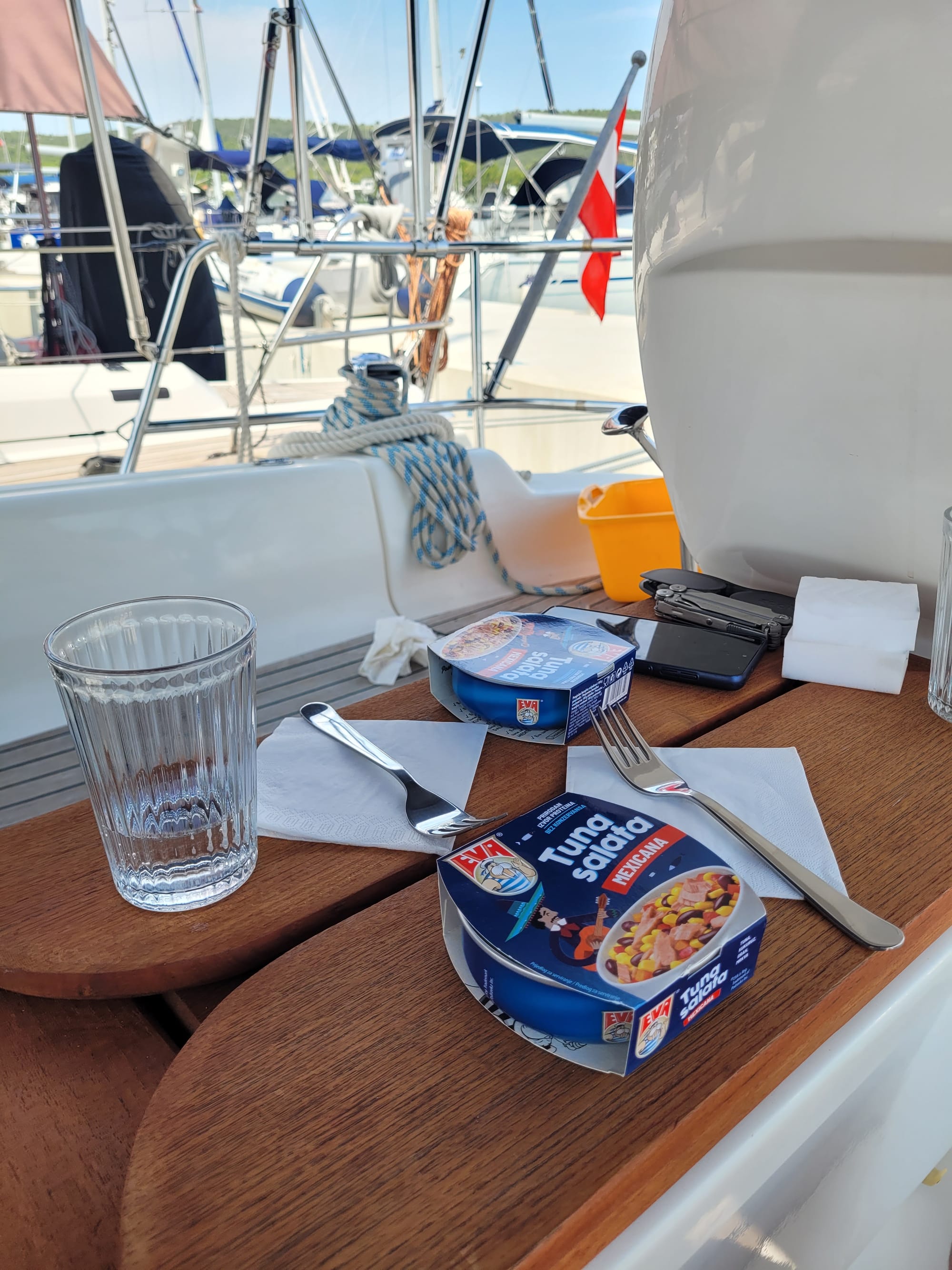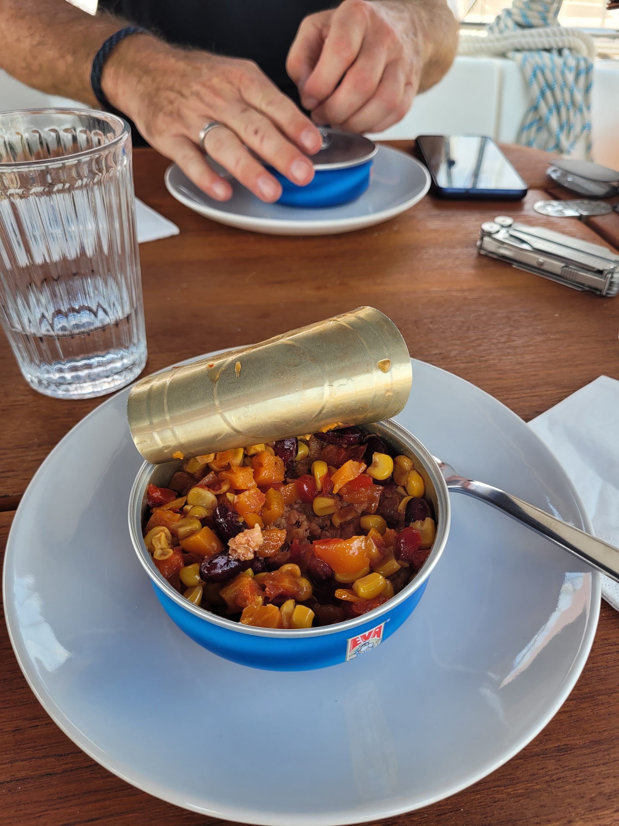 Zwischendurch gibt es ein Dosenmittagessen 😋.