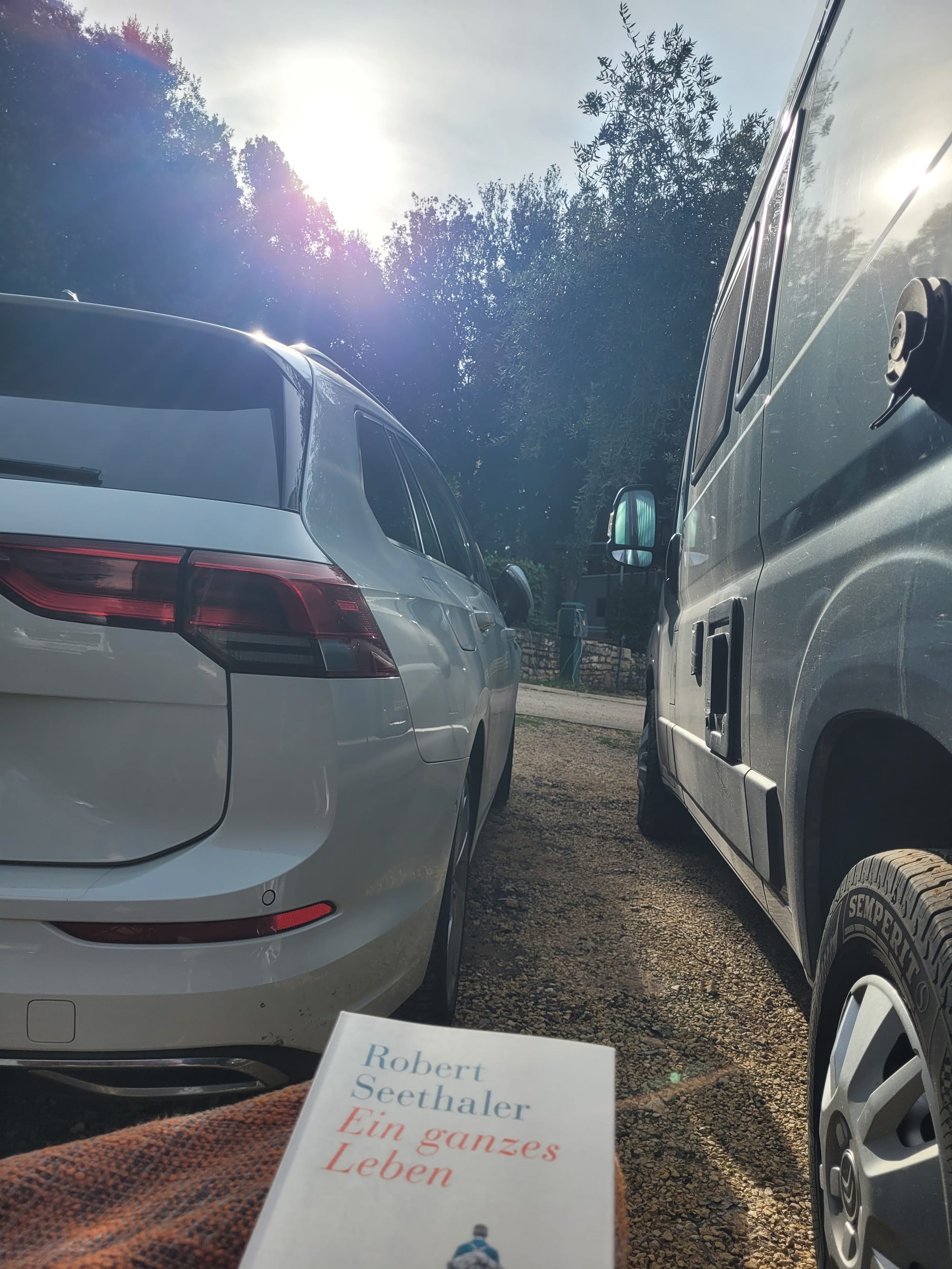 So gut gestärkt sitzen wir noch länger zusammen, bis Andreas und ich schließlich die paar Schritte zurück zu Luigi gehen und dort den späten Abend lesend ausklingen lassen.