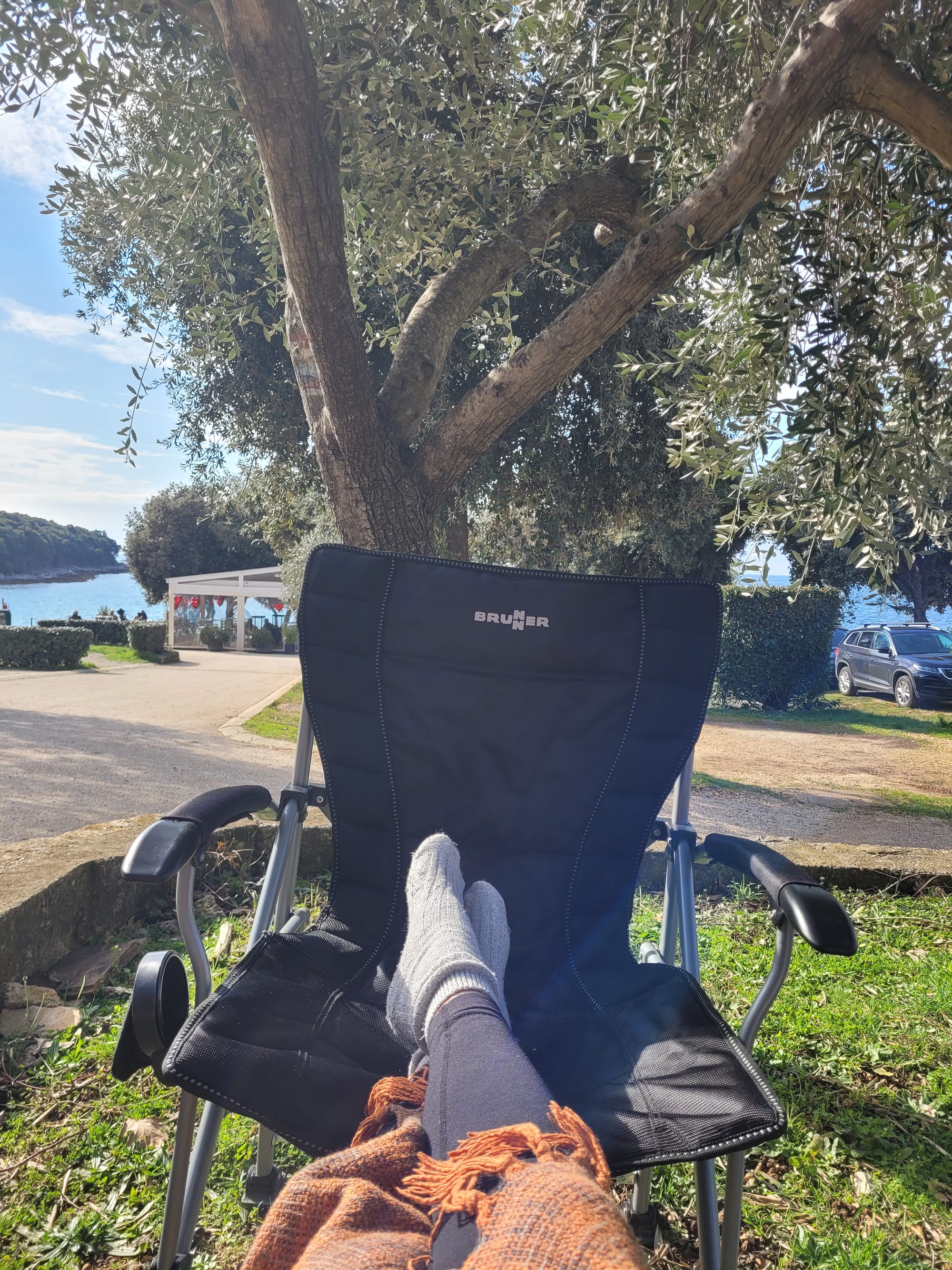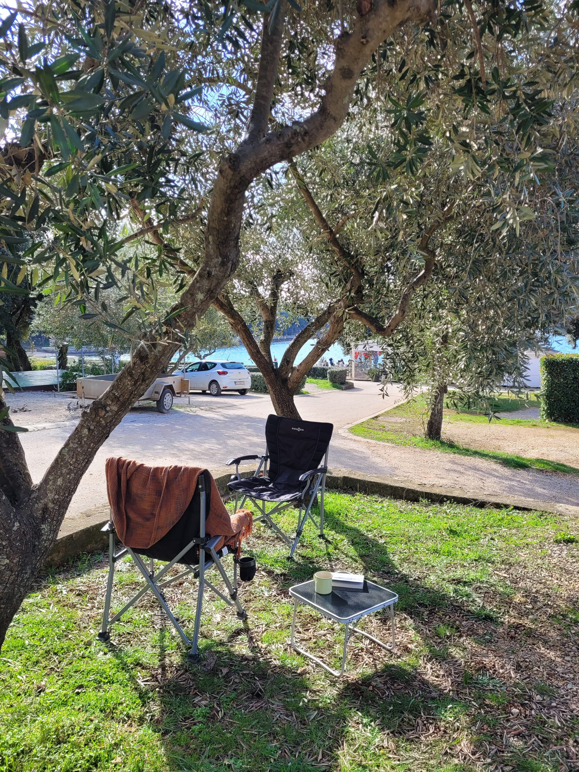 Und irgendwann findet man auch auf unserem Stellplatz ein sonniges Plätzchen.