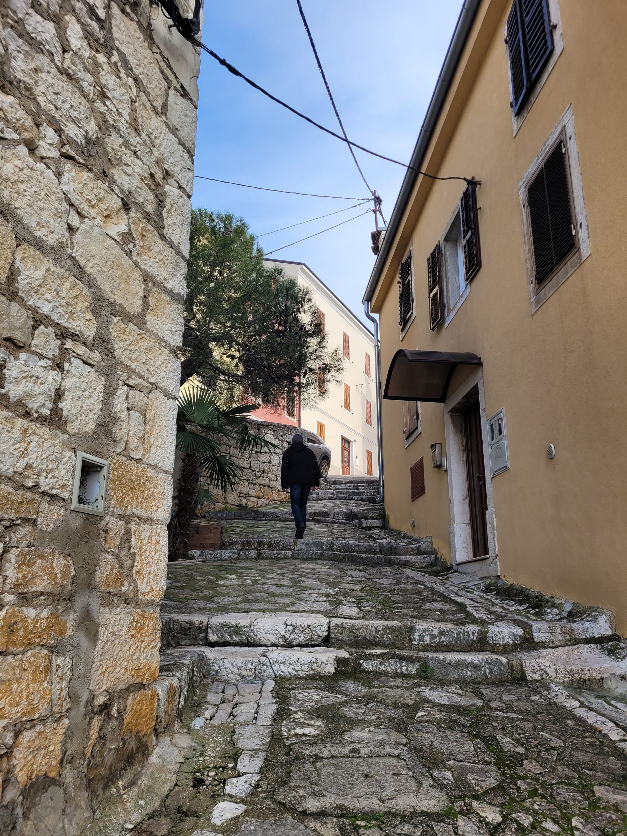 Wir spazieren in das Zentrum des kleinen Ortes, der Weg geht steil bergauf...