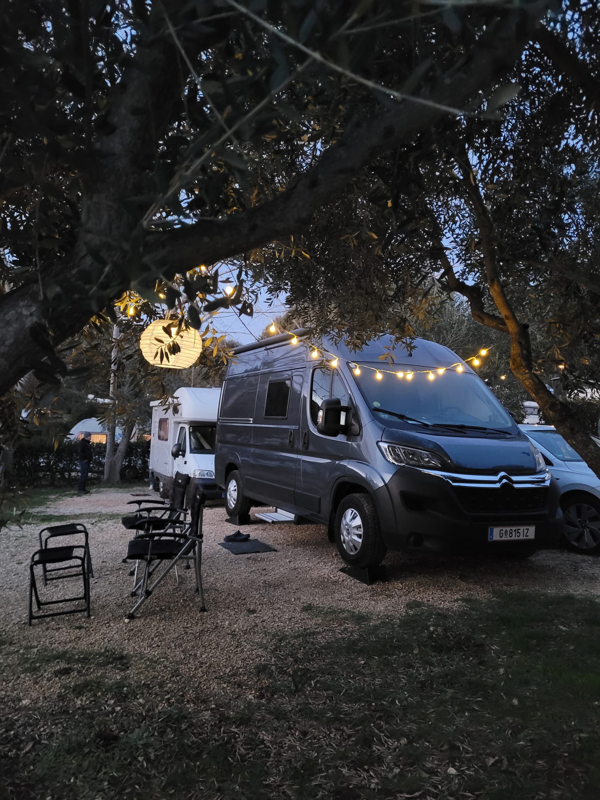 Eine Stunde vor der Ankunft haben wir noch den reservierten Platz geändert. Heute - Sonntag - sind - latürnich 🤦🏻♀️ - total viele Camper wieder abgereist. Und plötzlich war der Platz neben uns frei, der total sonnig ist. Schnell sind wir zur Rezeption gelaufen und haben umreserviert. Und jetzt stehen die beiden Camper nebeneinander und wir genießen die Abendstimmung.