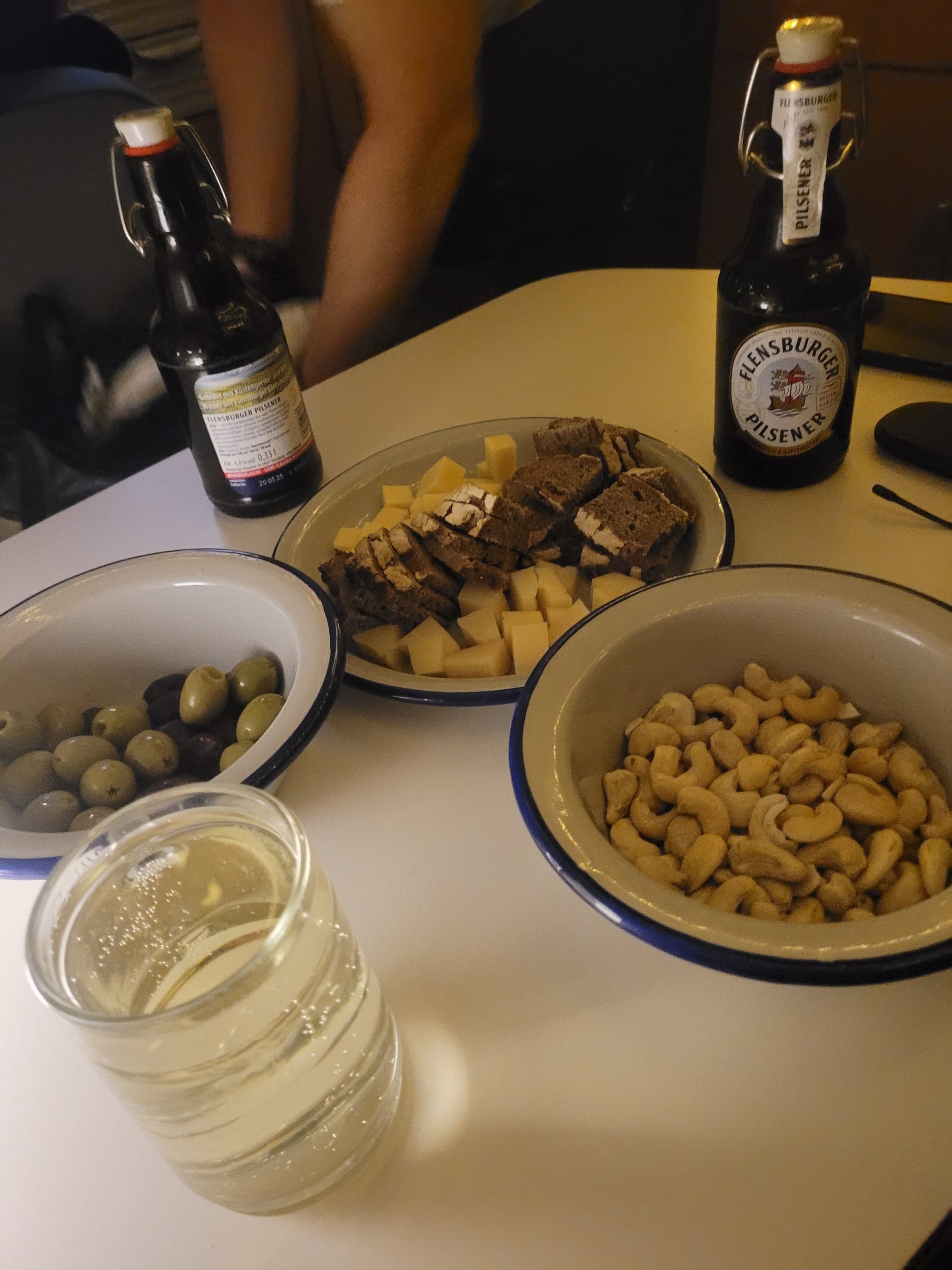 Da es schon spät ist haben wir keine Lust mehr in den Ort zu gehen sondern setzen uns bei Matthias zusammen. Und zum Abendessen gibt es eine köstliche Jause.