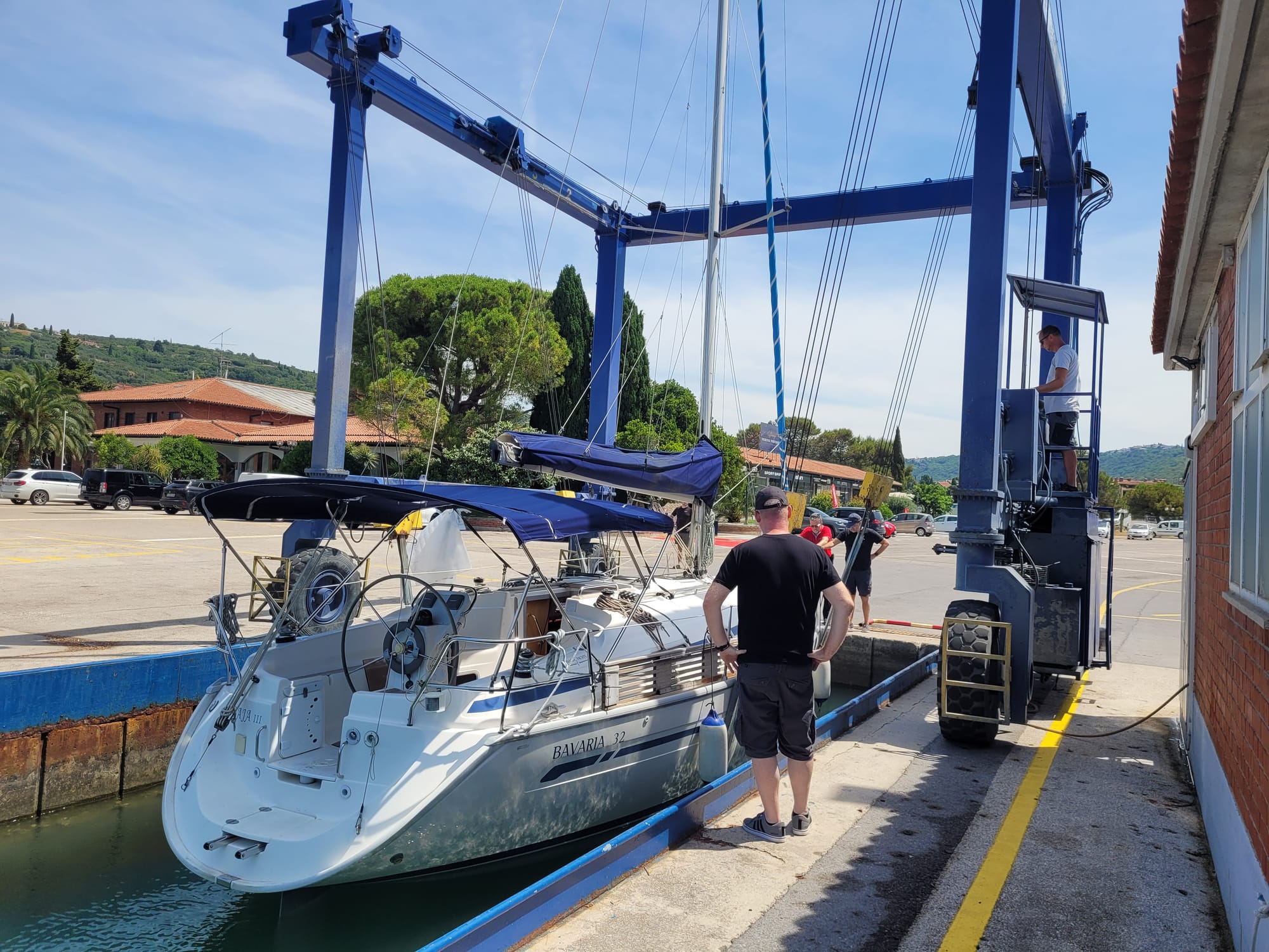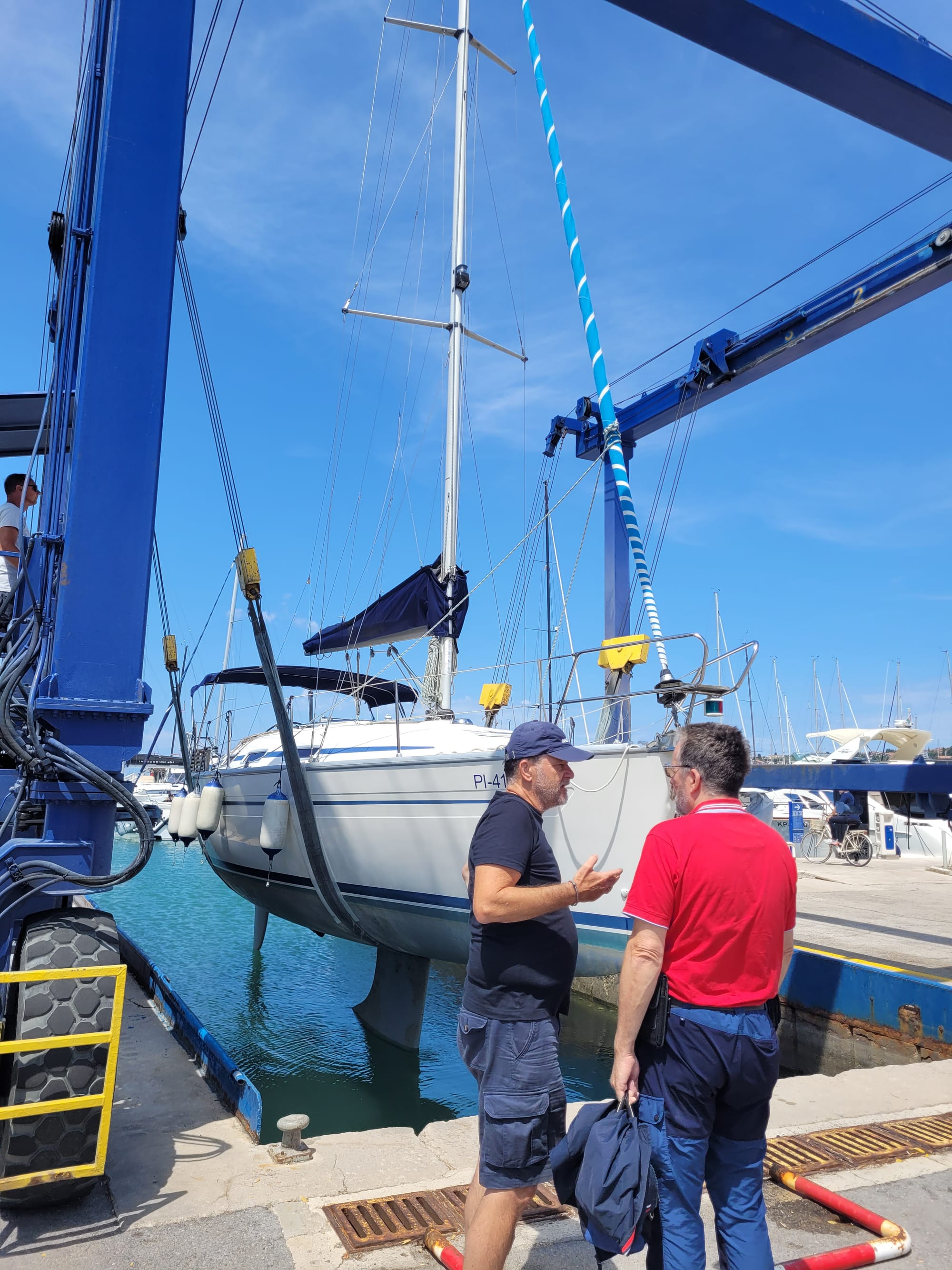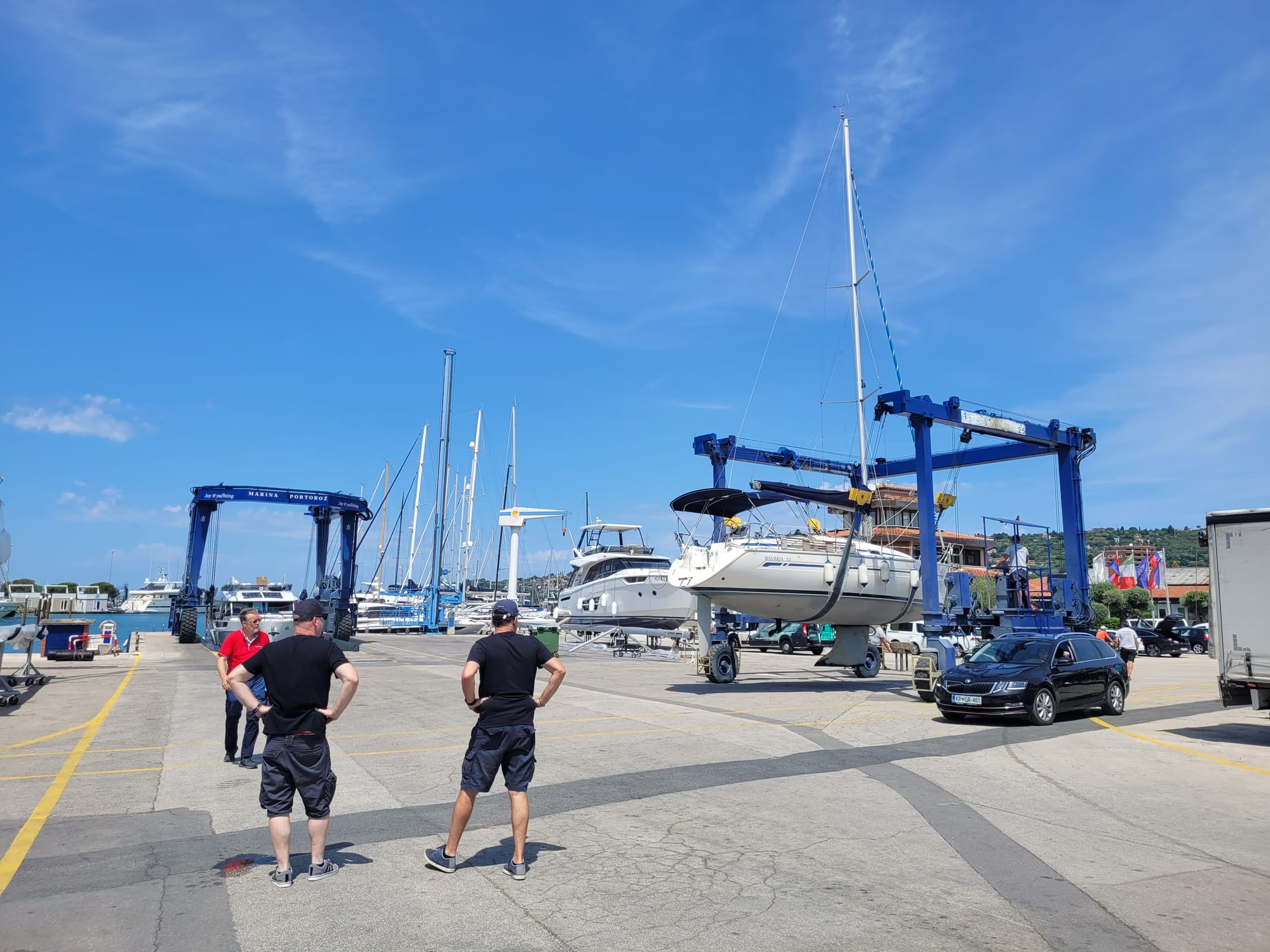 Andreas und ich sind eigentlich fertig und fahren nach dem Kaffee los. Heute um 10:00 haben wir den Termin zum Einkranen. Diesmal kommt Dejan, der Bruder von Matej, dazu.