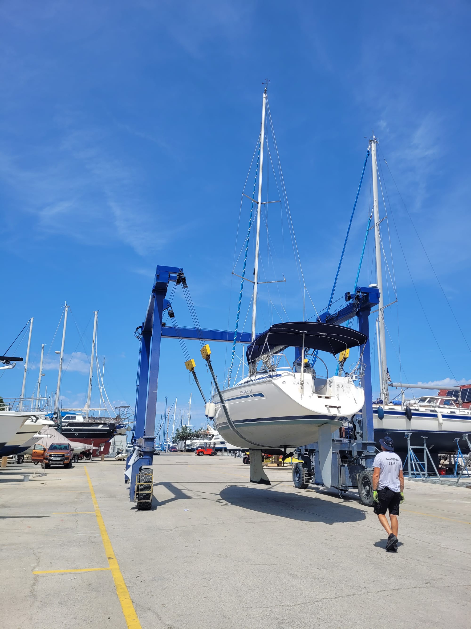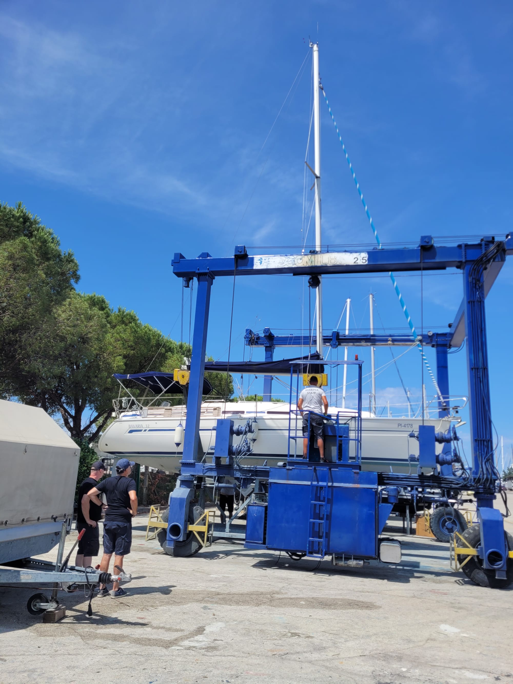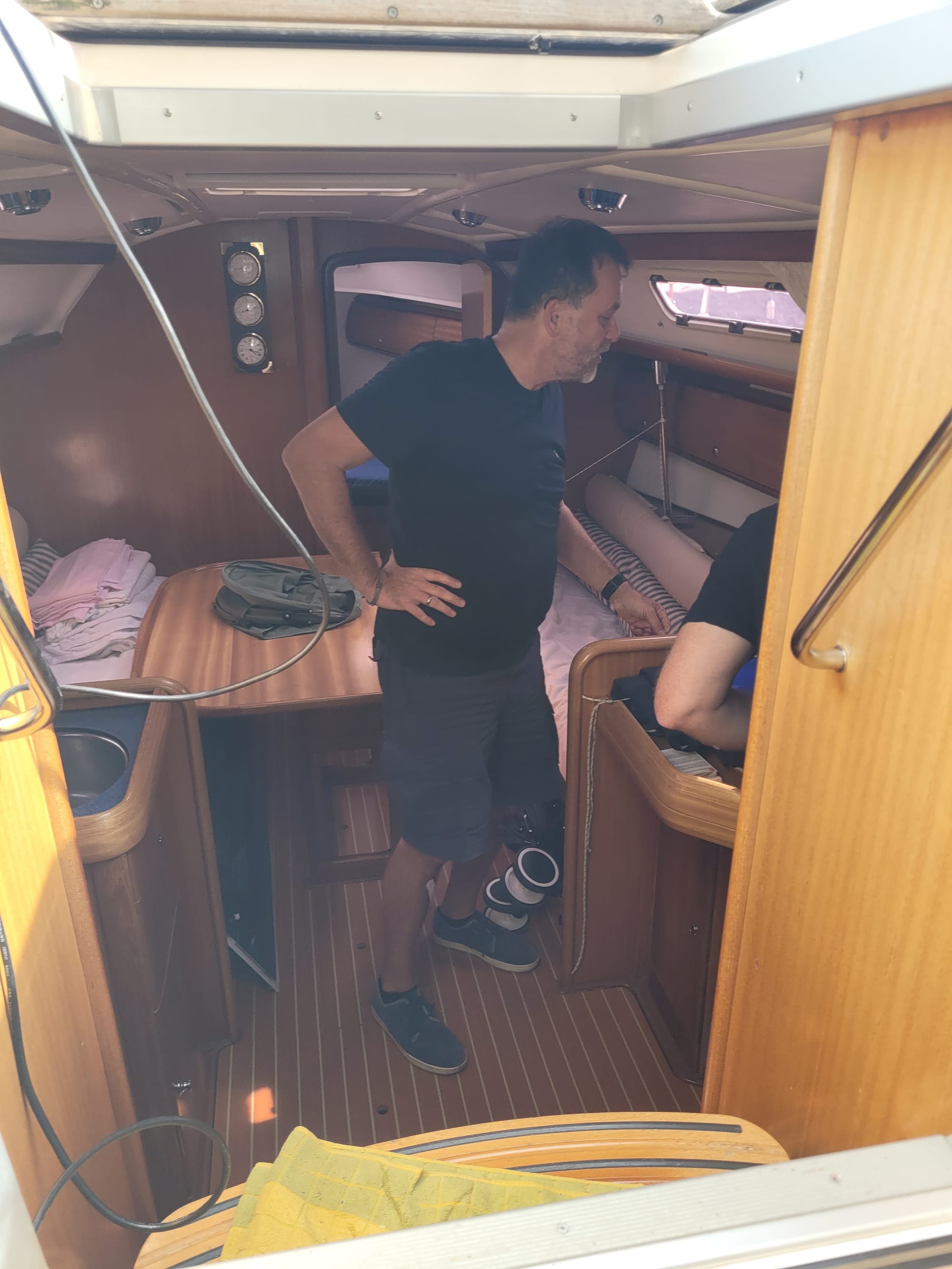 Andreas und ich sind eigentlich fertig und fahren nach dem Kaffee los. Heute um 10:00 haben wir den Termin zum Einkranen. Diesmal kommt Dejan, der Bruder von Matej, dazu.