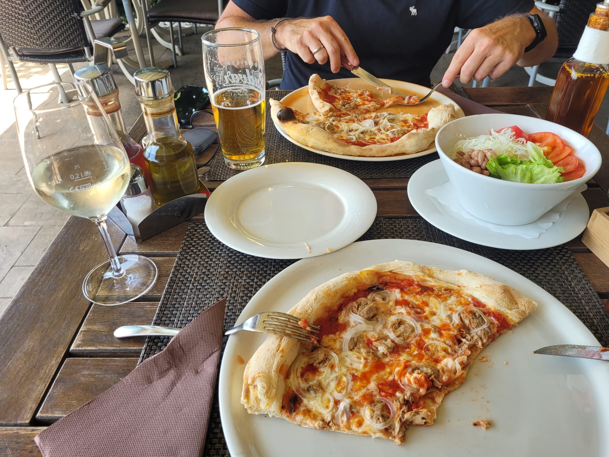 Jetzt brauchen Andreas und ich eine Stärkung in der Stammpizzeria.