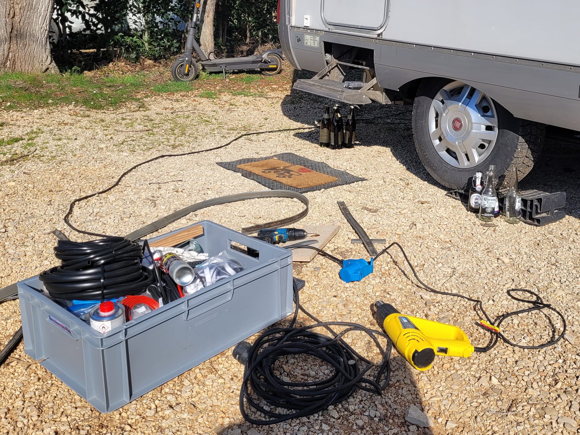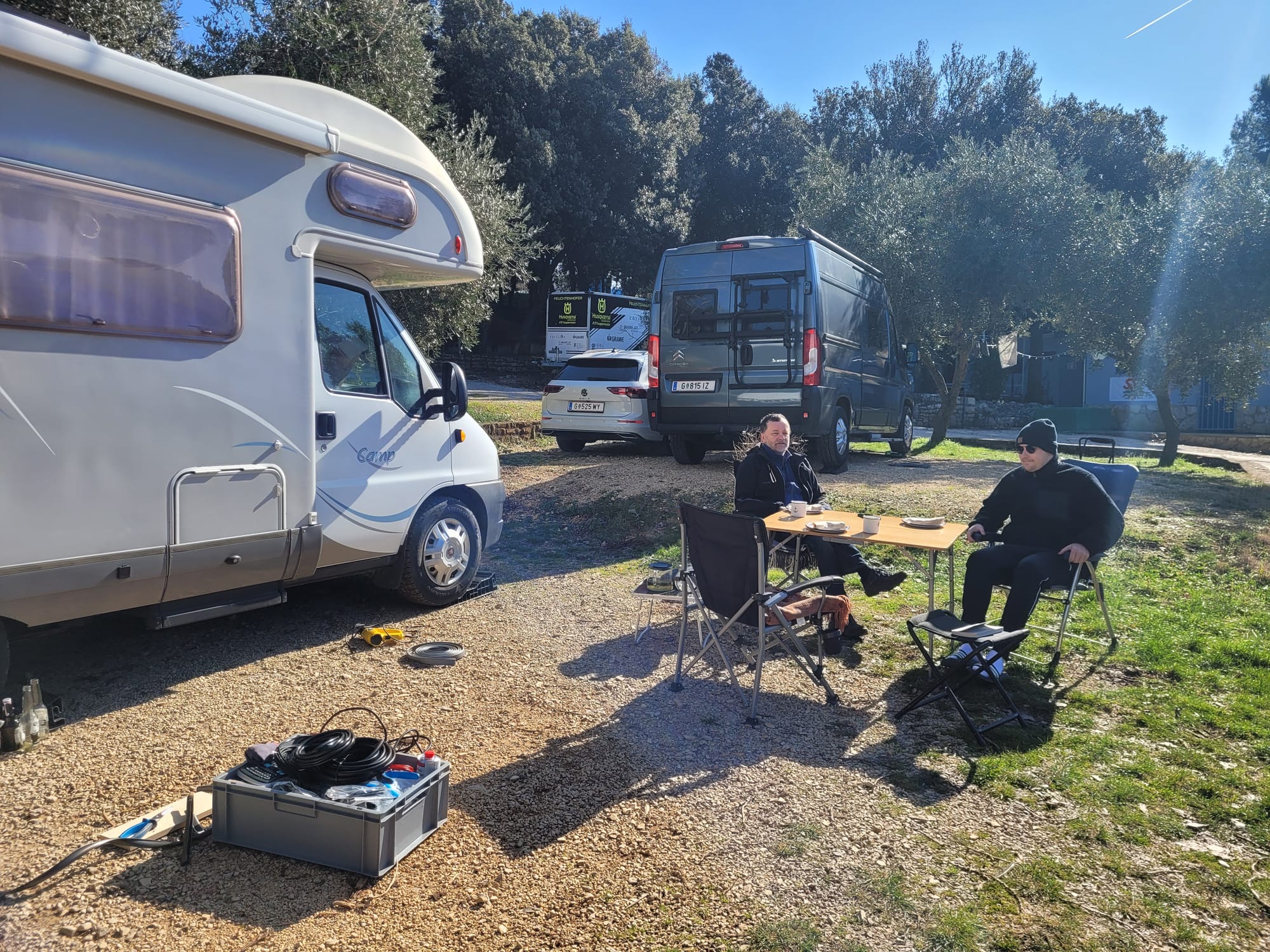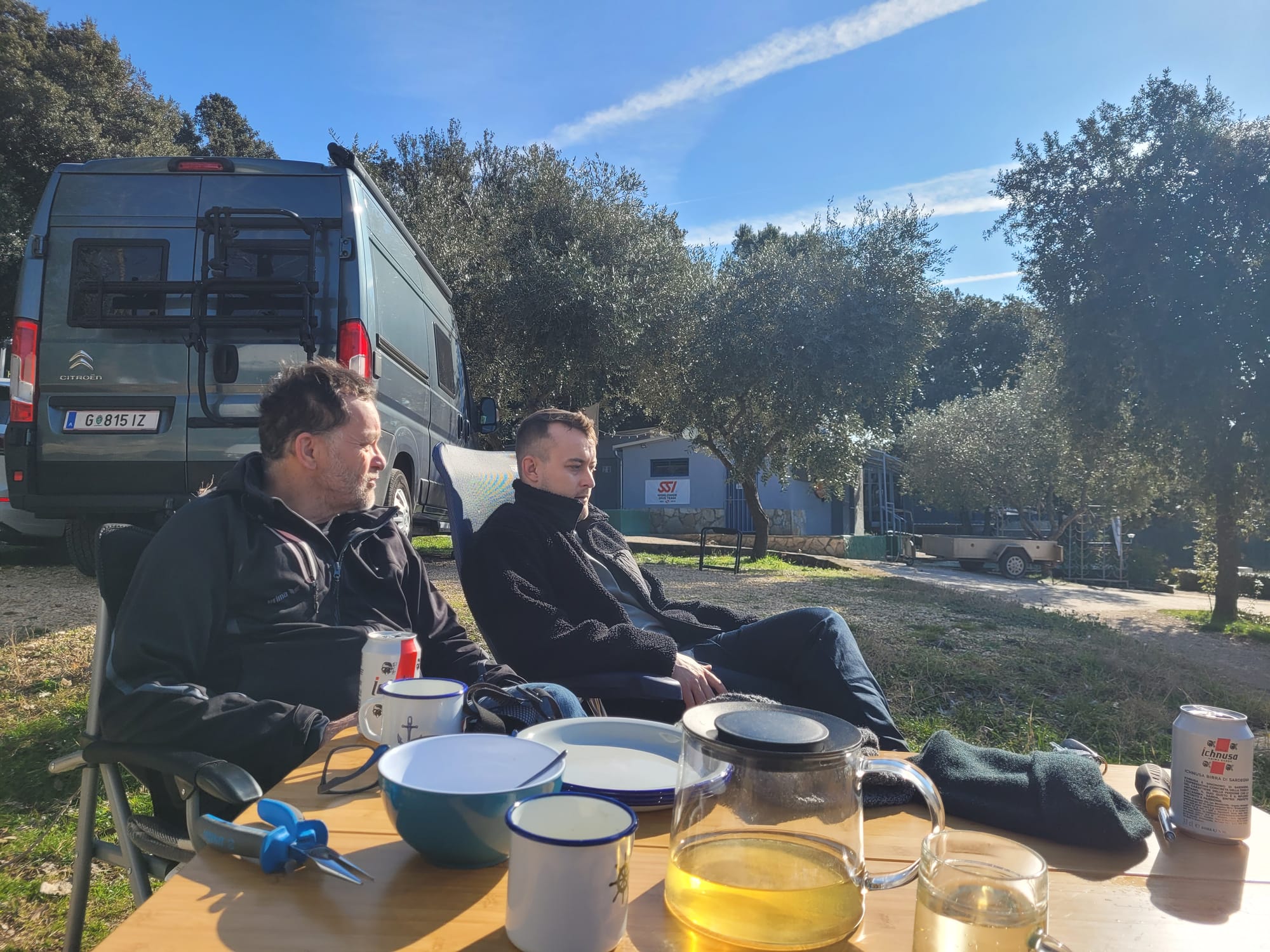 Später krabbeln auch Andreas und Matthias aus den Campern.