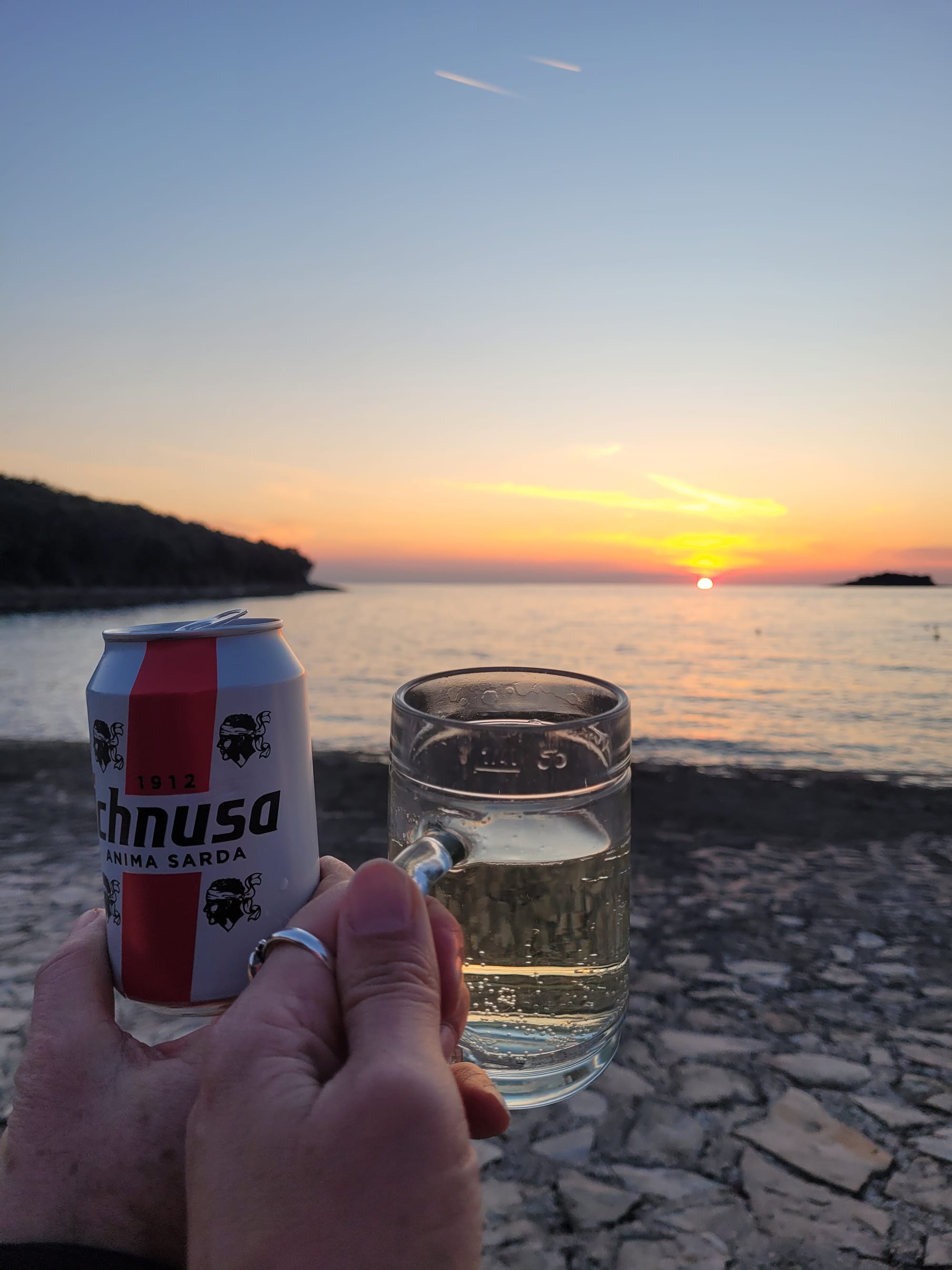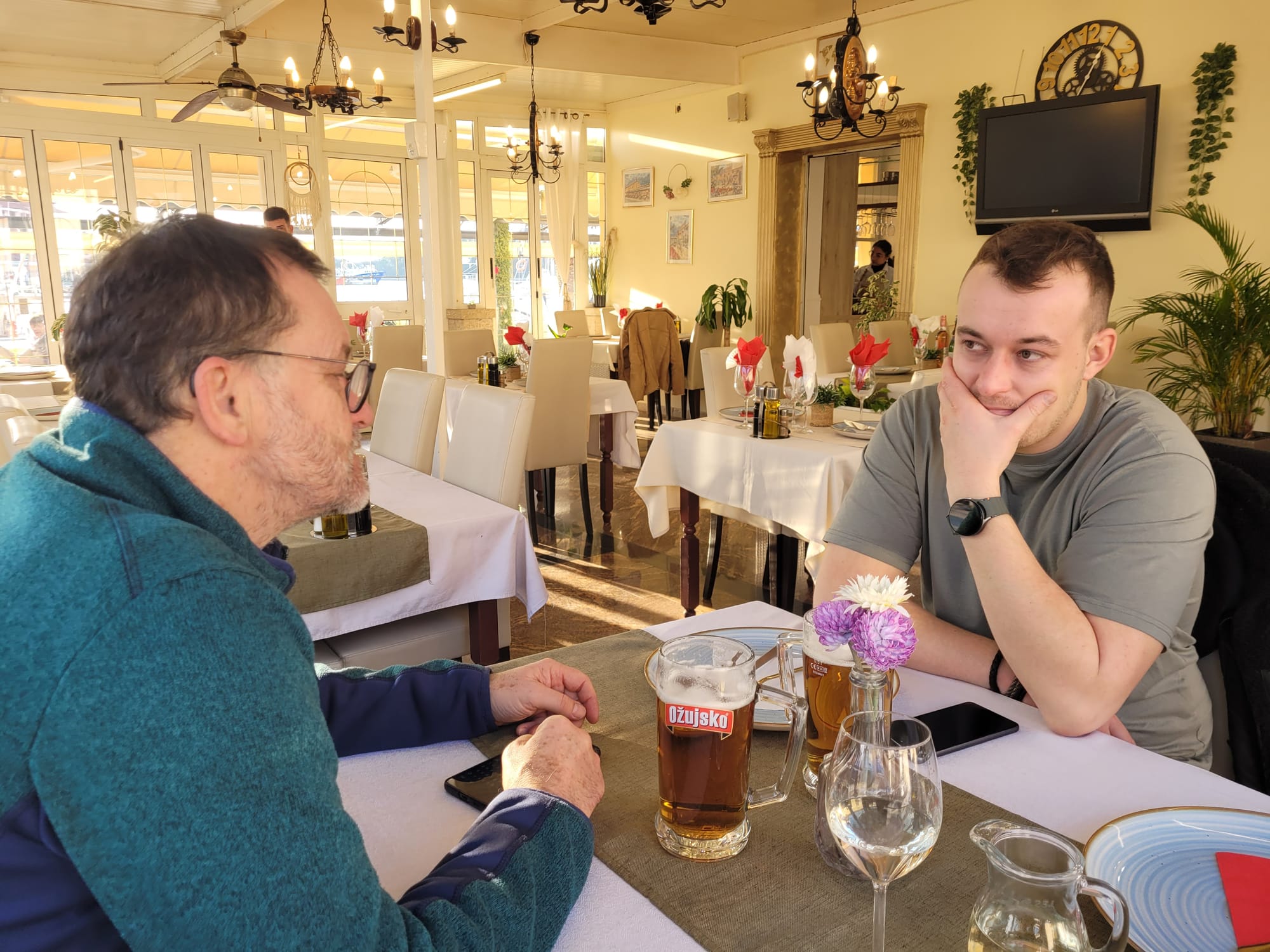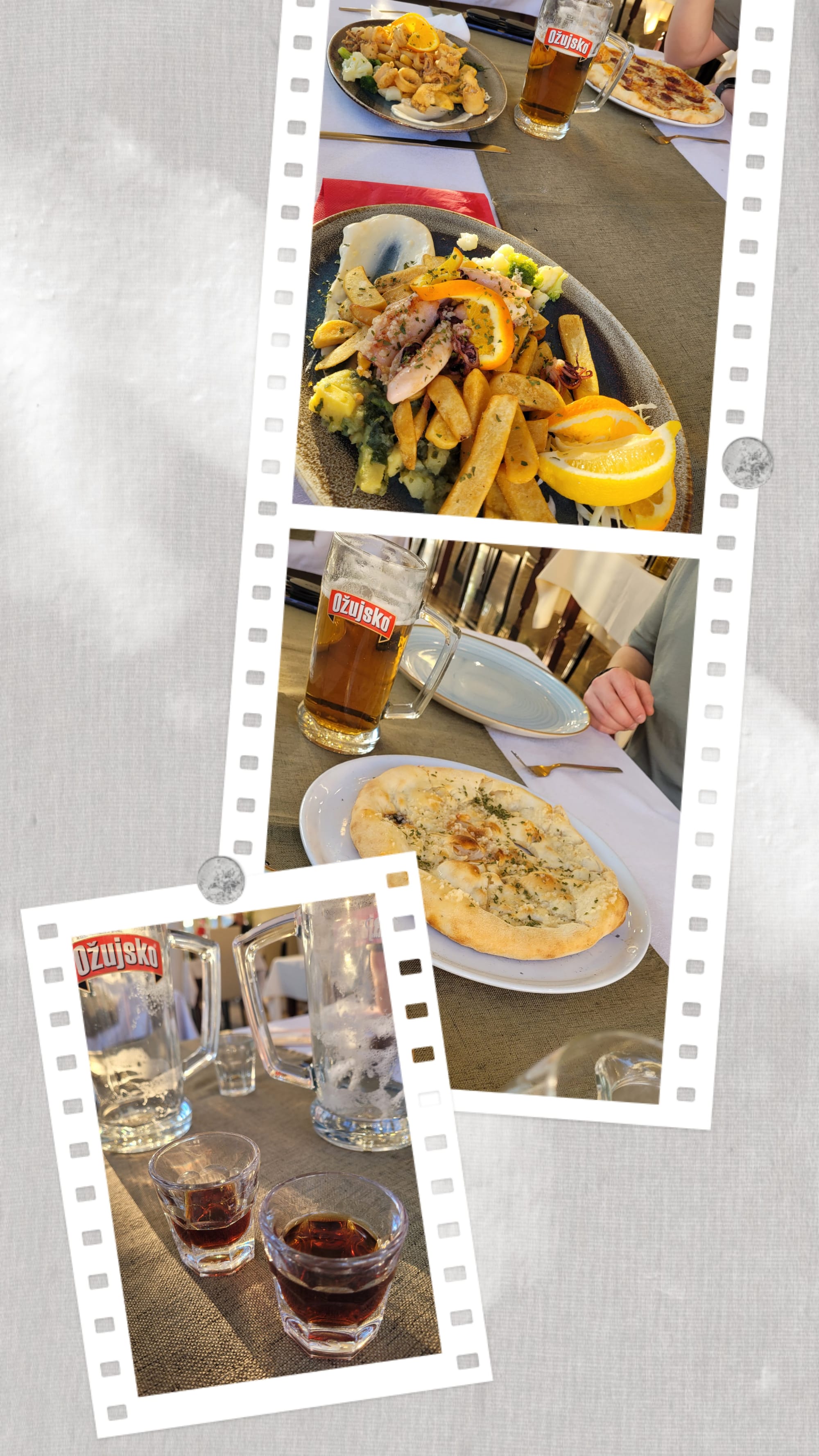 Wir werden freundlich bedient, es gibt Pizzabrot als Gruß von der Küche und Pelinkovac on the house, mir schmeckt auch das Essen, den anderen naja.