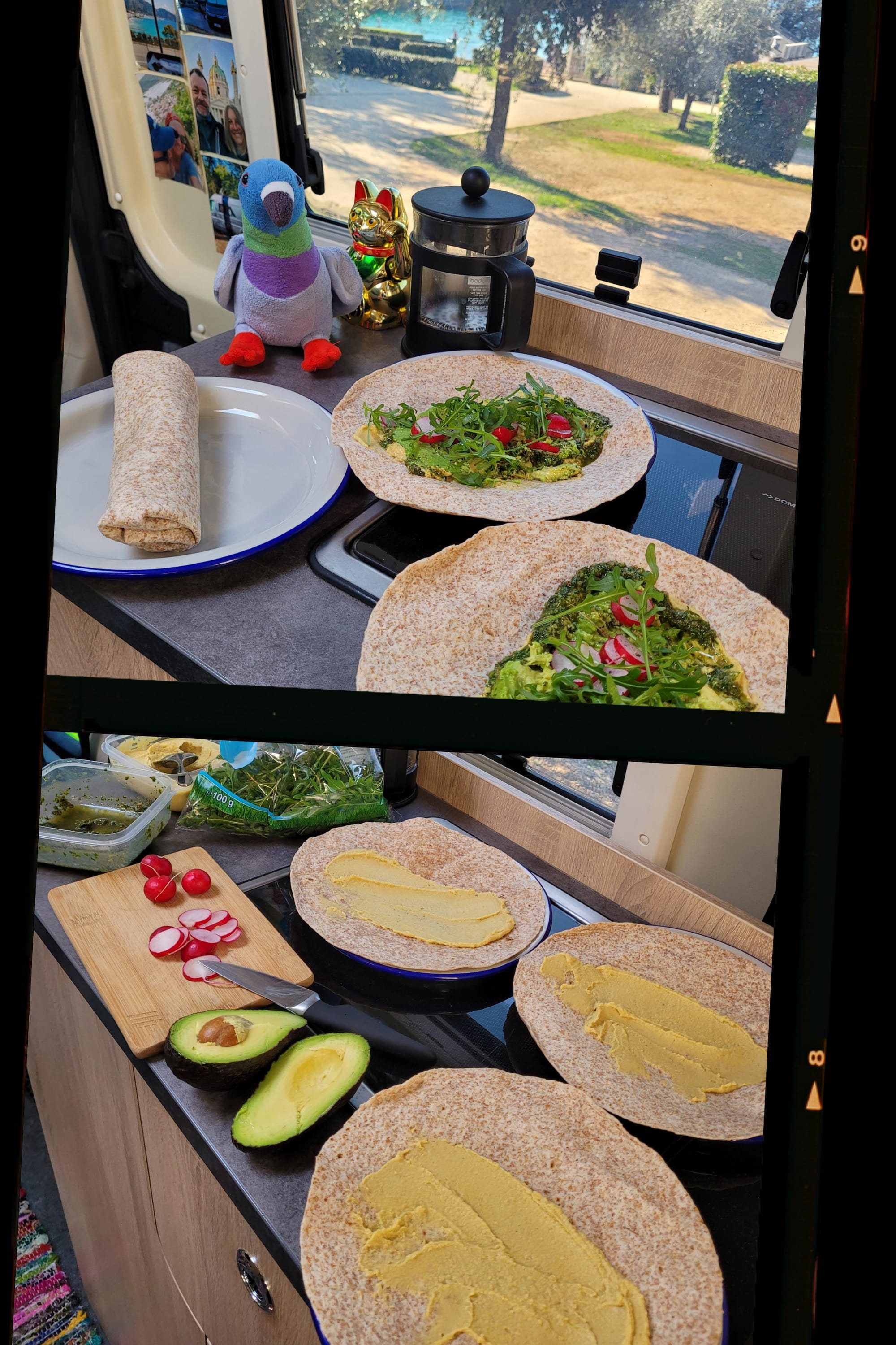 Luiga kocht zum Frühstück zu Mittag Wraps...