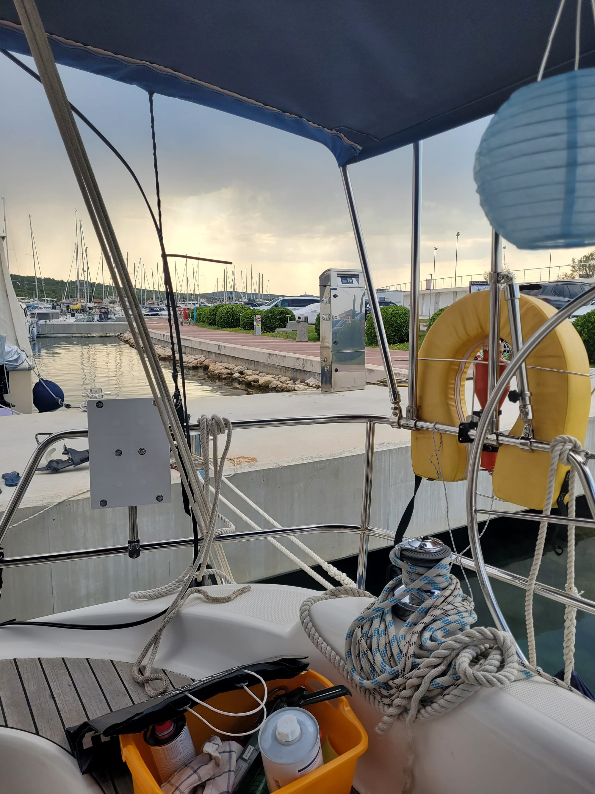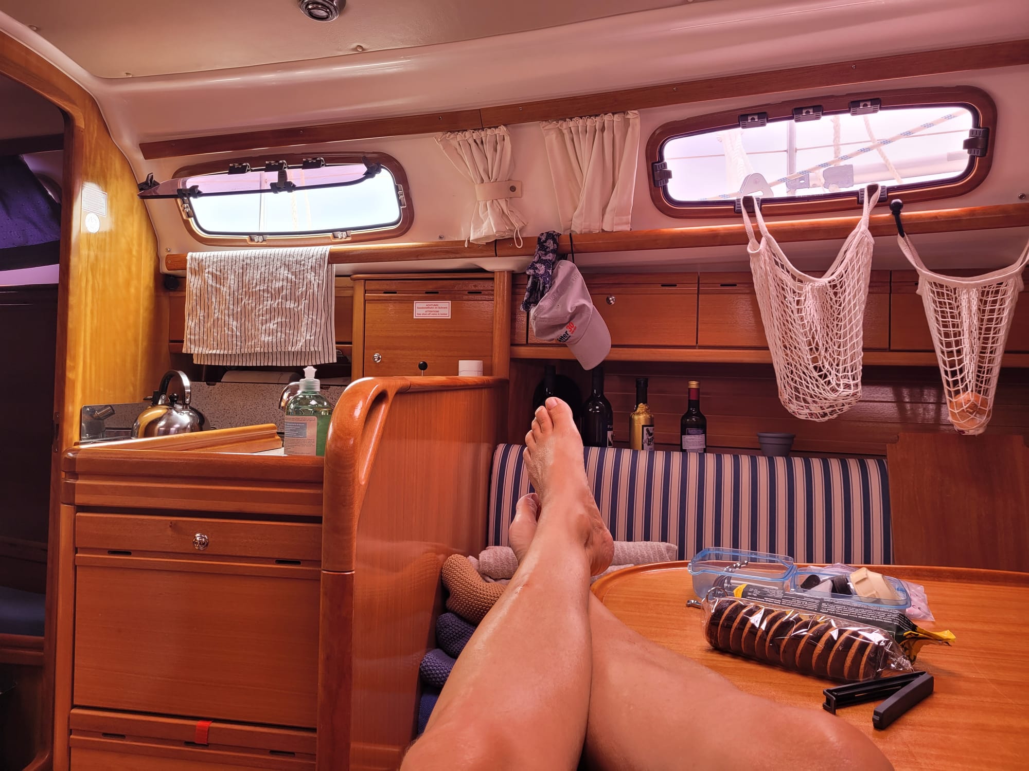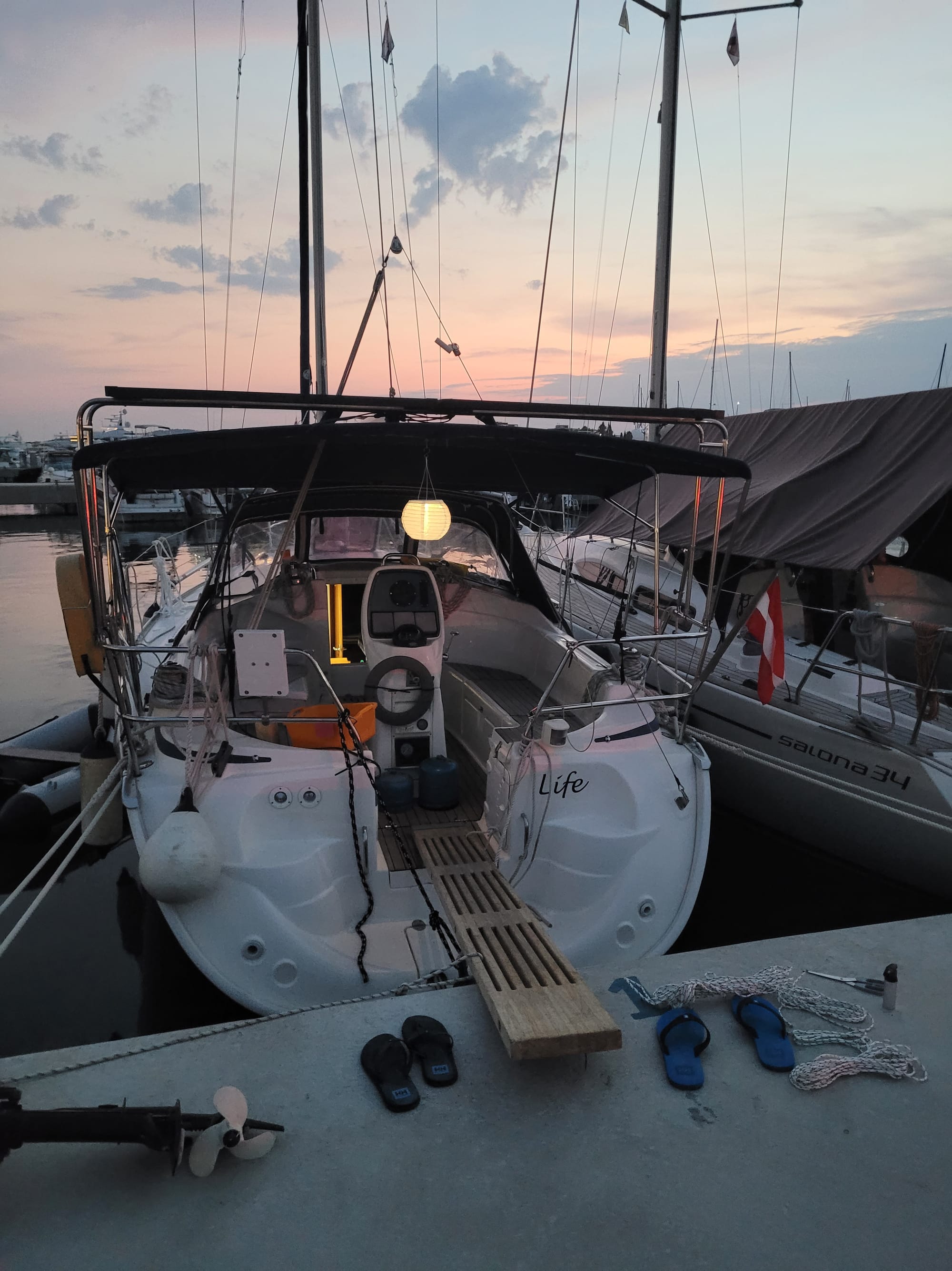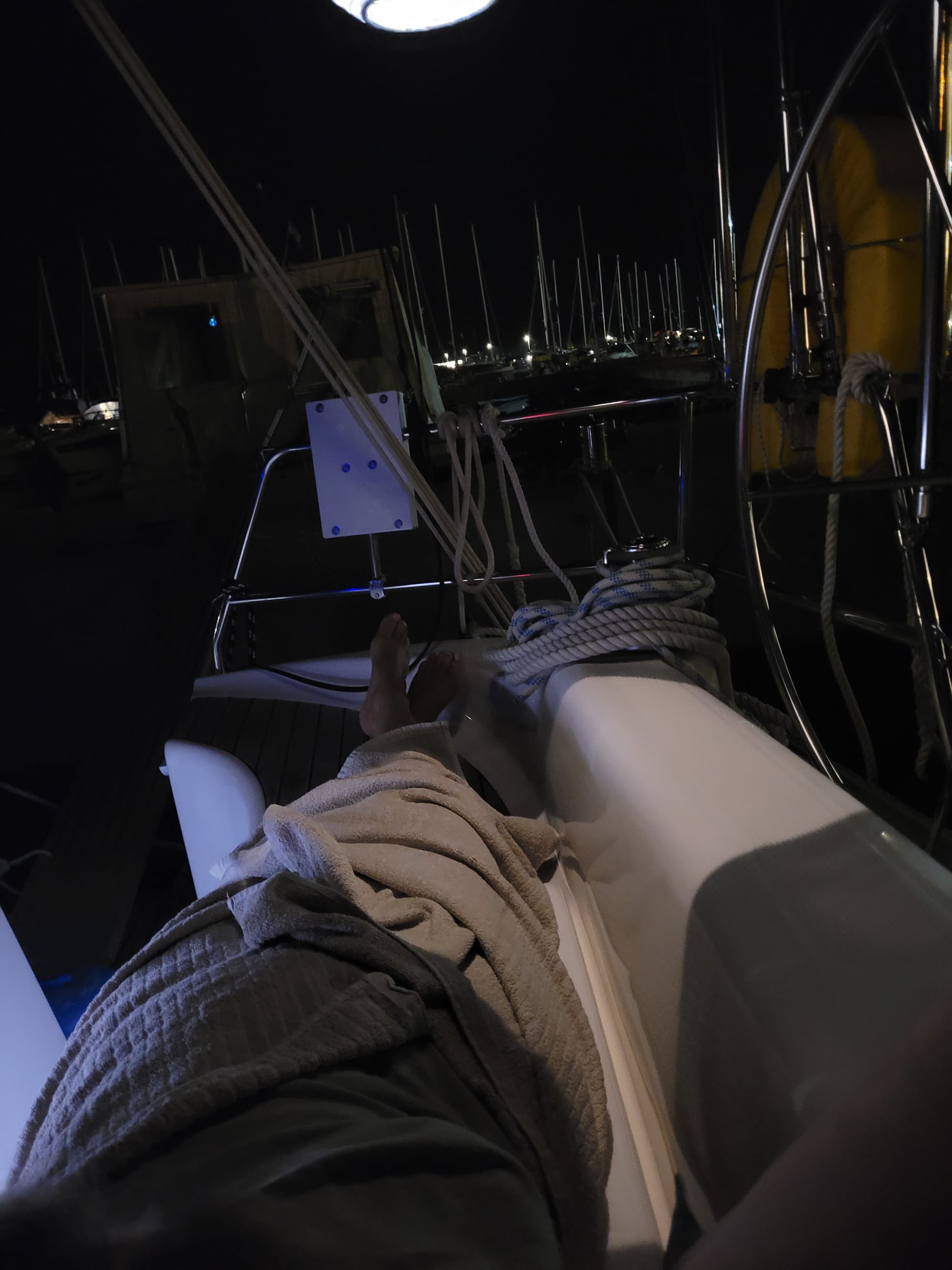 Auch an diesem lauen Abend sitzen wir bis nach Mitternacht an Deck und genießen das ruhige Marinaleben.