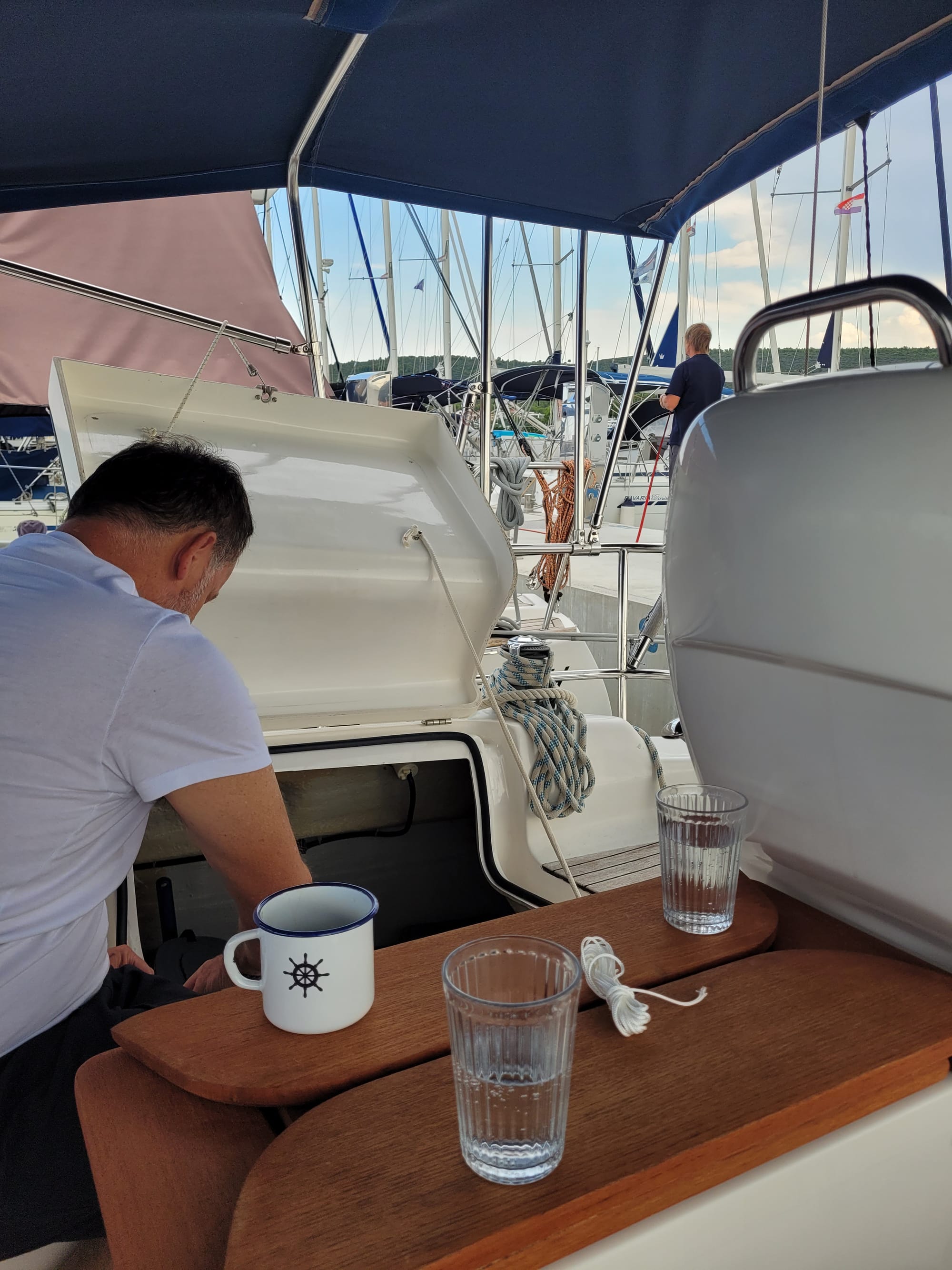 ...ich sitze am Steg vor der Life und sortiere und schneide Leinen. Das ist entspannend, beruhigend und schön - müsste ich nicht in ein paar Tagen wieder ins Büro würde ich mich auch als Austeiger fühlen.