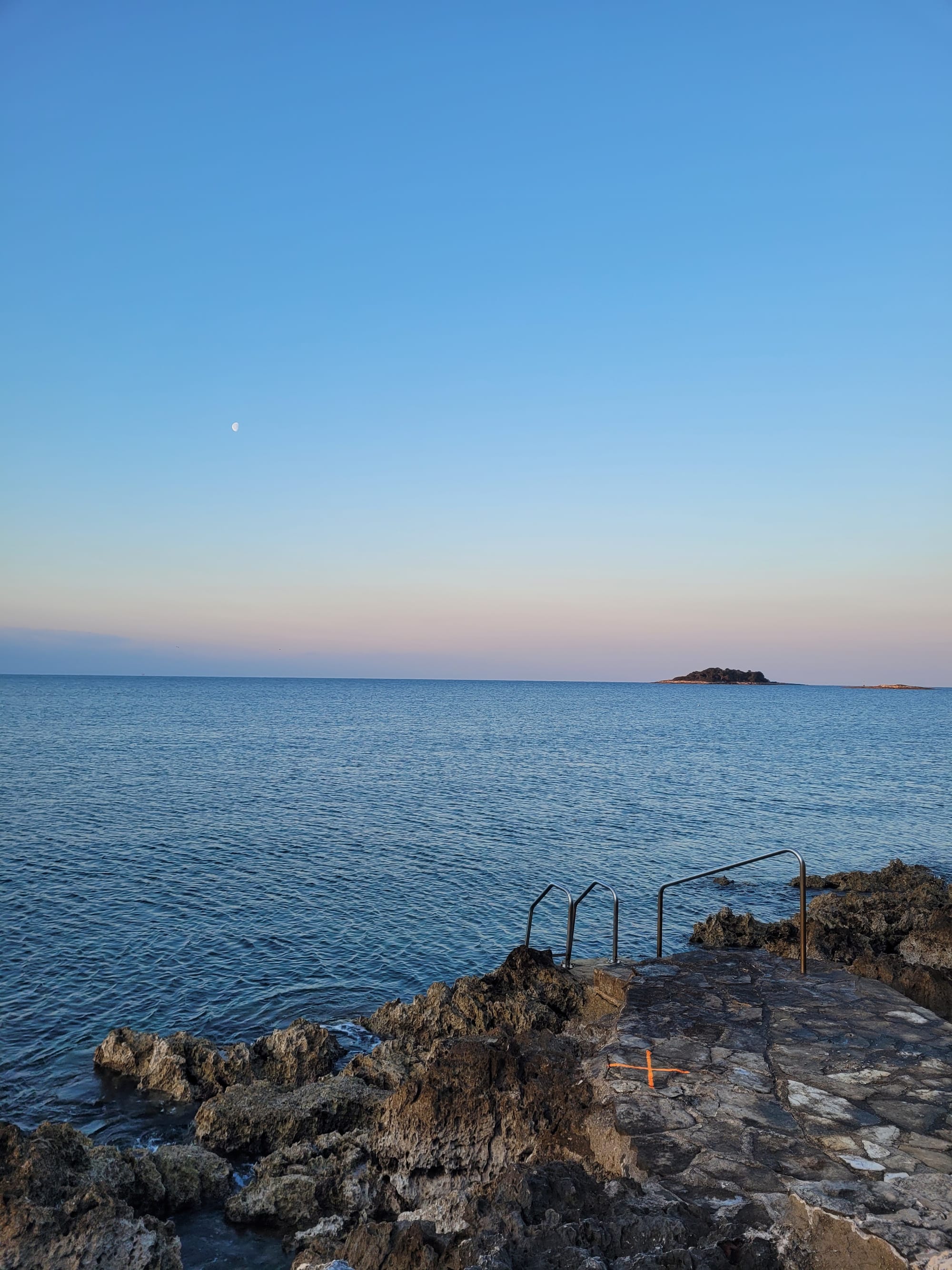 Der Mond ist noch hier als ich am Meer ankomme, auf die Sonne muss ich fast eine halbe Stunde warten, bis sie es über die Bäume schafft,...
