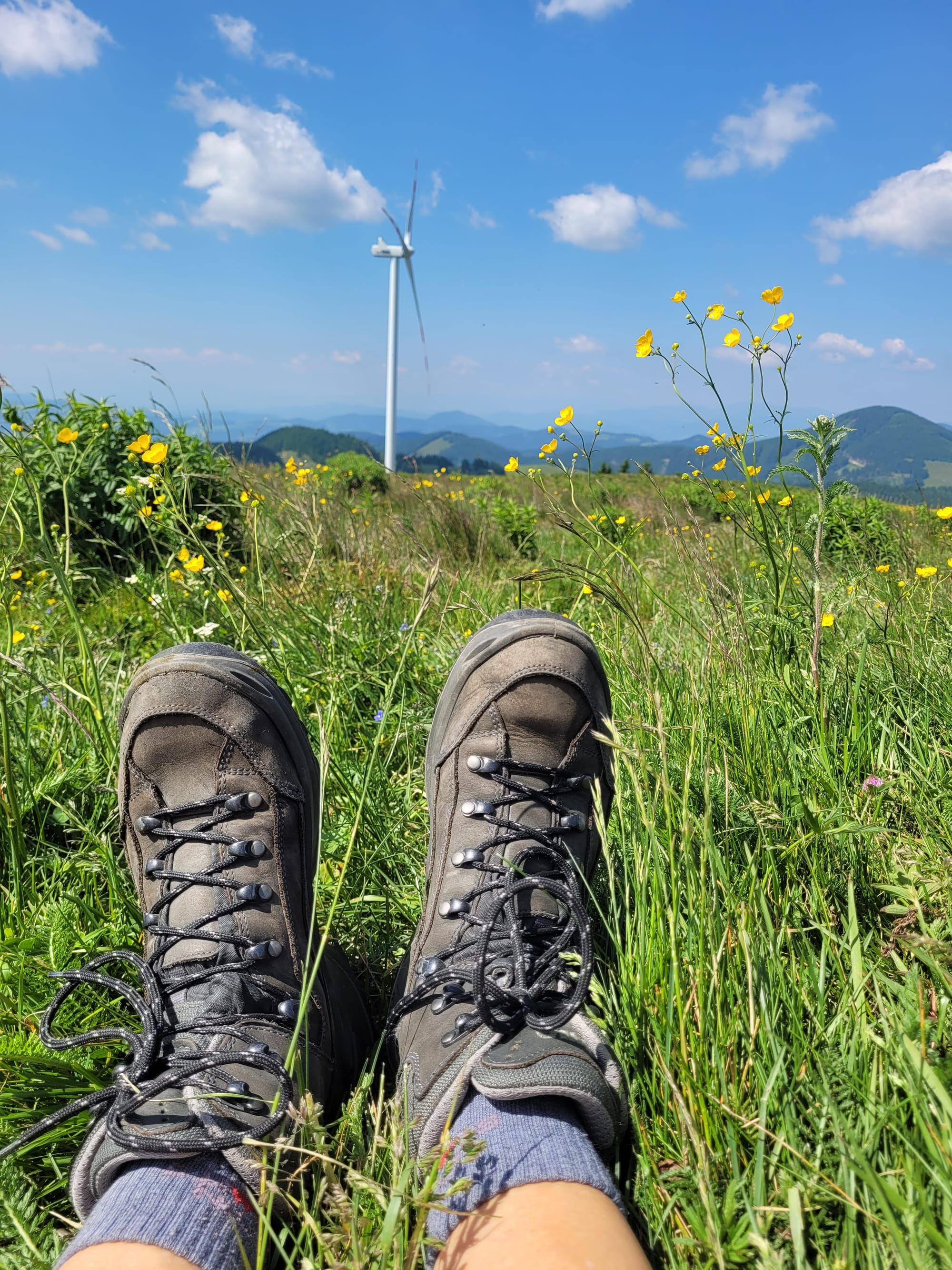 Und dann passiert auch noch Fehler Nummer 2: wir nehmen ungewollt den selben Weg wie beim Hingehen und kommen wieder beim Windrad am Fuße des Plankogels an. Das heißt wir müssen die Steigung nochmal rauf.