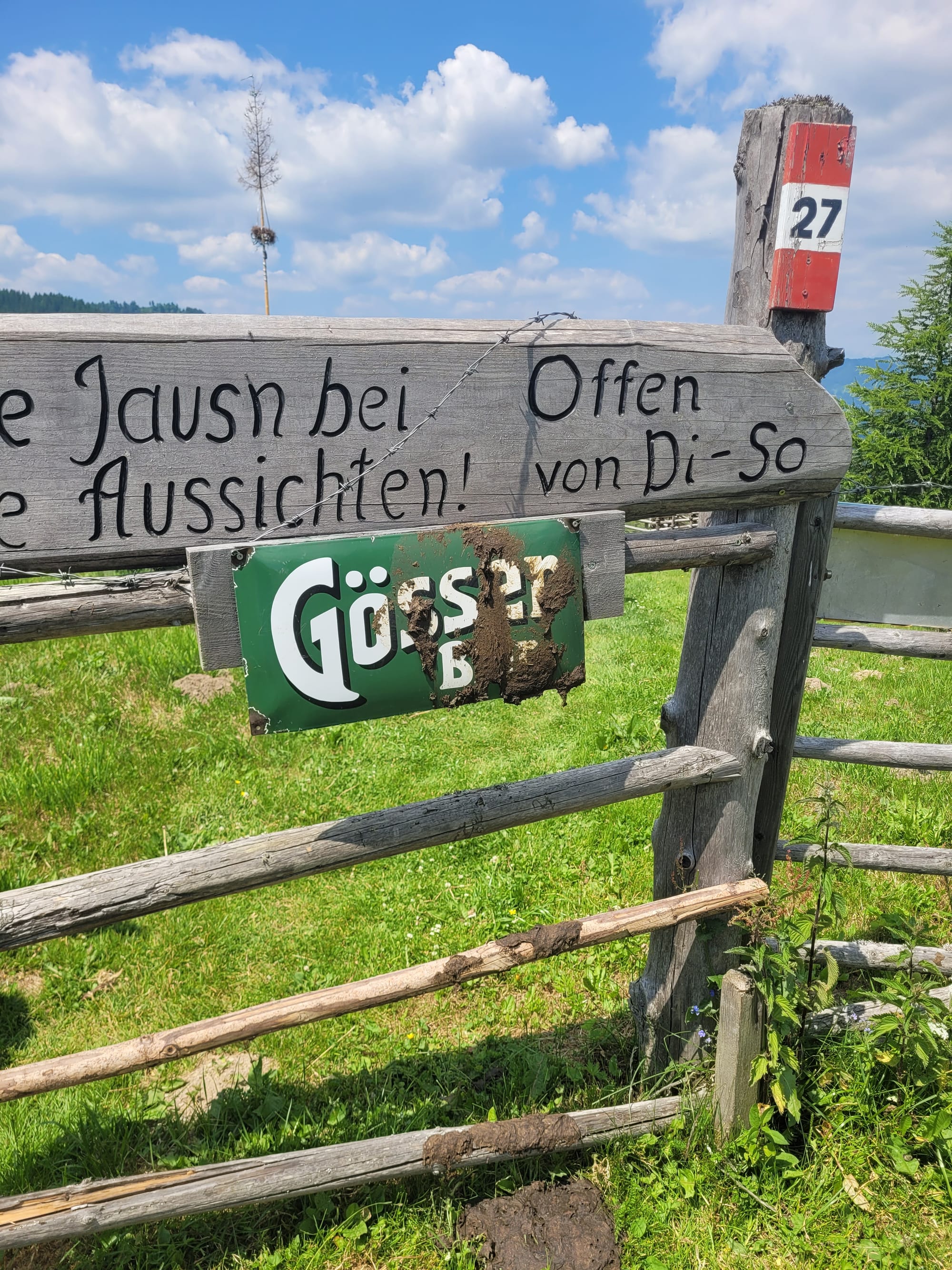Diese Kühe sind wirklich überall. Das Schild der Stoahand Hütte hat sogar eine als WC verwendet.