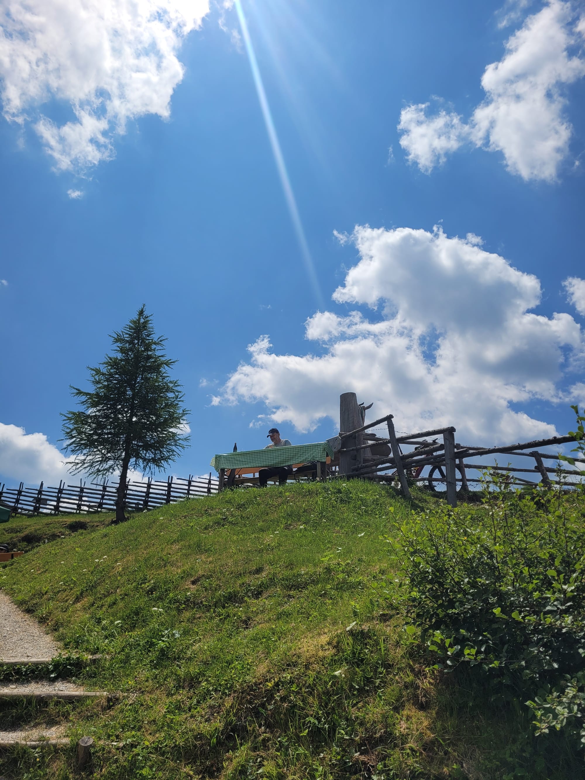 Bei der Hütte findet Andreas einen netten, ruhigen Tisch...