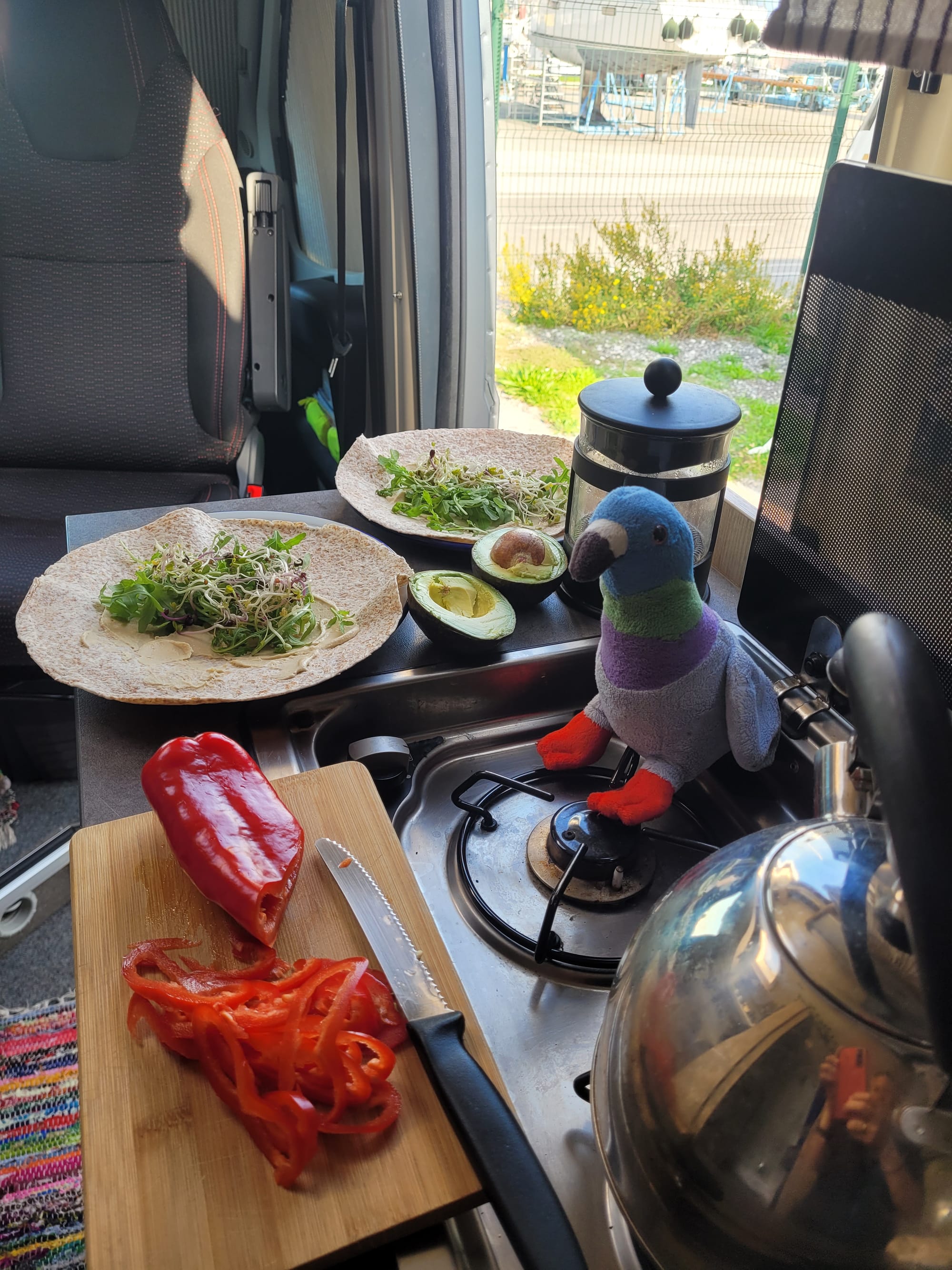 In der Früh gibt es den Kaffee im Freien. Es ist warm und der Wind bläst nur mehr ganz leicht.