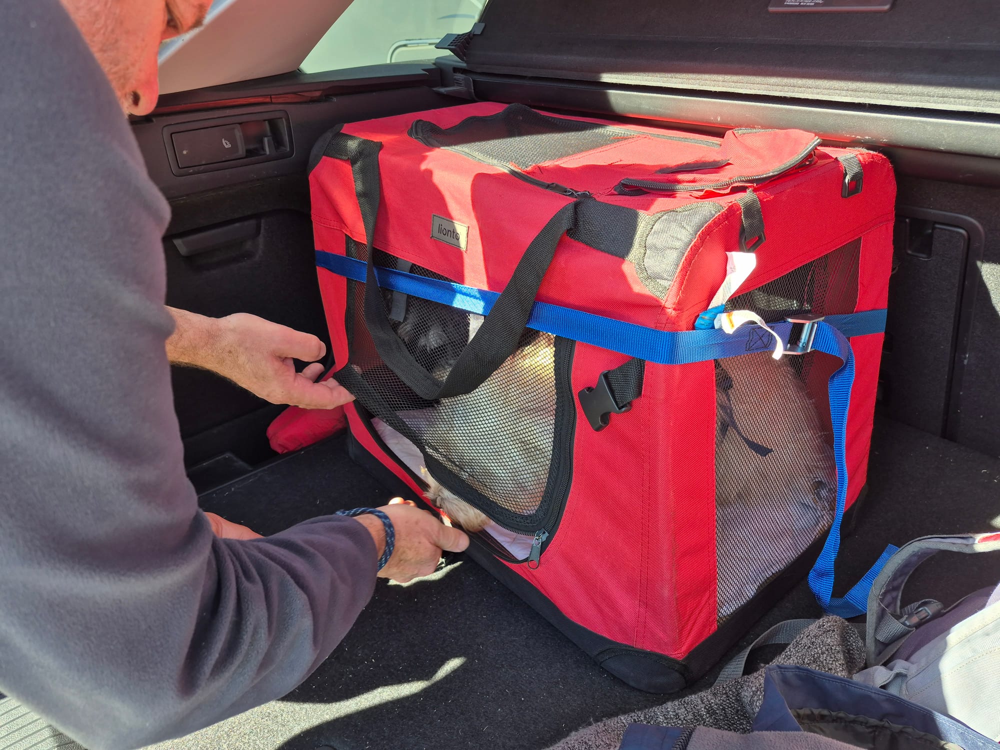 Funny und Masha machen es sich im Kofferraum bequem...