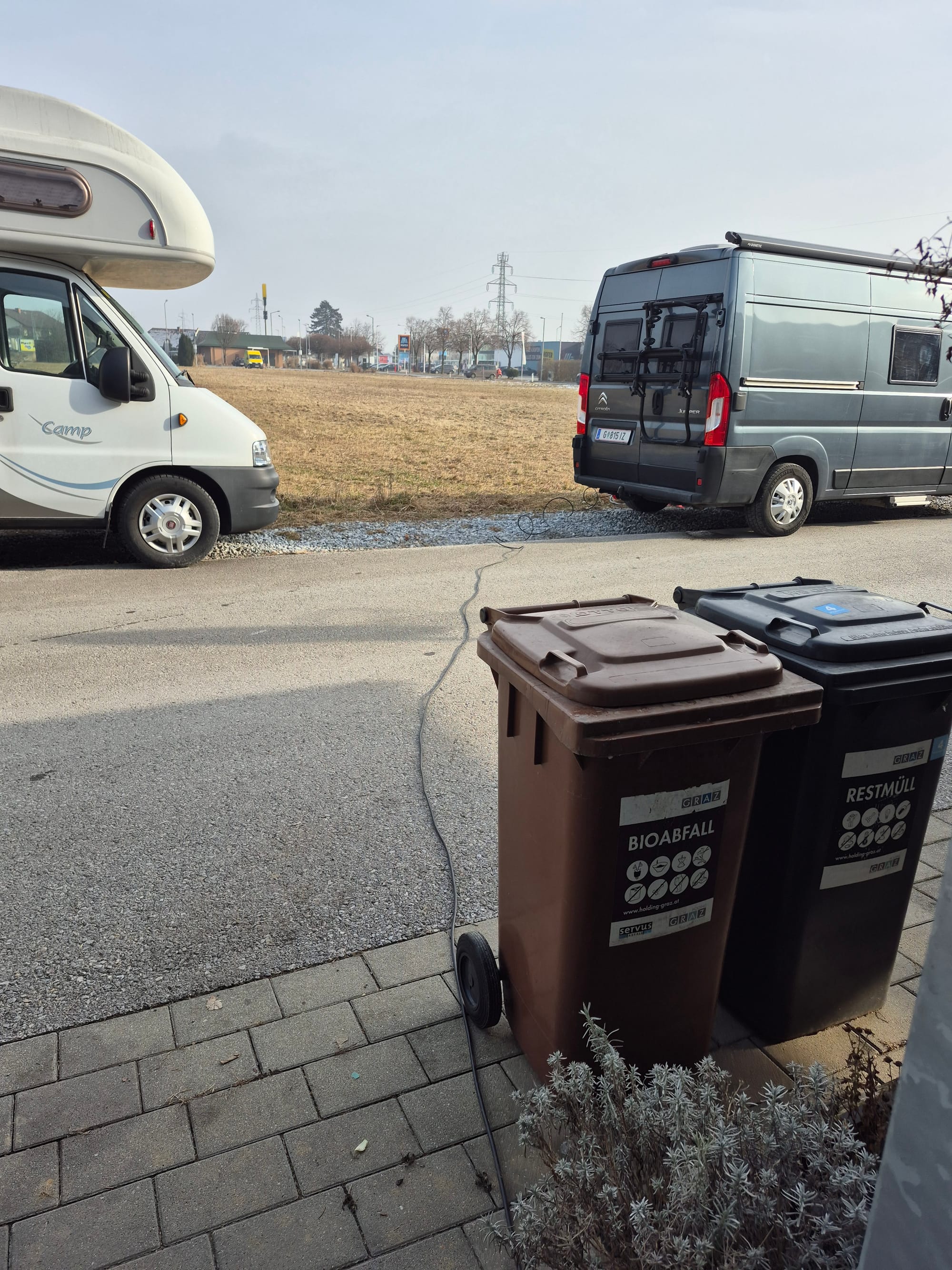 Kurz vor 14:00 starten wir dann wirklich. Bei Minusgraden und ohne Sonne fahren wir gen Süden.