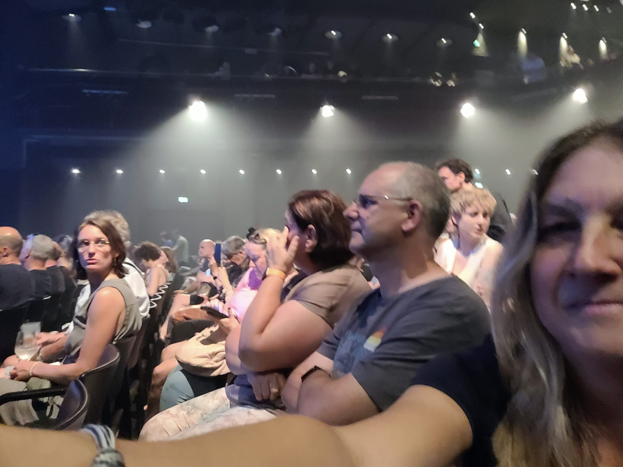 Dann gehen wir weiter zum Orpheum und sind eine Stunde zu früh dran. Es scheint auch noch nicht viel los zu sein. Doch als wir reingehen um uns ein Getränk zu holen sitzen dort Heidi und Michael mit einer Freundin - die wollen also auch der Musik lauschen. Wir setzen uns zu ihnen und entdecken: wir sitzen beim Konzert in der selben Reihe und sogar nebeneinander 😄😄.