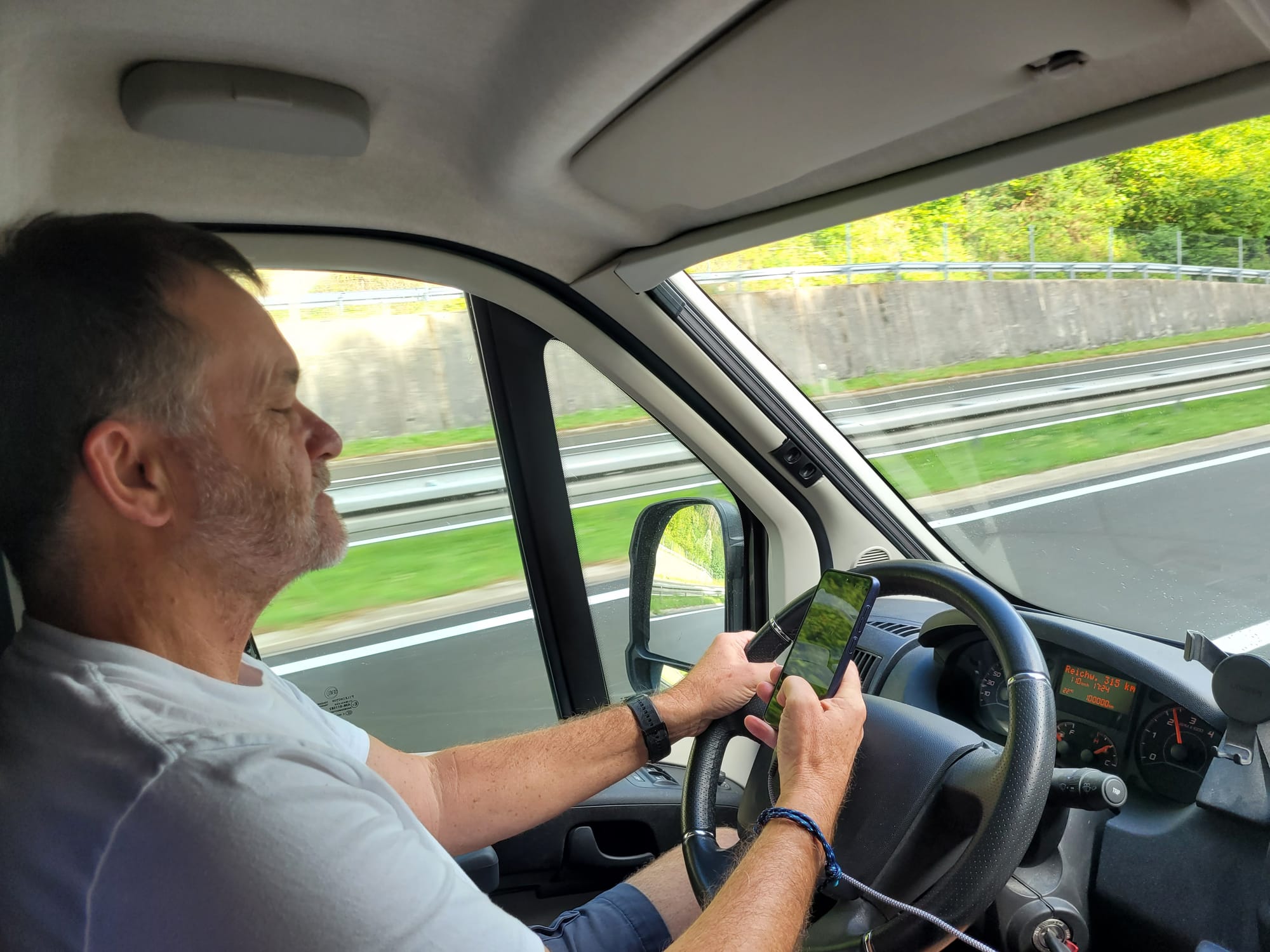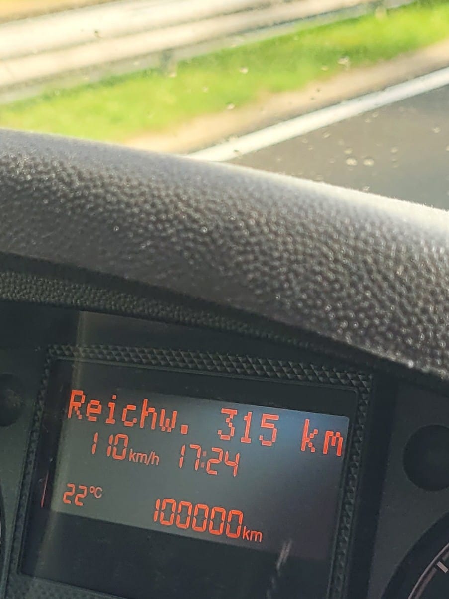 Nach zwei Stunden Fahrt ist es soweit: Luigi hat die 100.000 km erreicht und das wird dokumentiert.