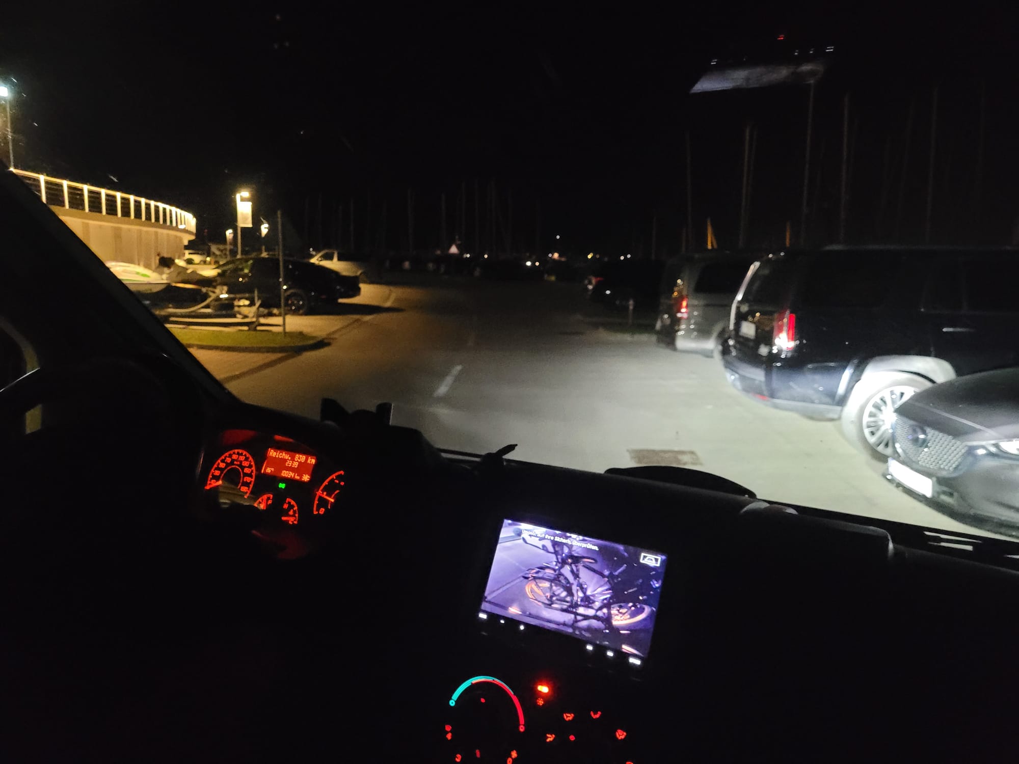 Und dann erkennen wir an den Fotos vom letzten Mal, dass wir doch falsch stehen, wir hätten noch weiter fahren sollen. Andreas prüft das schnell zu Fuß und findet die Bavaria. 💪