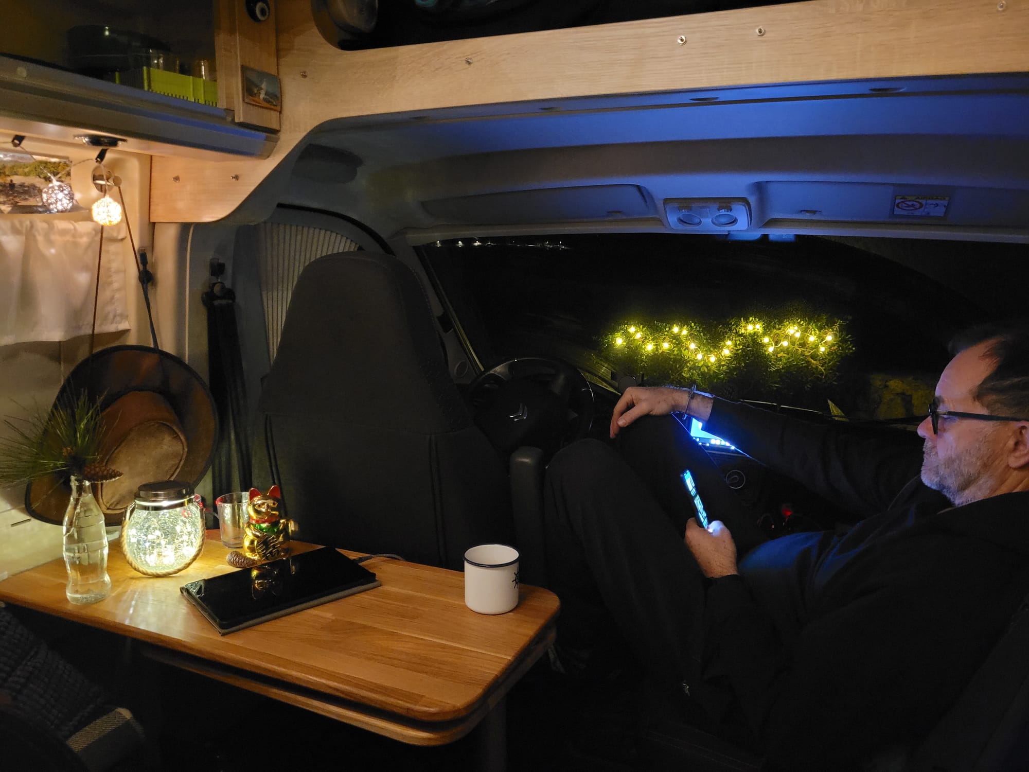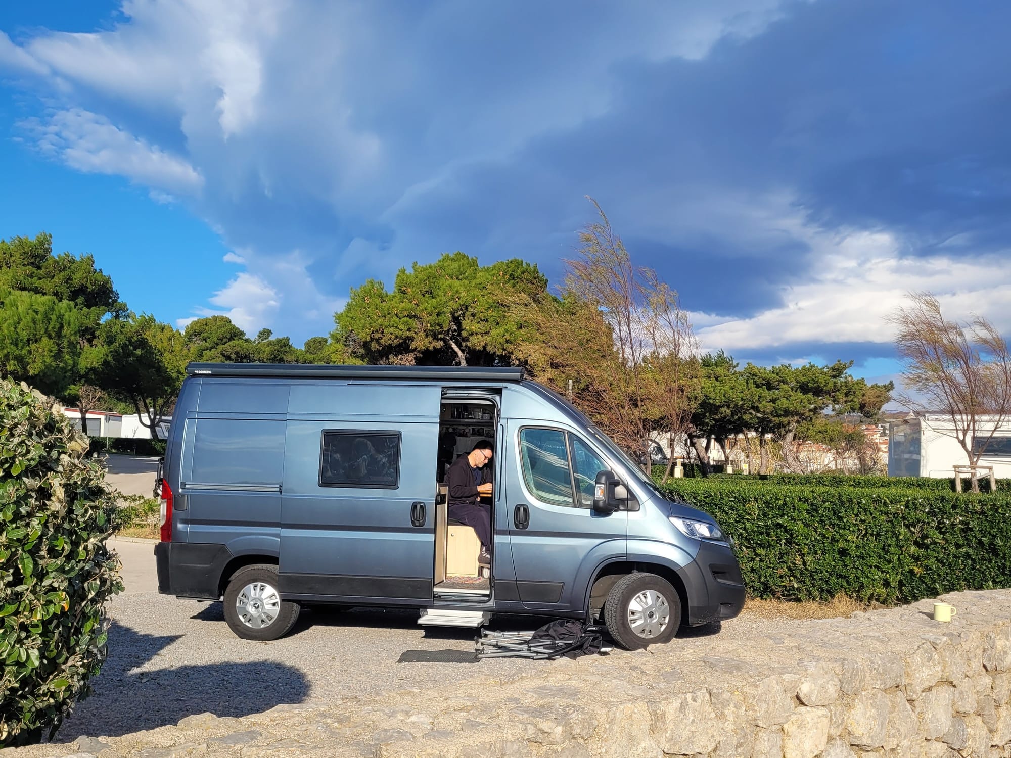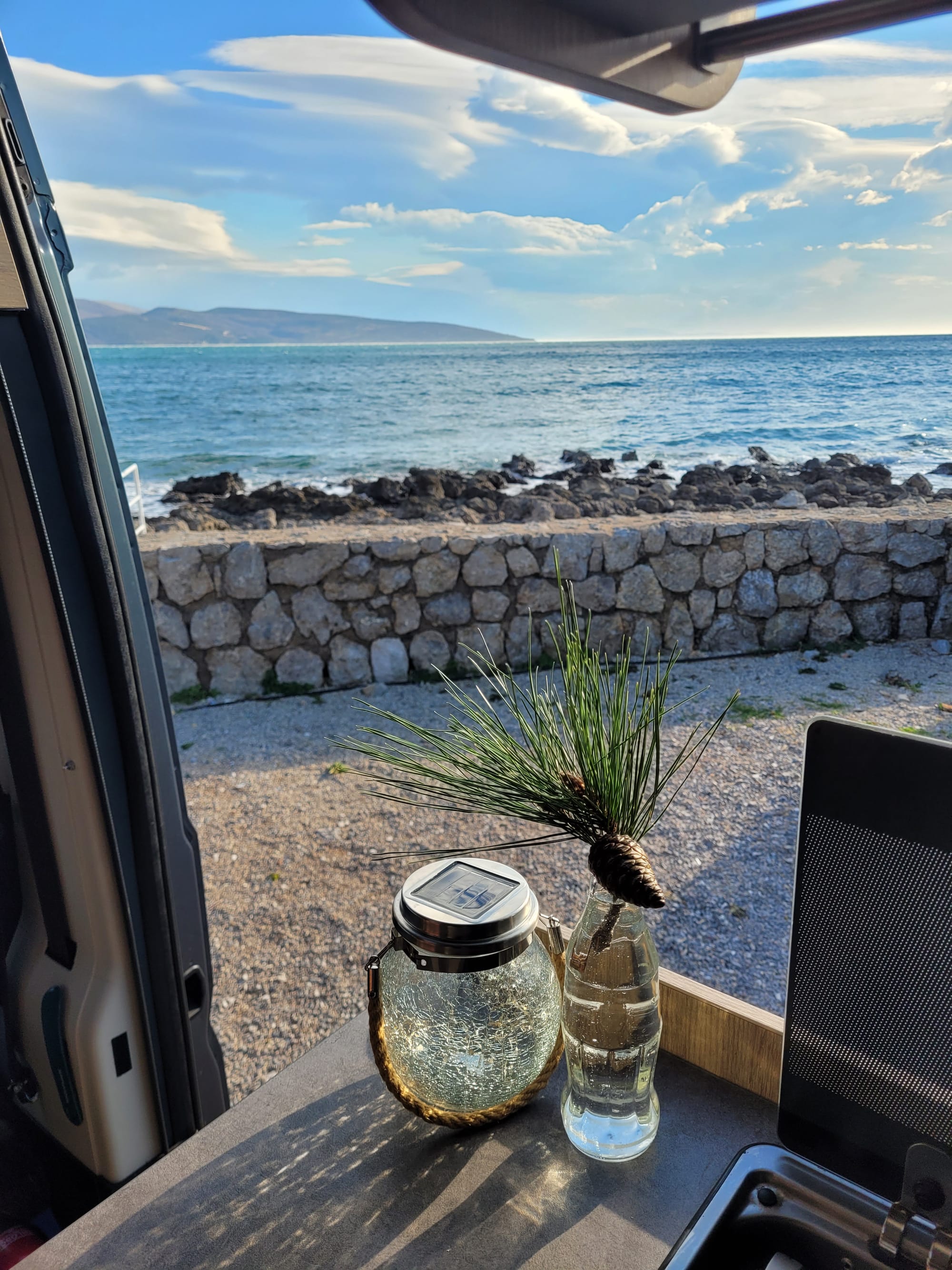 Trotz Wind scheint die Sonne so warm, dass wir die Schiebetür beim Luigi offen lassen.