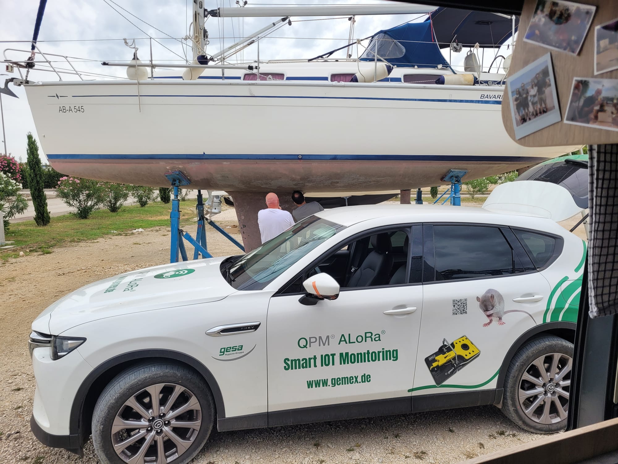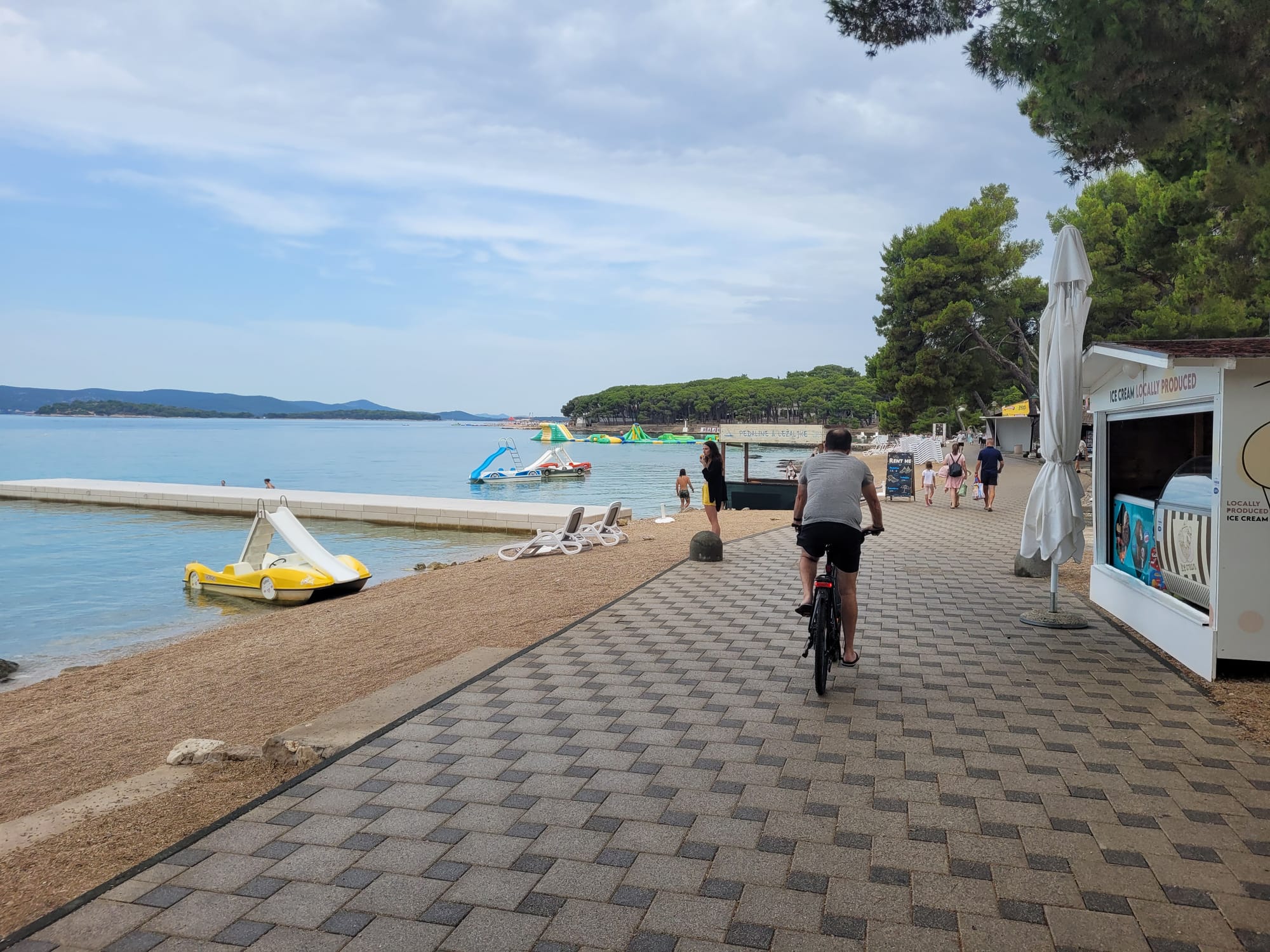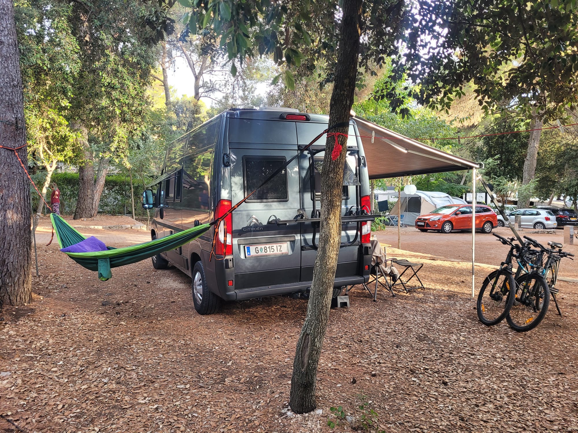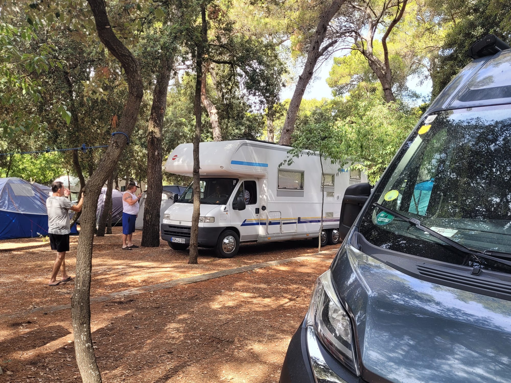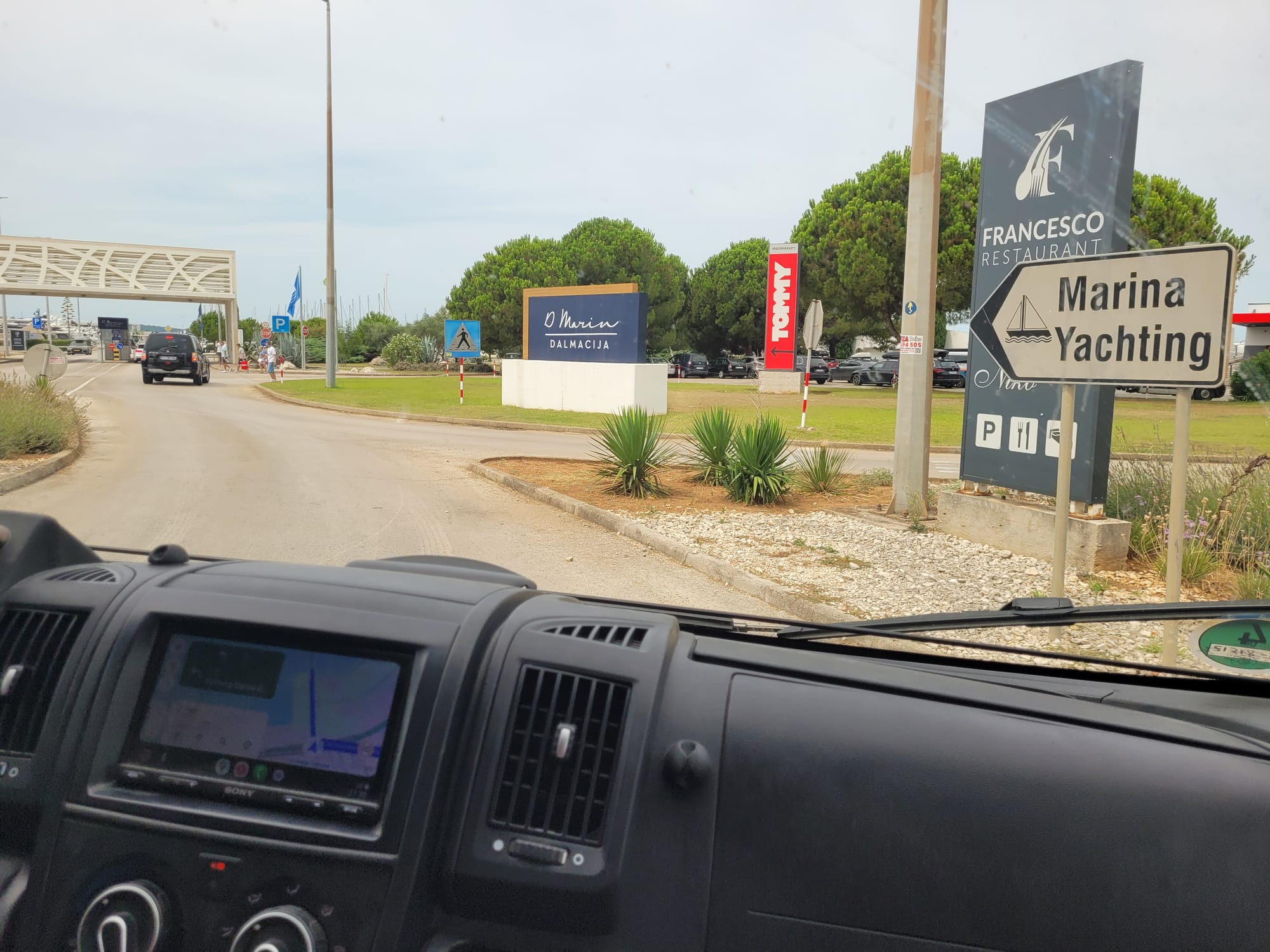 Nach dem Frühstück wollen wir wieder nach Sukošan - unsere Nachbarn sind ganz verwundert, dass wir dauernd unterwegs sind. Zuvor muss aber noch der Vordermann aus dem Stellplatz herausgelotst werden.