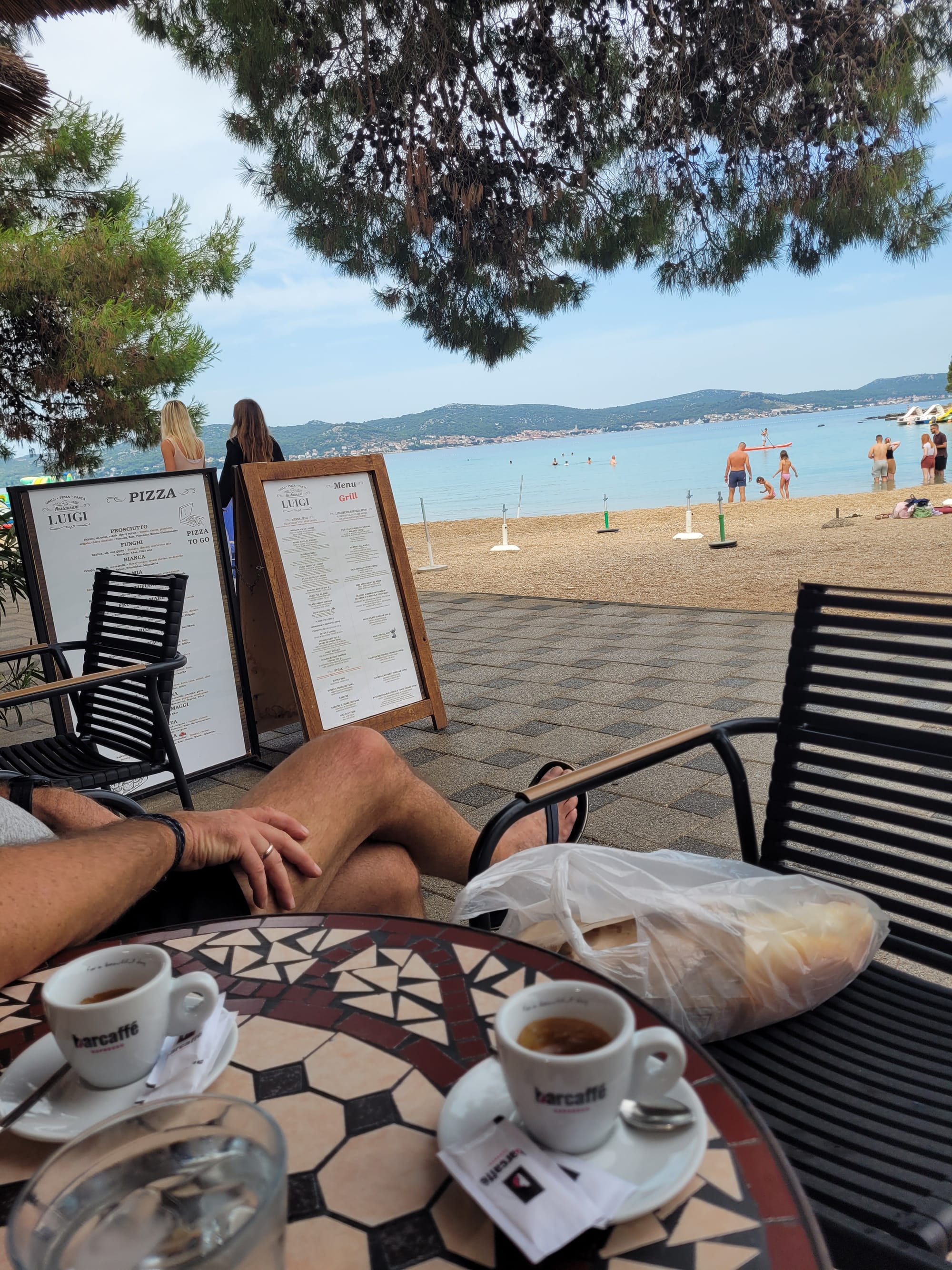 ...und setzen uns zu einem Espresso auch noch kurz in Luigis Café am Strand.