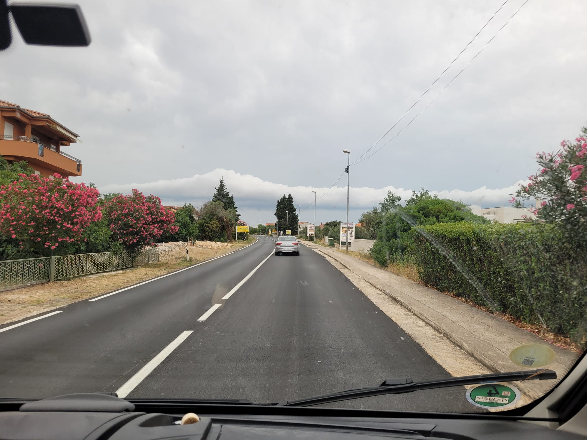 Wir wollen uns morgen nochmal treffen, jetzt geht's aber zurück nach Biograd, denn jetzt ist bald einmal Regen angesagt. Auf der Rückreise sehen wir die Wolkenwalze.