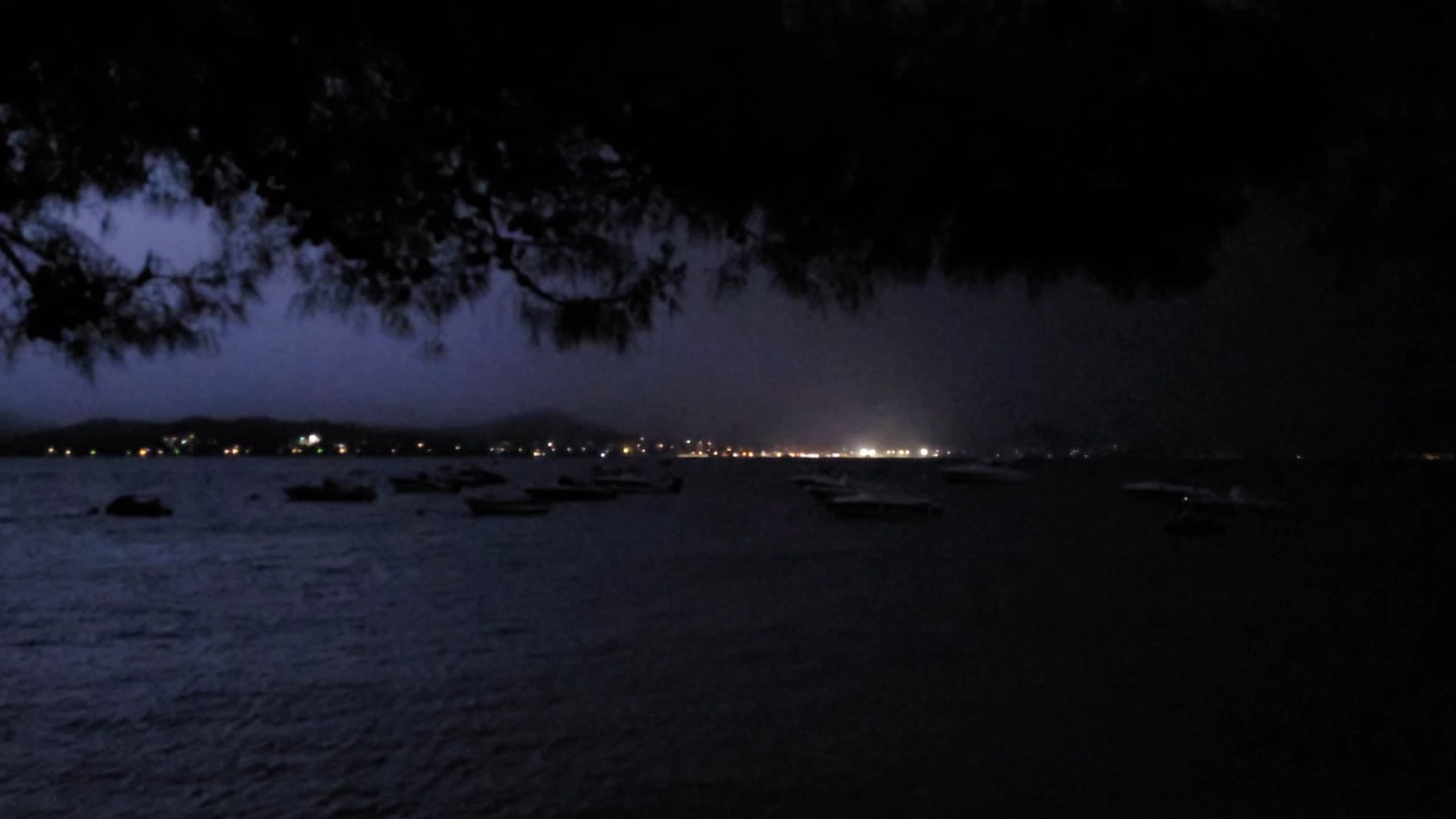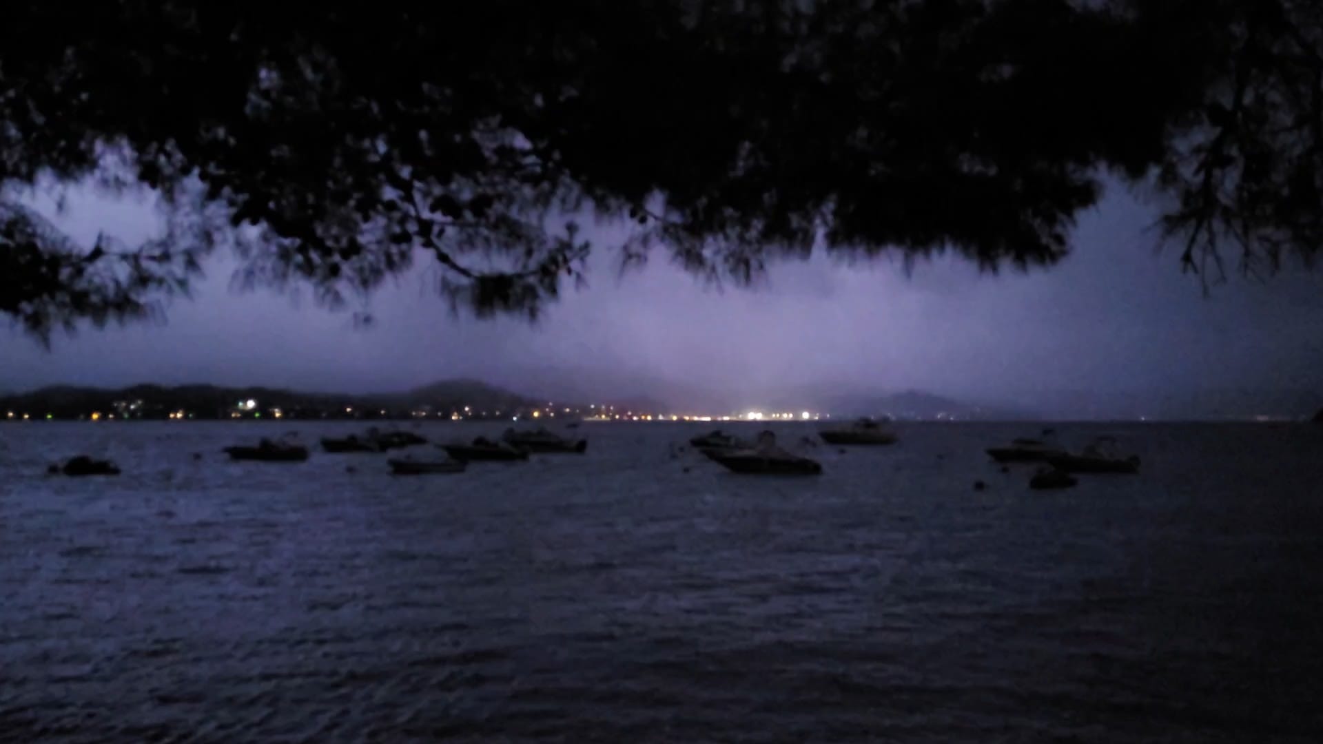 Und dann plötzlich rauscht es laut, ich glaube zuerst, dass jetzt der Wind vor dem Gewitter kommt. Aber es ist ein Squall der vom Meer zum Campingplatz rast. Zeltplanen und Beleuchtungen fliegen herum, alle rennen zu ihren Stellplätzen zurück, einige kreischen. Ich komme mir vor wie in einem Katastrophenfilm.