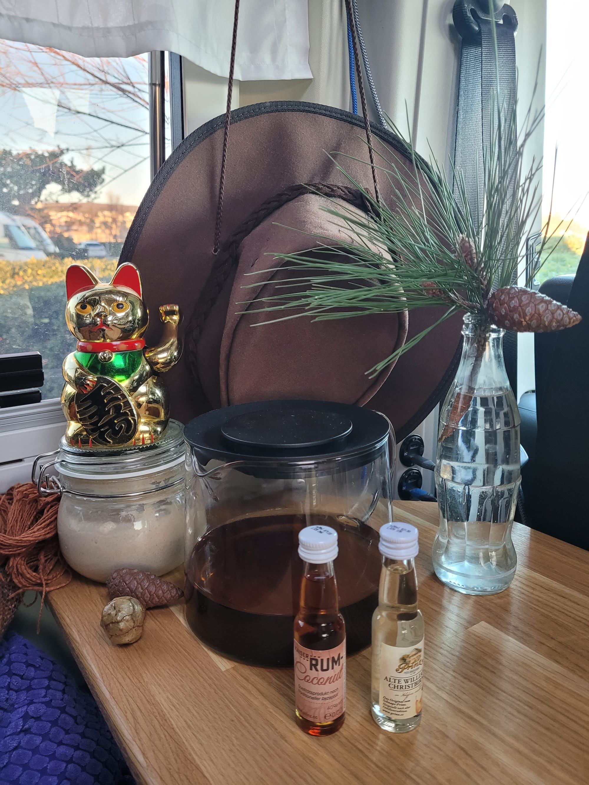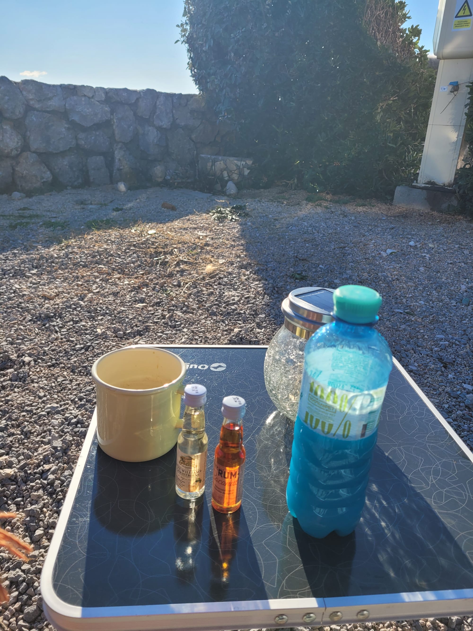 Zwischendurch ist es böig aber es war noch nie so warm in den letzten Tagen. Wir machen es uns draußen gemütlich.