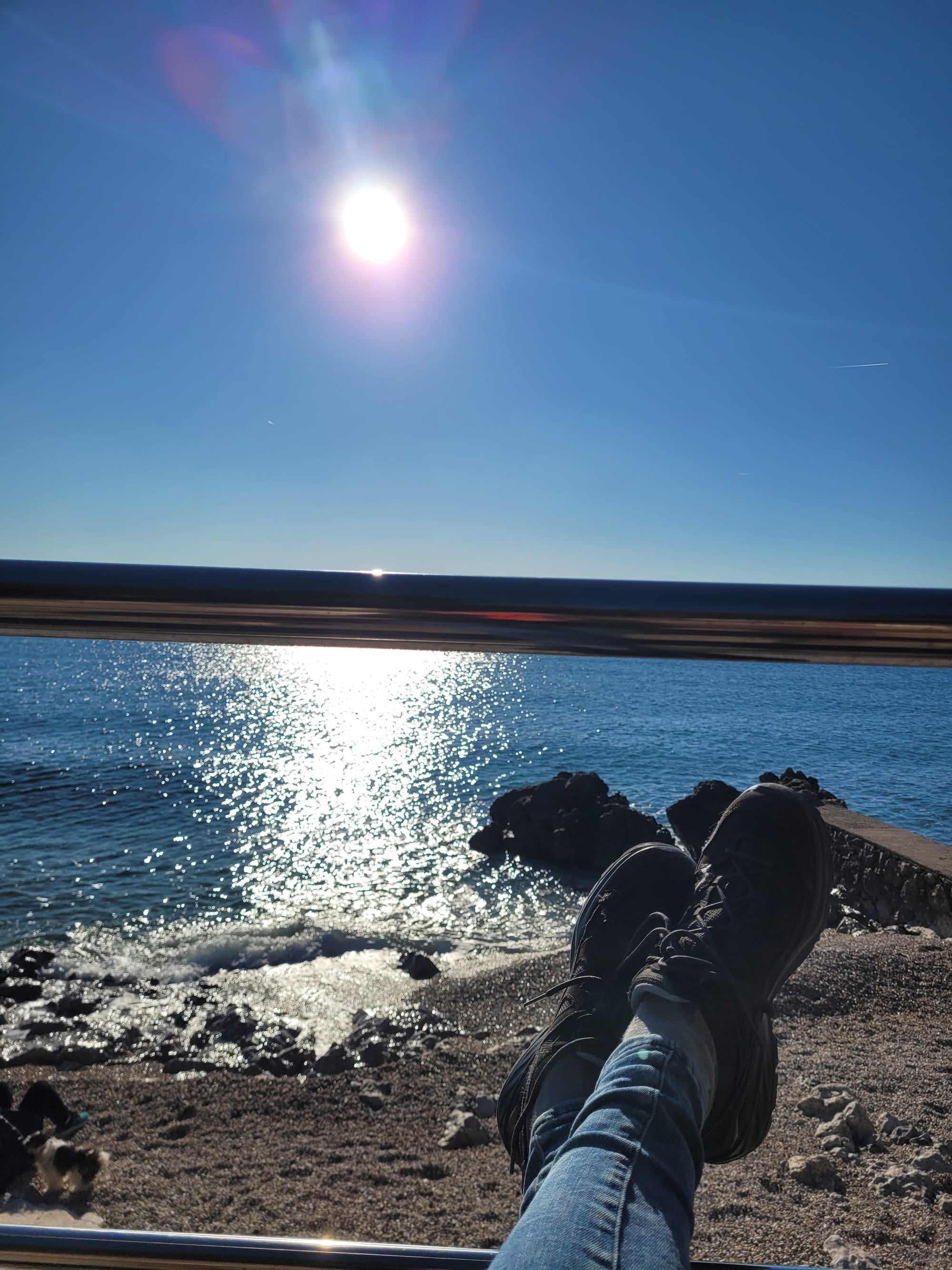 Der Wind hat total nachgelassen und die Sonne wärmt uns.