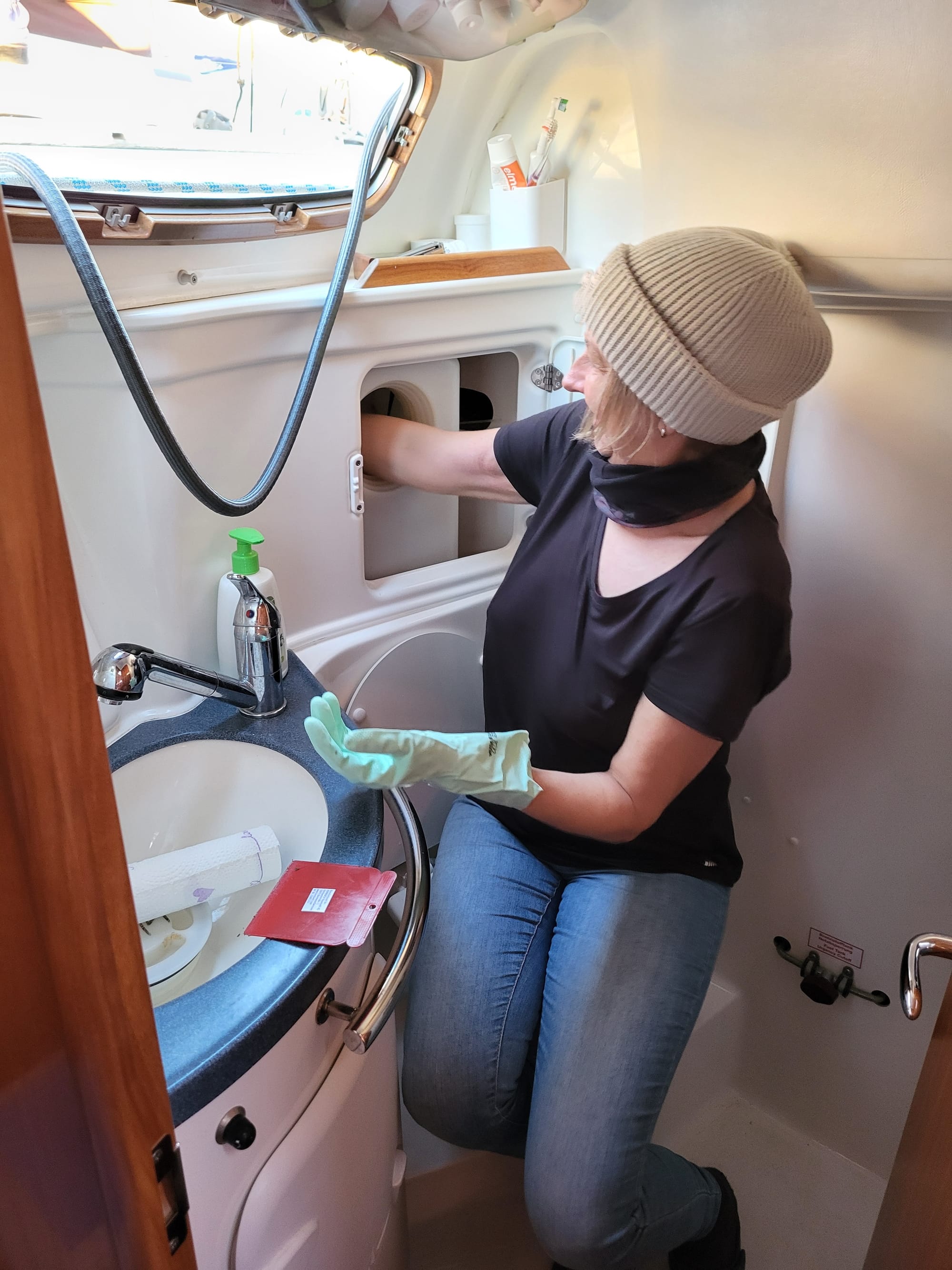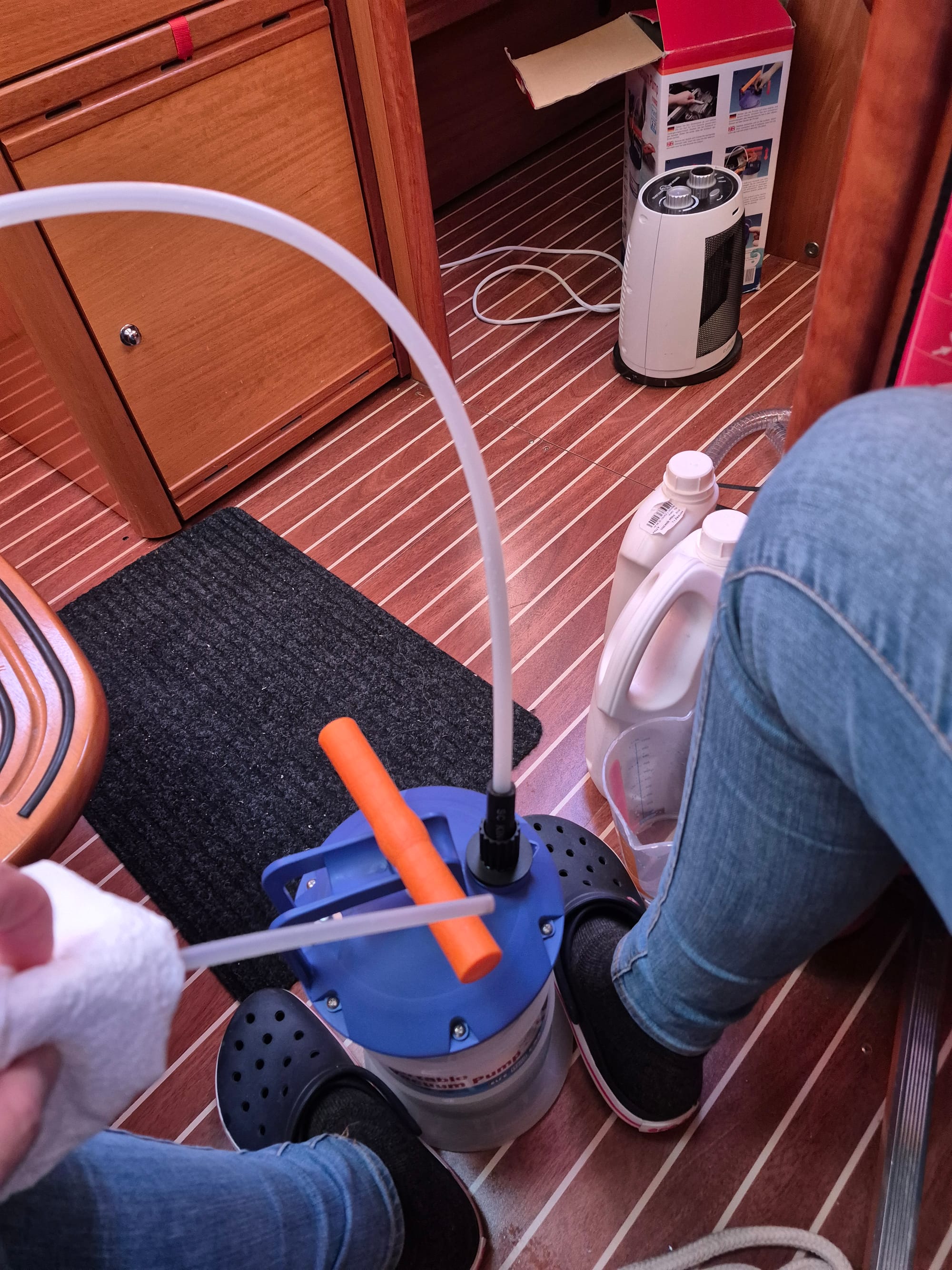 Weiter geht die Arbeit unter Deck, mit pumpen...