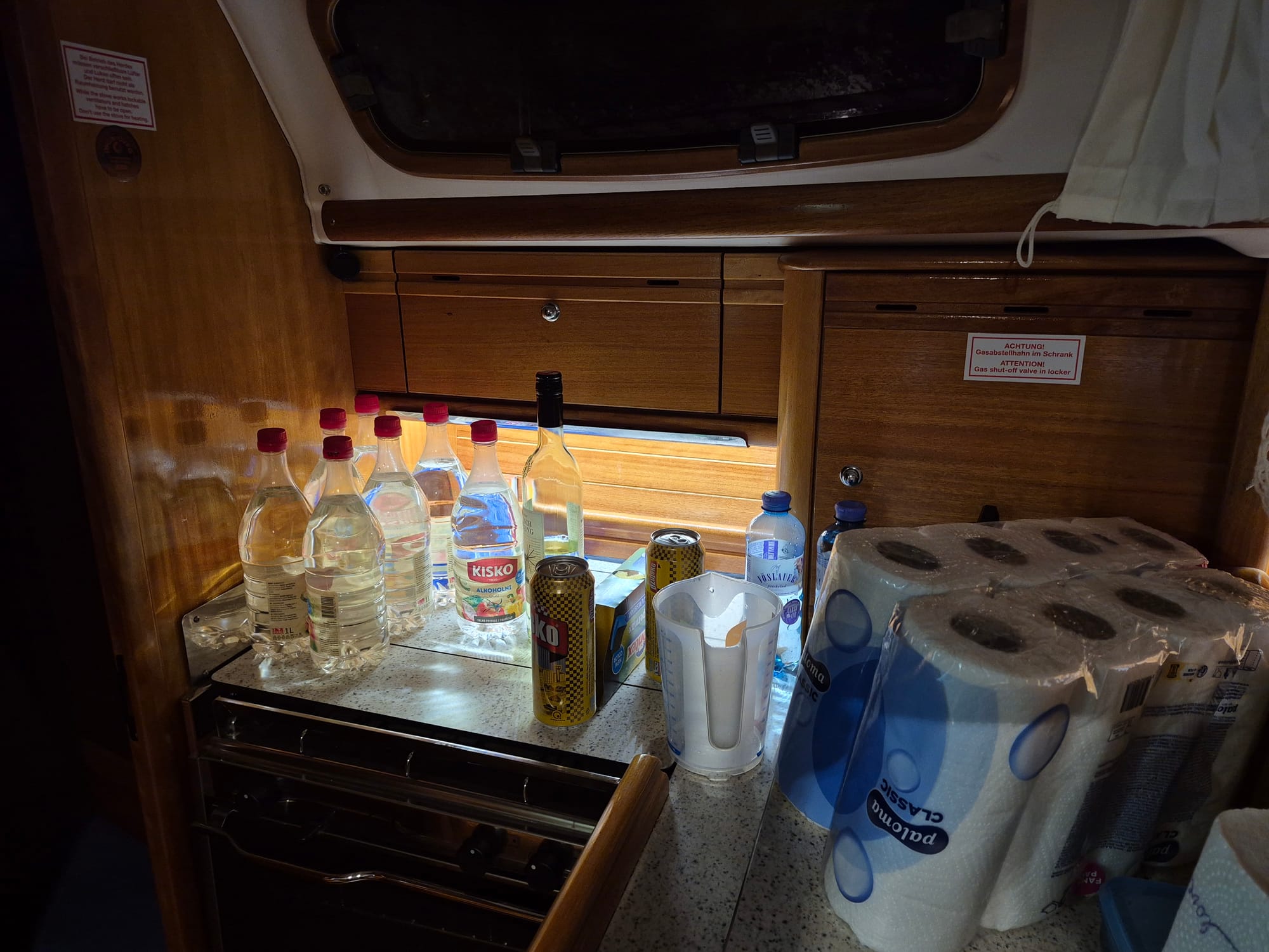 Als erstes wird das Seewasserkühlsystem des Motors gespült und Frostschutz eingefüllt. Dazu wird meine Assistenz draußen benötigt...