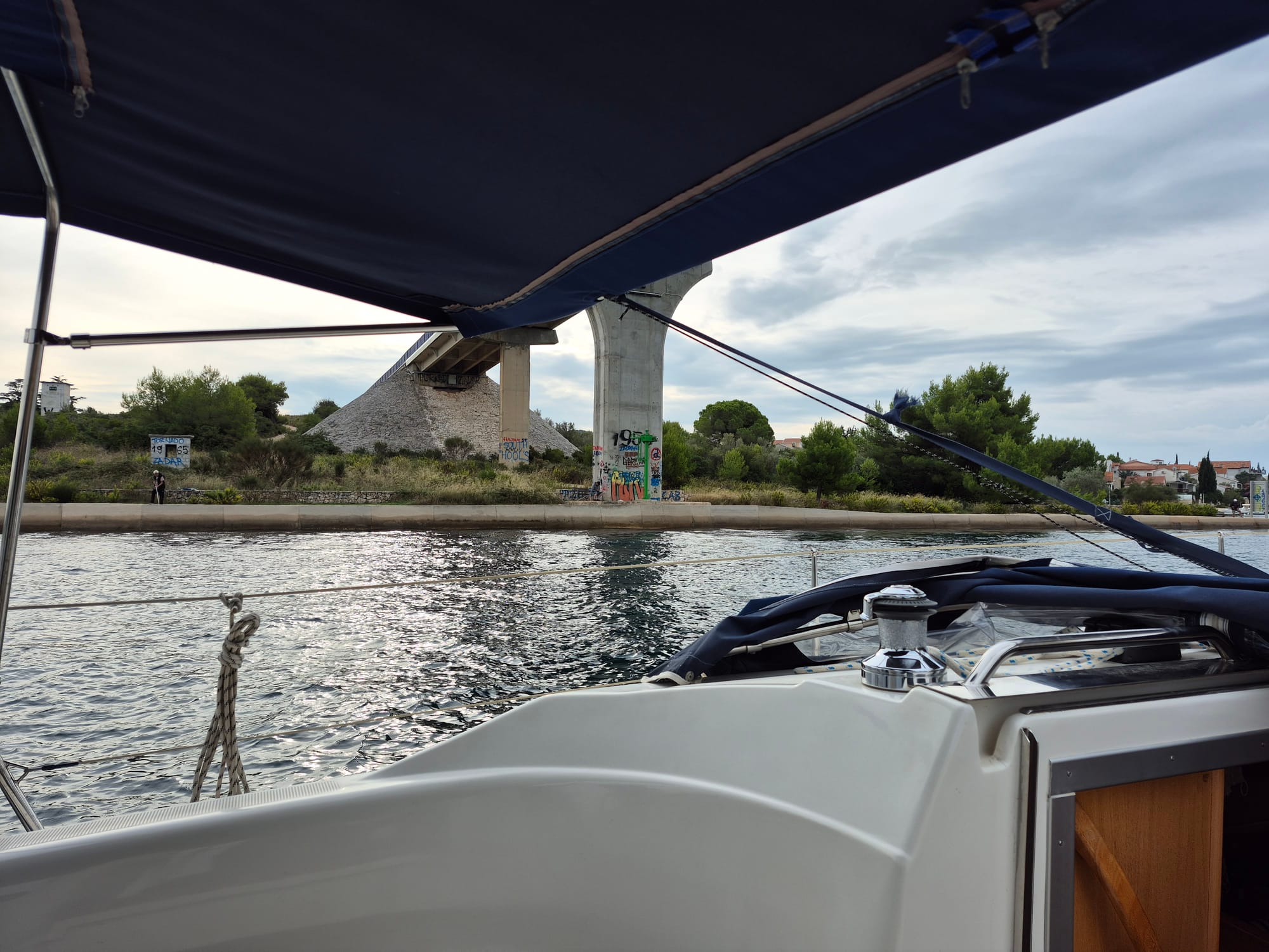 Unser heutiges Ziel ist Kaprije. Der Weg führt uns wieder unter der Brücke Ždrelac durch...
