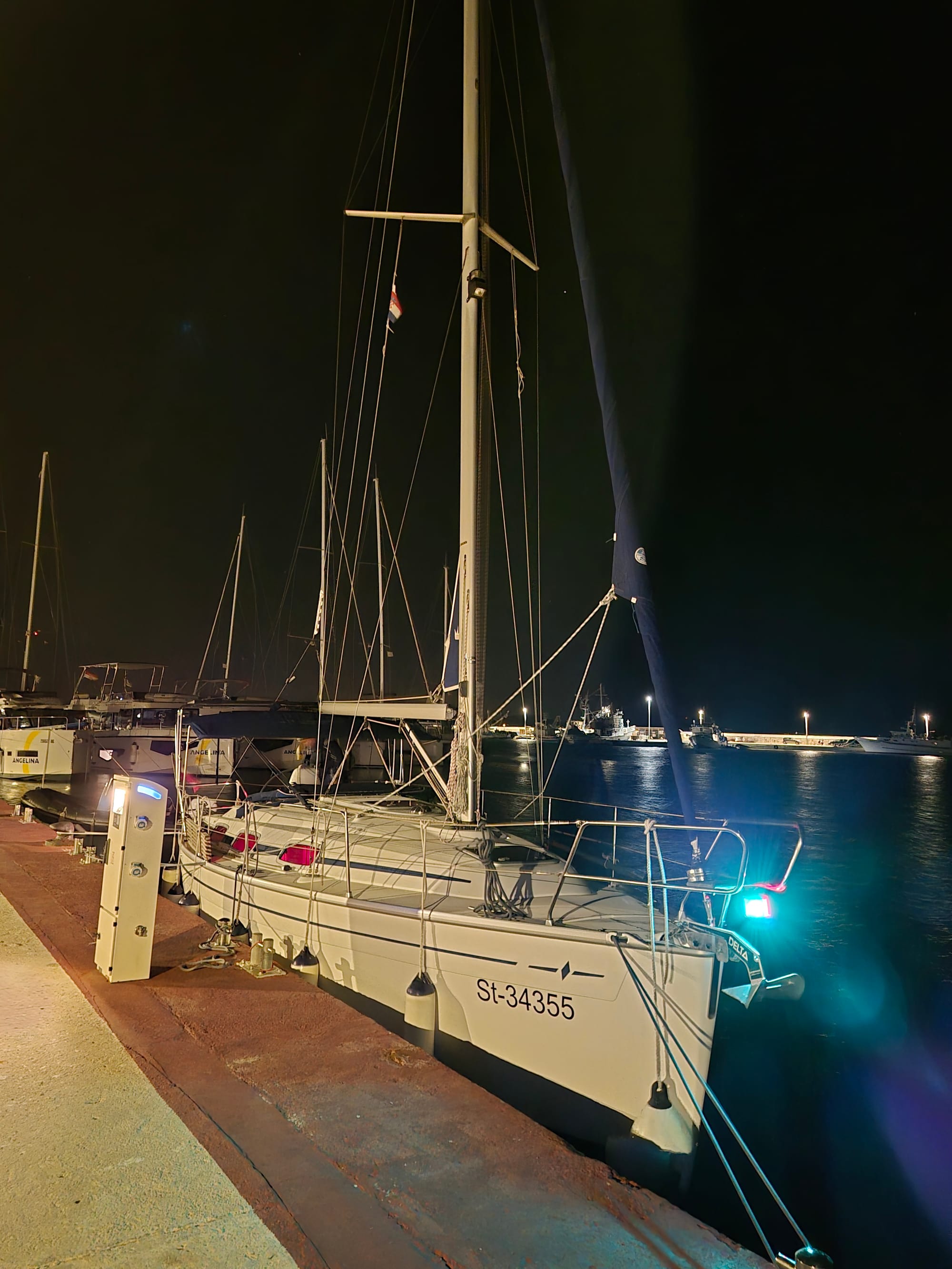 Als wir dann aber in der Marinaeinfaht sind kommt uns ein Marinero mit Schlauchboot entgegen. Wir bekommen einen Platz zugewiesen und liegen um 21:15 endlich an der Mole.