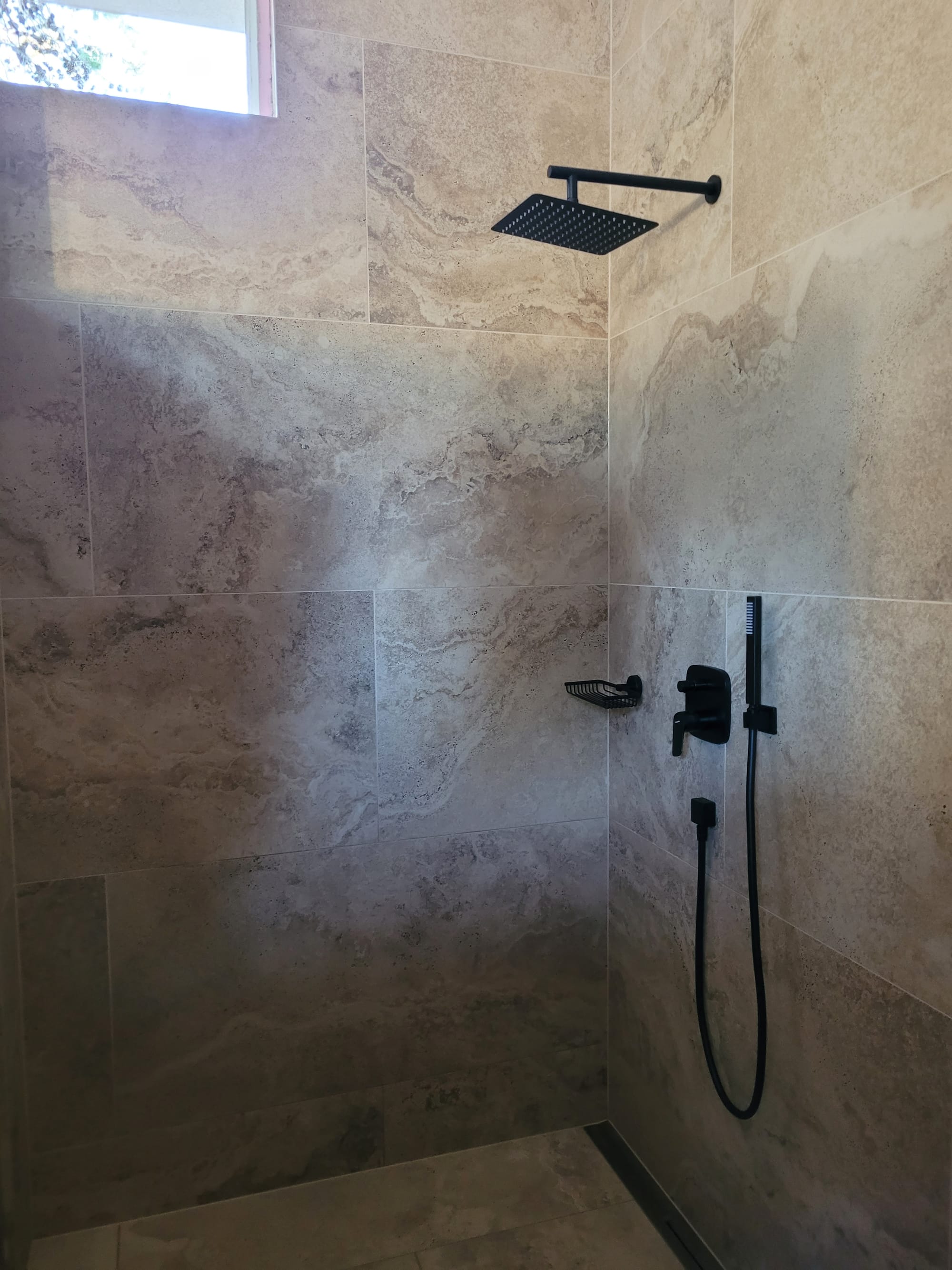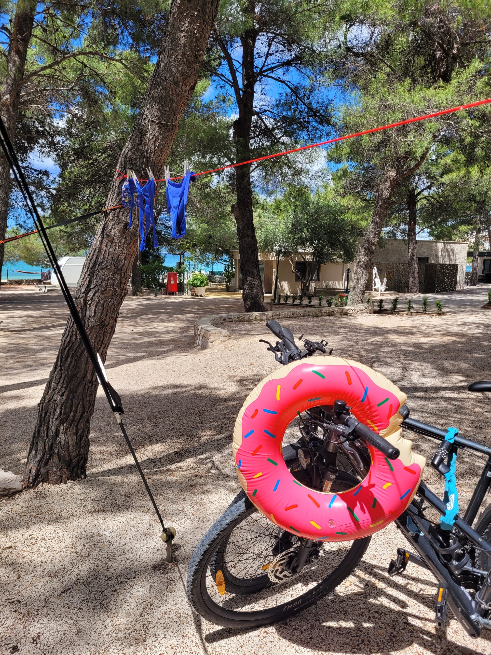 ...teste ich die Süßwasser Dusche. Durch den Umbau des Campingplatzes ist auch die Sanitäranlage ganz neu gestaltet. Das ist uns eigentlich nicht wichtig - aber wenn es schon mal da ist, ist es schon cool.
