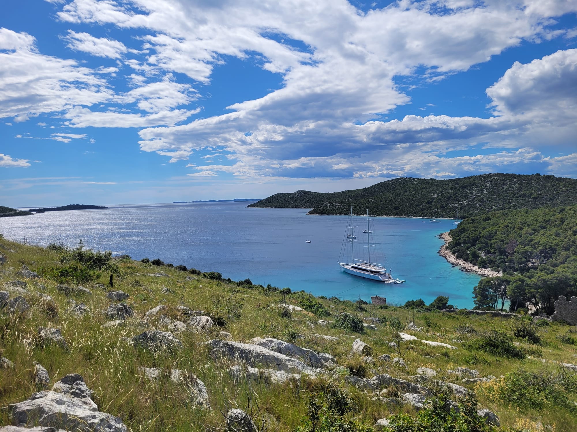 Von oben haben wir einen wunderschönen Blick in beide Buchten.