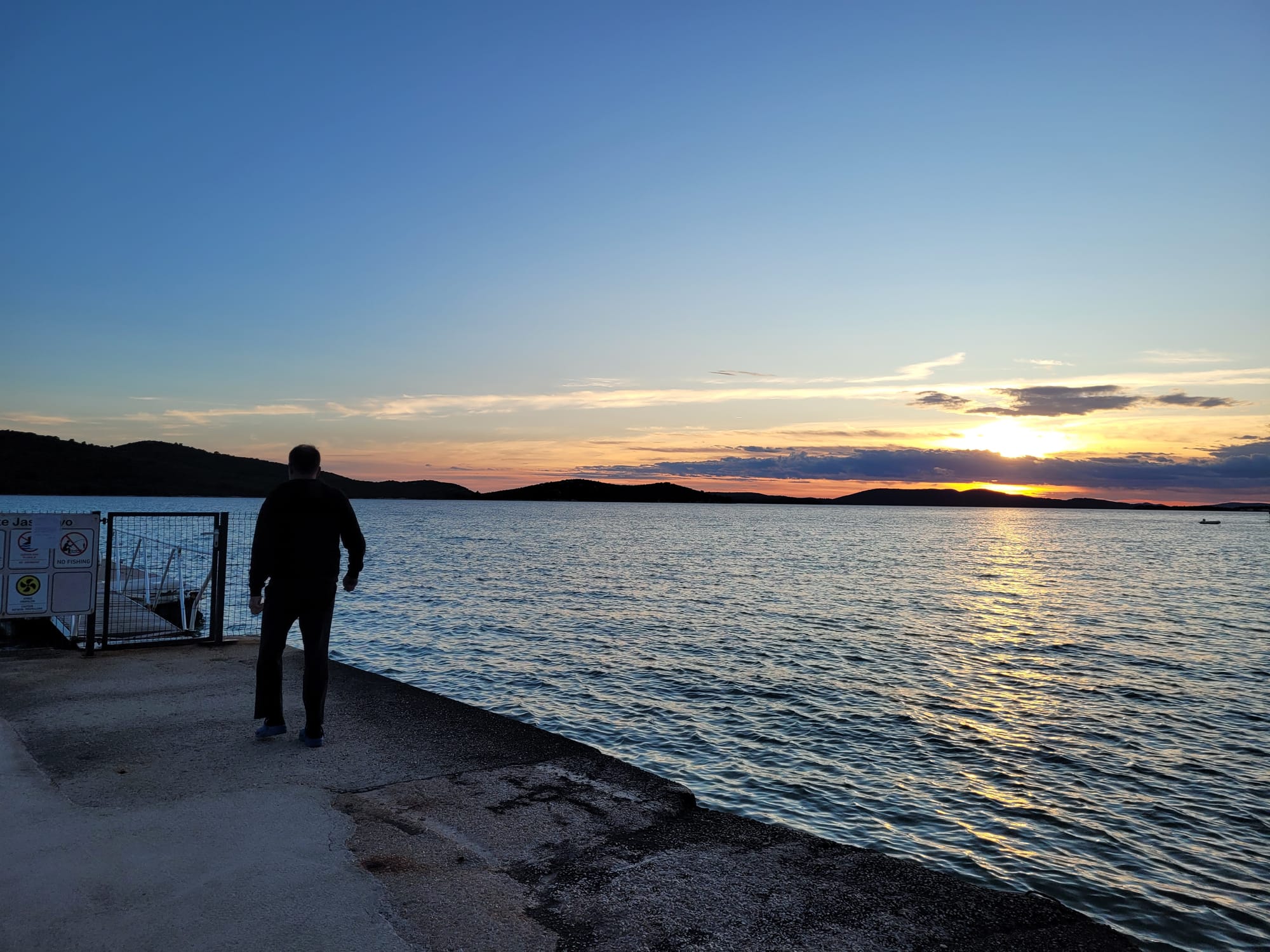 Zum Sonnenuntergang machen wir noch einen kleinen Spaziergang am Strand.