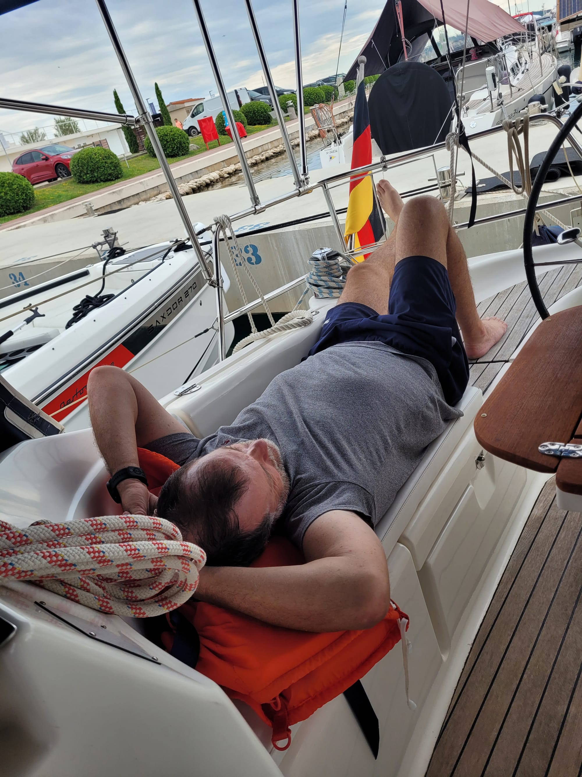 Leider vergisst er, und auch wir denken nicht daran, seine Deutschland Fahne, die muss er sich später wieder holen. Er hat ja nicht weit zur Marina.
