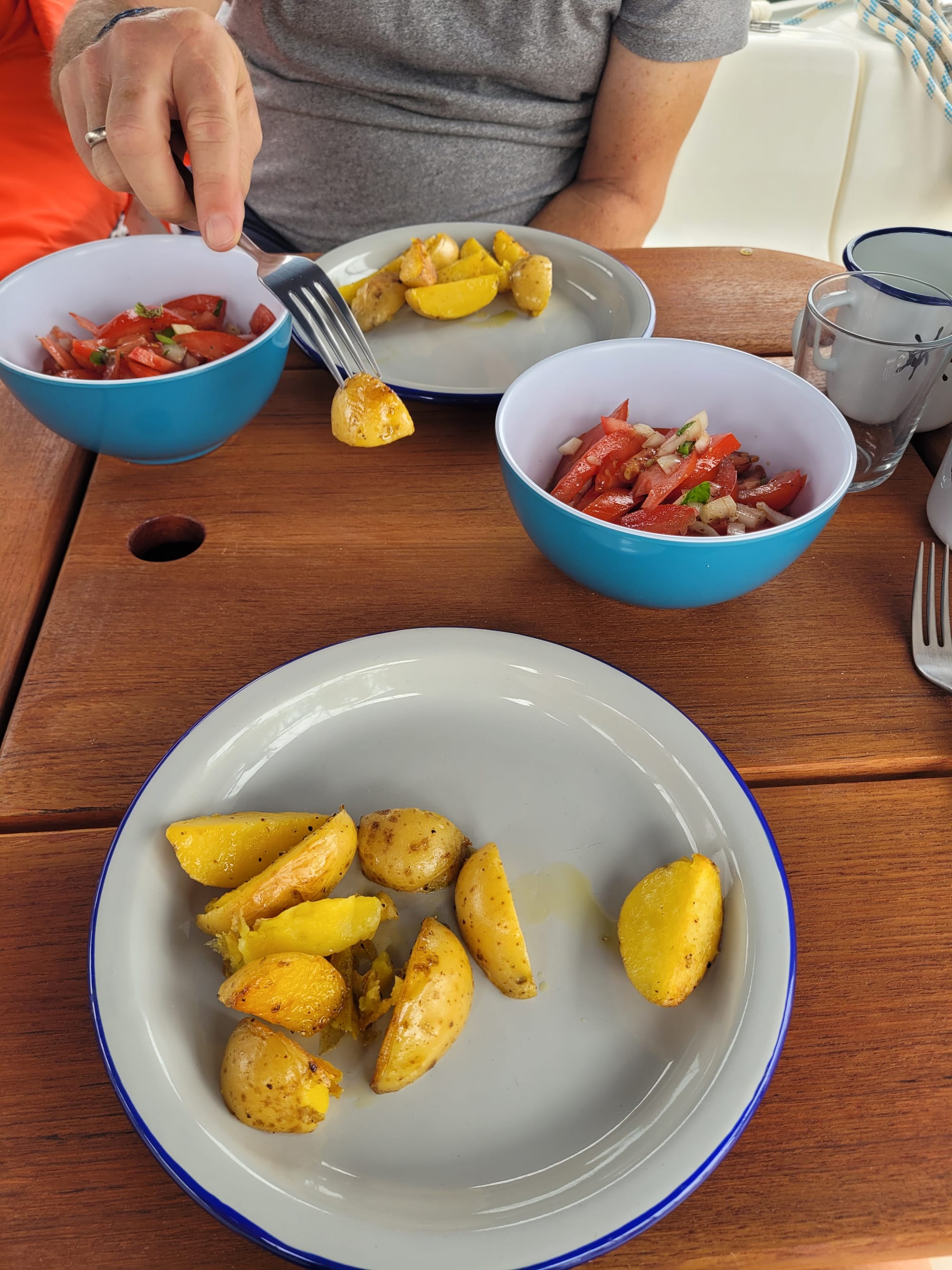 Zwischendurch gibt's Kartoffeln aus dem Omnia als Jause...