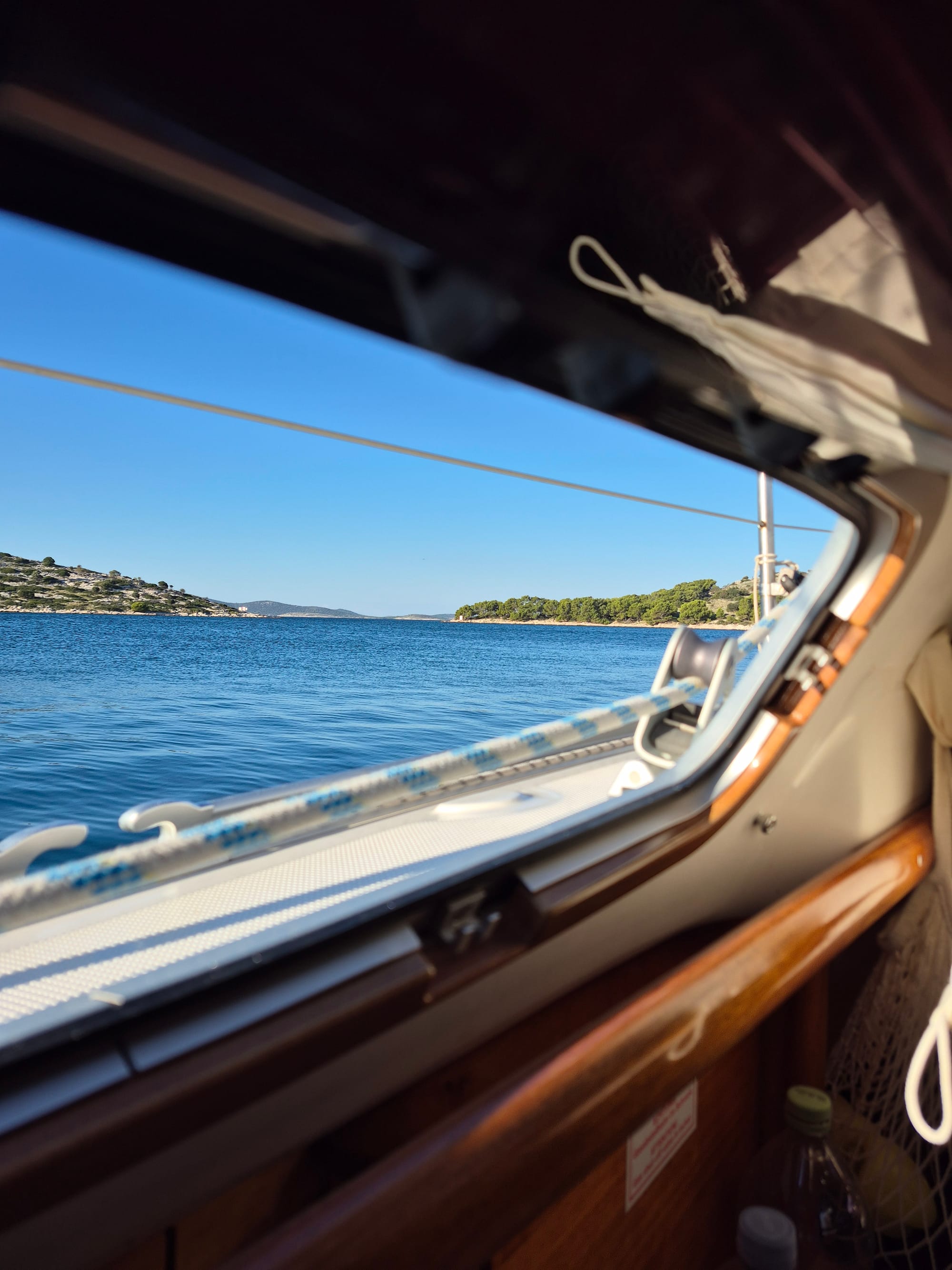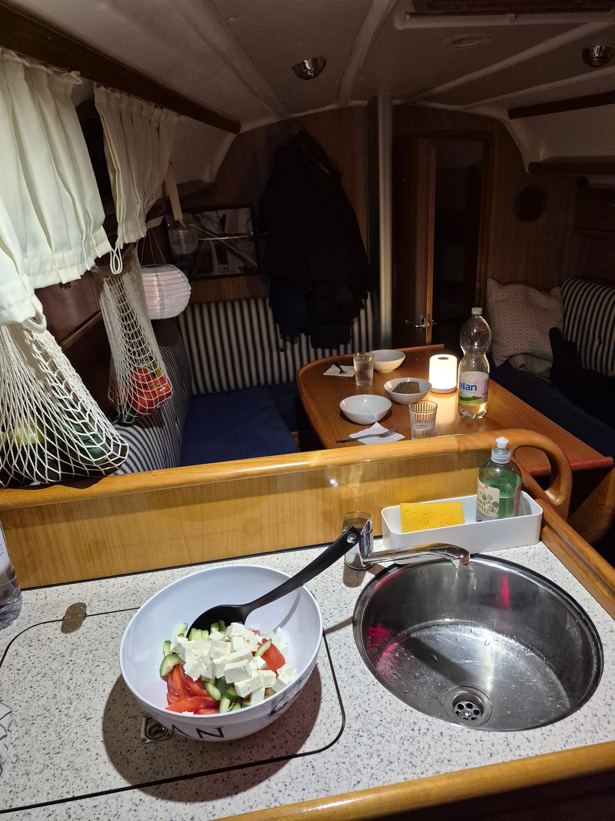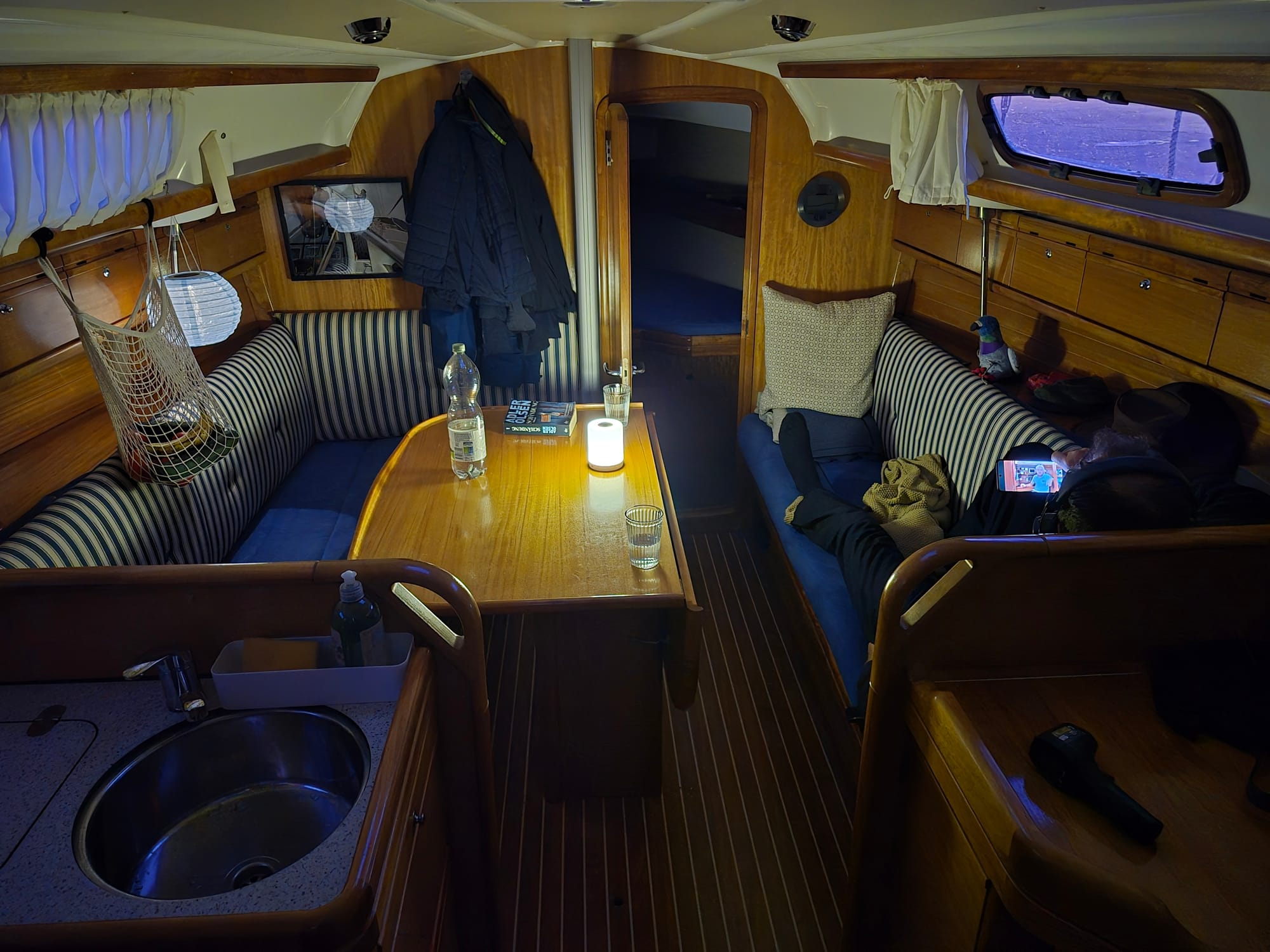 Wenn die Sonne weg ist wird es jetzt kühler, deshalb verziehen wir uns unter Deck.